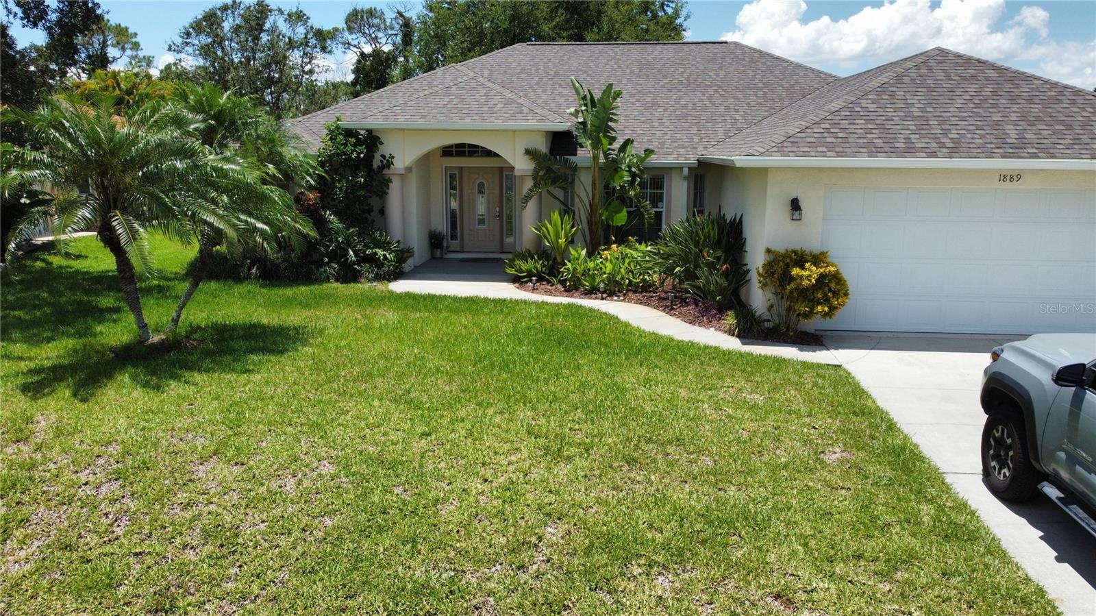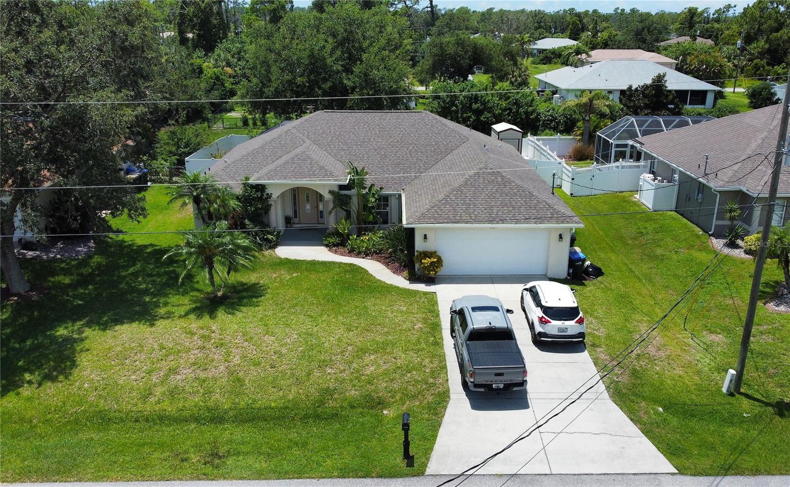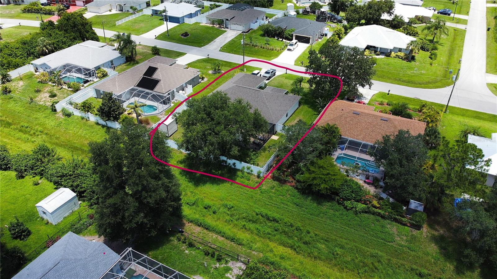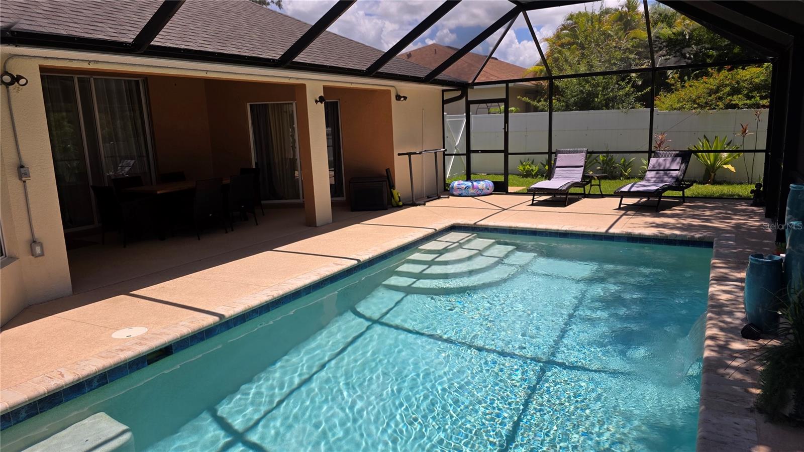 NEW PRICE TO SELL! Upon entry you will notice the spacious great room, formal dining and cathedral ceilings. The kitchen boasts premium appliances, tons of cabinet space, closet pantry and a large breakfast nook. Master bathroom has walk in shower, large soaking bathtub and dual sinks!! Family/guests will enjoy privacy in this split floor plan, 2 OVERSIZED guest bedrooms features EXTRA LARGE CLOSET SPACE!! Dual sliding glass doors lead you out to the large screen enclosed lanai with large SALTWATER HEATED POOL (new in 2021) . Roof shingle replaced in 2022. The expansive yard features PRIVACY FENCE, TREES, STORAGE SHED and plenty of room for a POOL. Lets not forget the magnificent Oak Tree!! FULL ASKING PRICE INCLUDE ALL FURNITURE AND ACCESSORIES AS SEEN ON LISTING PICTURES. HOUSE READY FOR MOVE IN.