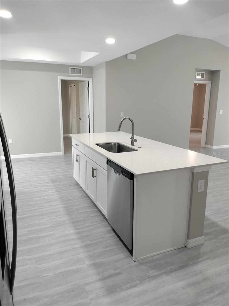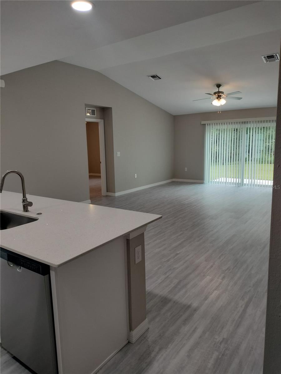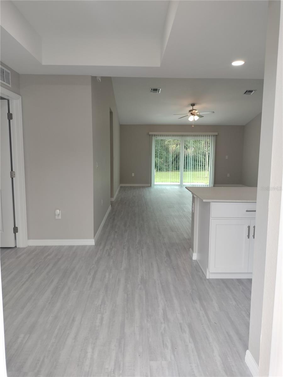 Reduced Price!!! If it's peace and quiet you are seeking, then look no further! This perfectly placed home has everything that you have wanted in your next home! No front neighbors and no neighbors on either side. This four bedroom and two bathroom home is surrounded by beautiful wooded areas, but still close enough to your everyday conveniences. Double Front Doors open up to the well appointed and dramatically open great room and kitchen. Solid surface counters accented with modern Stainless Steel Appliances and Extra Large Island allows for dinner prep while the littles do their homework. Three way split on the bedrooms which gives everyone their own individual areas. The front room is the perfect size for an office or playroom and Bedrooms 2 & 3 flank the second bathroom on the opposite side. The Primary Bedroom has ample space for a King Sized bedroom set. There is a walk in closet and a en suite bathroom with a large stall shower and double vanity that rounds out this space nicely. The double car garage opens up to the inside laundry room that has enough room for additional storage for those that like to buy in bulk. Freshly painted, luxury Vinyl Plank, Whole house water softener and a great view from the patio all ensure that this home definitely has everything you want. Come take a look for yourself. You will not be disappointed!
