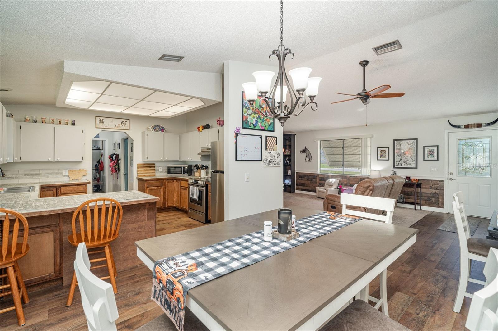 4% Assumable Mortgage Available! Move-in ready and beautifully updated! This charming 3-bedroom, 2-bathroom single-family home in North Port offers the perfect blend of comfort, style, and location. Step inside to a bright open-concept floor plan with cathedral ceilings, new hardwood flooring, and fresh carpet throughout. The updated kitchen features custom tile counters, plenty of cabinet space, and an easy flow into the dining and living areas—ideal for entertaining or everyday living. The split-bedroom layout provides privacy for the spacious primary suite, complete with ample closet space and a private en-suite bathroom. Enjoy the Florida lifestyle on your screened lanai overlooking a peaceful backyard, perfect for morning coffee or evening relaxation. Recent upgrades include a new AC (2022) and water heater (2020), offering peace of mind for years to come. Situated in a quiet, non-HOA neighborhood, you’ll love the freedom of no deed restrictions and low-maintenance living. Conveniently located near Warm Mineral Springs, the North Port Aquatic Center, Blue Ridge Park, shopping, dining, and top-rated schools, this home delivers unbeatable value and everyday convenience. Don’t miss your opportunity to own a beautifully maintained, move-in ready home in one of Southwest Florida’s fastest-growing communities!