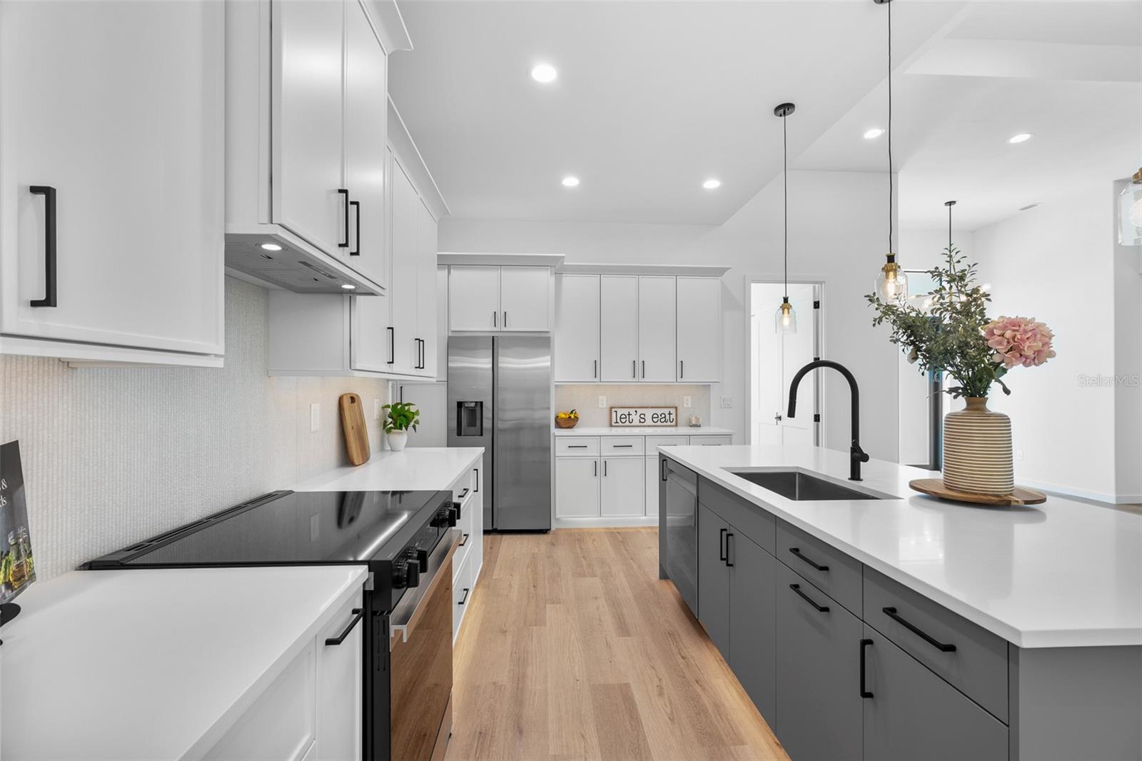 One or more photo(s) has been virtually staged. Welcome to your new home, a stunning 4-bedroom, 2-bathroom haven in North Port with an option to purchase the lot next door, one of the fastest-growing cities in the nation! Boasting an open floor plan and meticulous attention to detail, this residence is move-in ready and radiates pride of ownership inside and out. Nestled in a prime location with no HOA fees and no flood insurance required, this home offers peace of mind and convenience. Step inside to discover the grandeur of the enormous living room, adorned with 12ft high ceilings and expansive windows that flood the space with natural light. The adjacent kitchen is a chef's dream, featuring Quartz countertops, stainless steel appliances, and ample storage space. The spacious master bedroom offers 10ft tall ceilings, a large walk-in closet, and a luxurious en-suite bathroom with his and hers sinks. From luxury vinyl floors to an oversized driveway, this home is packed with features both inside and out. Rest assured knowing this home is hurricane-ready with impact windows and doors. Savor your evenings outdoors on the large covered lanai, perfect for relaxation or entertaining guests. Located in the highly rated Sarasota County school district and close to I-75, shopping, dining, and Gulf beaches, this home offers the perfect blend of convenience and luxury. Don't miss out on the opportunity to make this piece of paradise yours, call today and take the first step towards owning your dream home!