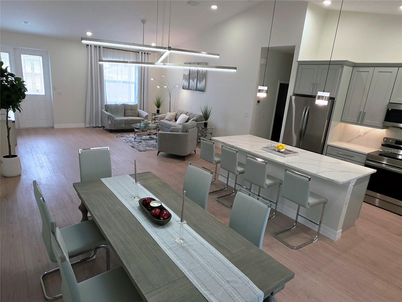 2026 NEW HOUSE. Extended garage 20.5ft long . NO HOA's, NO CDD's fees! This beautiful home includes many premium features: -WHOLE HOUSE REVERSE OSMOSIS WELL WATER FILTRATION SYSTEM. -HURRICANE IMPACT LoE WINDOWS and doors. -Fiberglass entry door. -LUXURY VINYL flooring throughout. -Premium grade stainless steel appliances and laundry washer & Dryer. -GUTTERS ALL OVER THE ROOF. -Utility sink in laundry room. -Extra attic storage space. -Quartz kitchen countertops. **A lot of space for the pool** -Plumbing and electric outlets + exhaust for future summer kitchen. -Power outlets for smart toilet available - -A short 1 minute drive to the Famous Warm Mineral Spring Park which provides visitors with a number of therapeutic and passive recreation options.