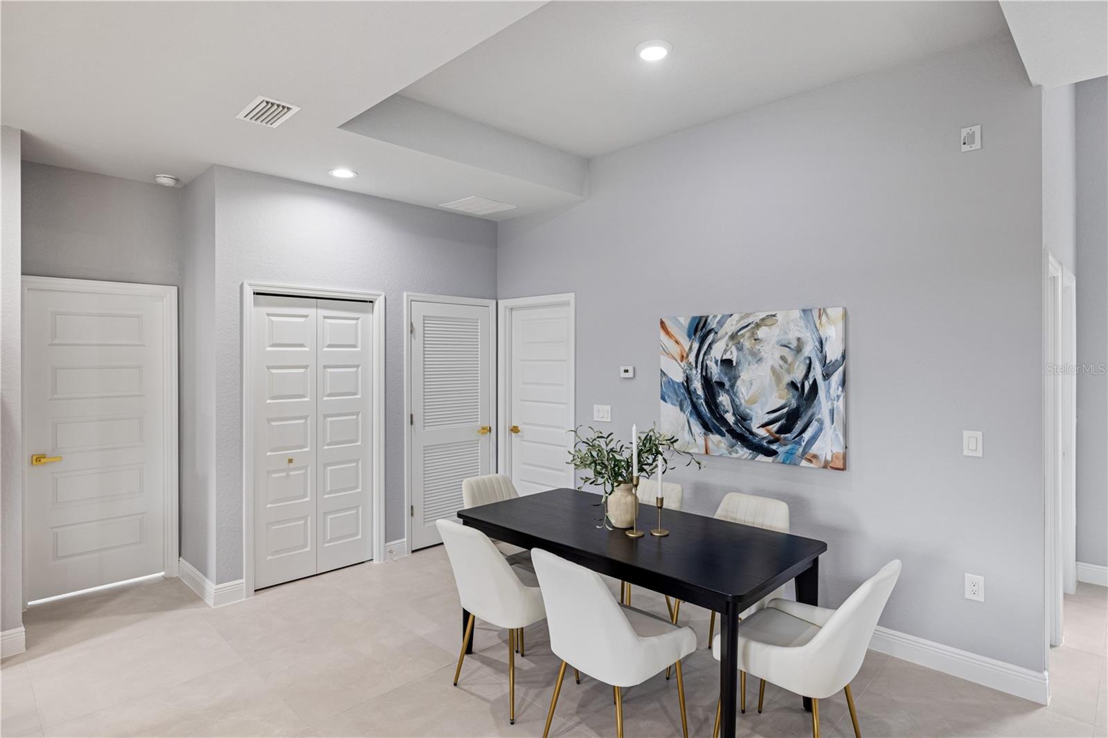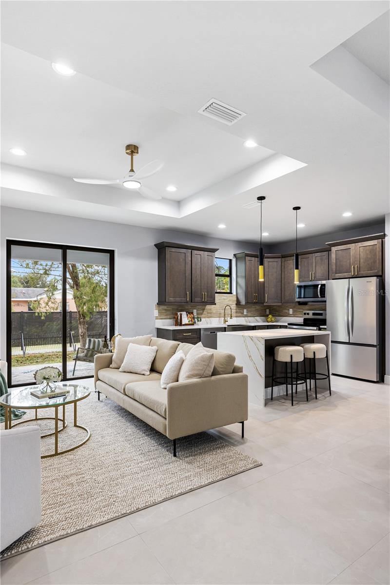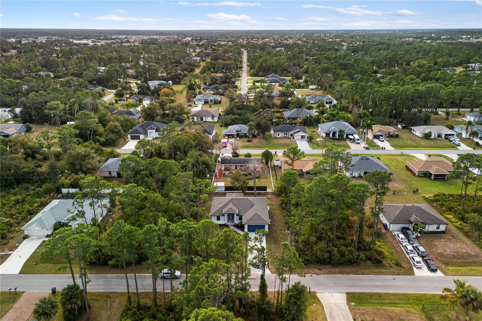 This beautifully designed 2026 built home offers a perfect balance of modern elegance, quality construction, and functional living. Featuring 1,650 square feet under air, the open floor plan is enhanced by soaring VERY HIGH 10-4” CEILINGS, tray ceilings, and oversized DOUBLE GLASS DOOR that fill the home with natural light. Tile flooring runs throughout the entire home, including a stunning LARGE 32x32 TILE that complements the clean, contemporary aesthetic. The kitchen is a true showpiece with LEVEL 4 QUARTZ COUNTERTOP WITH WATERFALL EDGES , a unique backsplash, FULL WOOD soft close cabinetry, elegant pendant lighting, stainless steel appliances, a FARMHOUSE sink, and upgraded decorative hardware with refined gold trim accents. The spacious primary suite offers a spa like retreat with floor to ceiling tiled shower featuring modern 64x12 tile, dual sink vanity, decorative mirrors and fixtures, and his and hers walk in closets. Bedrooms are equipped with ceiling fans, as well as the great room, providing comfort year round. The fourth bedroom is generously sized and ideal as a home office, flex room, or creative workspace. Additional upgrades include IMPACT DOOR AND BRONZE IMPACT WINDOWS, sliding doors that coordinate seamlessly with the fascia and gutters, ELECTRIC FIREPLACE, WATER SOFTENER, IRRIGATION system, front gutters, and a professionally installed LANDSCAPE PACKAGE. Enjoy Florida living on the spacious lanai under trusses, perfect for entertaining or relaxing outdoors. This home also includes a FREE 10 year home warranty, offering added peace of mind. Conveniently located in North Port with easy access to I75 AND shopping, dining, schools, parks, and major roadways, this home combines upscale finishes with everyday practicality and long term value. MAKE SURE TO CLICK ON THE VIRTUAL TOUR FOR THE VIDEO.
