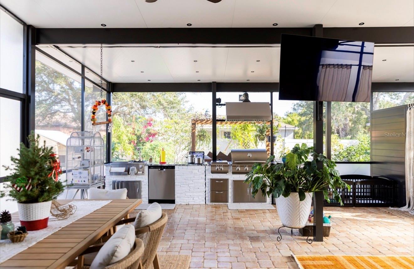 Hurricane Shutters, Lighting, Outdoor Kitchen, Rain Gutters, Sliding Doors