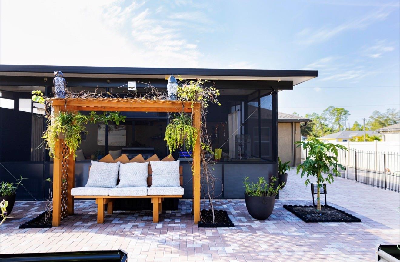 Welcome to your personal paradise with this stunning home, where outdoor living reaches new heights! Imagine hosting friends and family in your luxurious 750sqft lanai, complete with a fully equipped commercial grade outdoor kitchen, a state-of-the-art grill, dishwasher, exhaust fan, starry lighting sky, and even a refreshing private shower to wash off the day’s adventures. Experience the perfect blend of luxury and nature, right in your own backyard! Welcome home to your luxurious 2900sqft UNDER ROOF 2022 BLOCK BUILT with SOLAR PANELS 3 Bedrooms, 2-bathrooms, 2 car garage Insulated with Epoxy floors, shelving, and Air Conditioned for your toyz! Not in flood zone! No HOA, No CDD, No rental restrictions! Perfect Your Forever home or AIRBNB! Complete hurricane shutters protection! Beautifully landscaped front and backyard including multiple fruit trees such as: bananas, ananas, grapefruits, vanilla tree, guava, tomatoes, passion fruit, mango, papaya, orange, guava, star fruit, cherry, jasmine,and others!!! All fenced in for your furry family and large 16x10 air conditioned with electricity shed/workshop, with paved boat/RV space! Irrigation system installed! The list goes on and on! As you walk in your meticulously maintained home you will be wowed by beautiful Luxury vinyl plank flooring throughout! And newer stainless steel appliances! High grade granite countertops in kitchen and matching granite counters in all bathrooms! Upgraded lighting system throughout! Long extended driveway the list goes on and on! Continue your journey into the heart of the home, where the open kitchen seamlessly blends with the spacious great room. The kitchen, a culinary enthusiast’s dream, features huge central island with a convenient dishwasher and sink. A generously sized pantry ensures you have ample storage space, making it easy to keep your kitchen organized and clutter-free. Split bedroom plan ensures privacy and tranquility. On right side of your home, discover the owner’s suite – a sanctuary of comfort and style. Wow yourself with spacious walk-in closet, providing a home for your wardrobe and accessories. The owner’s bathroom is a retreat in itself, complete with a linen closet and all the modern amenities you desire. On the opposite side of the home, you’ll find bedrooms 2 and 3, each offering a cozy haven for rest and relaxation. These bedrooms share a well-appointed bathroom and a convenient hallway linen closet, adding an extra touch of practicality to your daily routine. The convenience continues with the strategically placed laundry room, just off the kitchen, making chores a breeze. From there, access your 2-car garage, ensuring that you and your toys are well taken care of. Welcome home to where is not just a house; it’s a home designed for modern living, where every detail has been carefully considered to enhance your lifestyle. Imagine your days in this thoughtfully crafted space, where comfort meets sophistication, and memories are made. The lifestyle, where luxury meets practicality. Located in a quiet neighborhood yet close to shopping, dining, and top-rated schools, Tampa Bay Rays Spring training, Famous Wellen Park, Cool Today Park, Multiple beaches, Warm Mineral Springs, Port Charlotte Mall/restaurants entertainment, Port Charlotte Beach Park, easy access to route 75 and I-41 Do not miss your opportunity to own this sunshine retreat! Call for your private showing today!