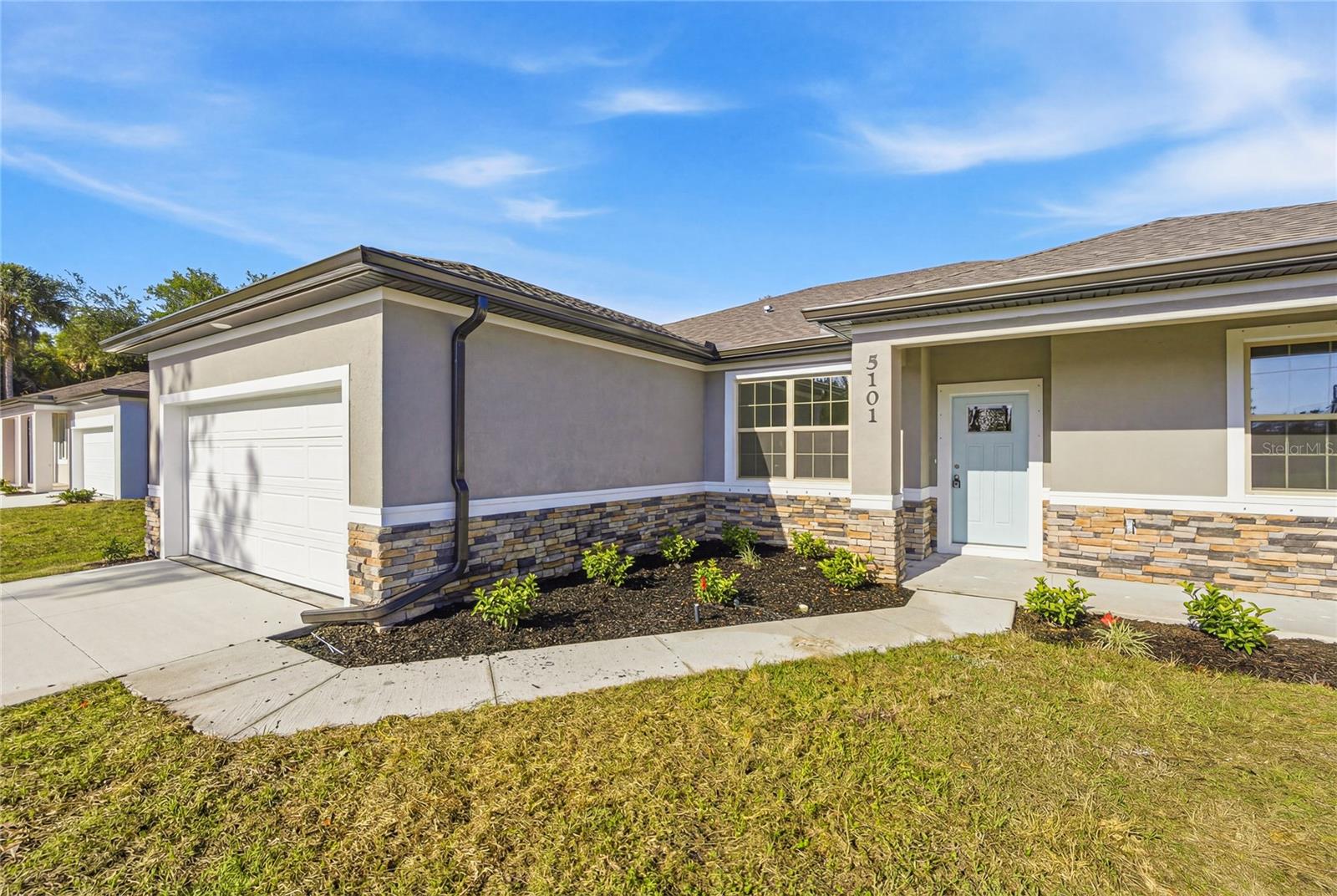 Great price with luxury features and ready now! A newly constructed home with city water and septic system in North Port, with no HOA fees! Great location for quick access to schools, the city center, medical conveniences, parks and the highway. North Salford is not in a high traffic area and only has side streets. This affordable new home is ready for you and is just what you've been looking for! This home has 9'4" tall ceilings, a nice and open layout with a versatile floor plan. The house features 4 bedrooms, 2 full bathrooms, dining room, a living room, an open kitchen and a 2-car garage with 1810 square feet of living space. The living space is well utilized with high ceilings and many windows providing natural light. The interior features will provide you with the quality and luxury you were looking for in your new home. This home has a split floor plan with the primary suite on one side of the home and the guest bedrooms on the other. The primary bedroom has a tray ceiling and large windows that let in natural light. You'll also enjoy a resort-style bathroom with a spacious walk-in shower with floor-to-ceiling tiled walls and a glass enclosure. It also features a linen closet, double vanity and a large walk-in closet. The living room features large windows and several LED fixtures providing plenty of light with access to the covered lanai. The living room is open to the kitchen, where you'll find a huge center island with extra seating for casual dining and plenty of cabinets. The kitchen features stainless steel appliances, Shaker-style cabinets with crown molding, decorative hardware, subway tile backsplash and granite countertops. The dining room is located at the front of the house, with large windows allowing for plenty of natural light. The home includes luxury vinyl plank flooring in the main living areas and bathrooms for durability and comfort. You'll love these floors! They are easy to maintain and offer a modern design, perfect for new homes. Other features include the same beautiful Shaker-style cabinets with hardware and granite countertops in the bathrooms, 5-inch baseboards, a garage door opener, gutters on the exterior, R38 insulation, a 16 SEER HVAC and much more. Visit our model center and compare the features and quality with other homes and you'll see the difference. We make buying easy for you!