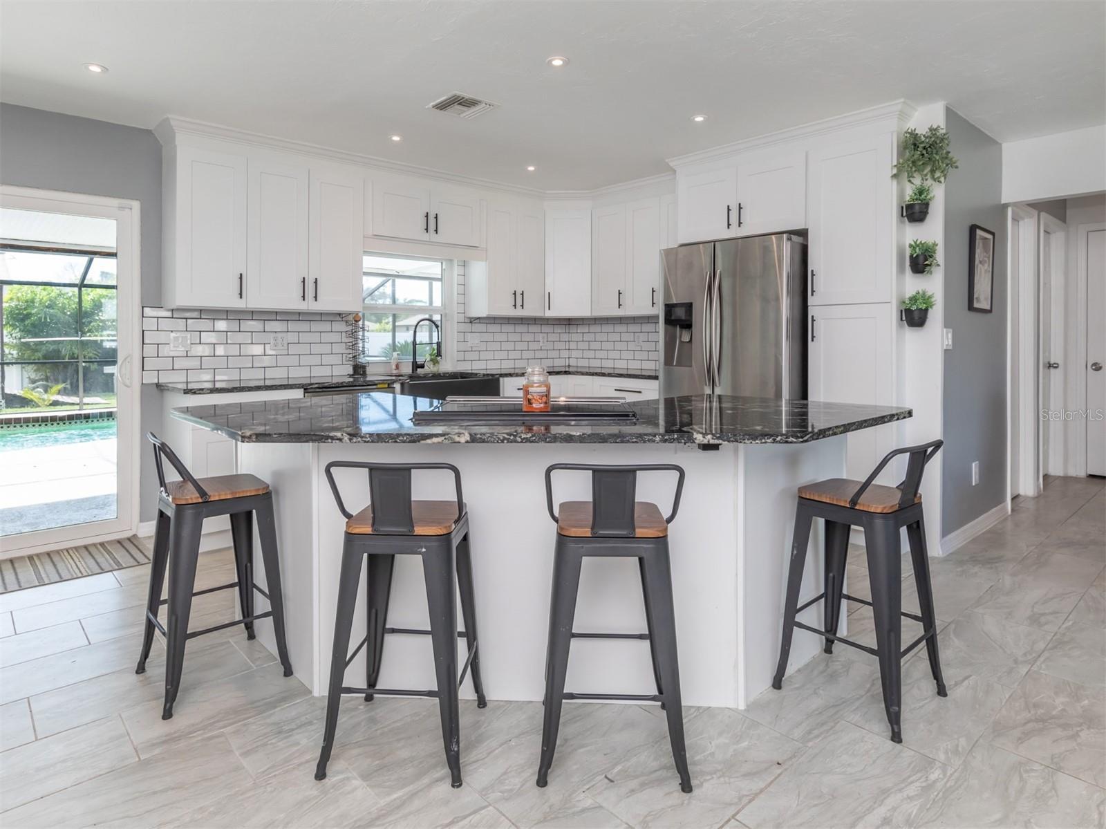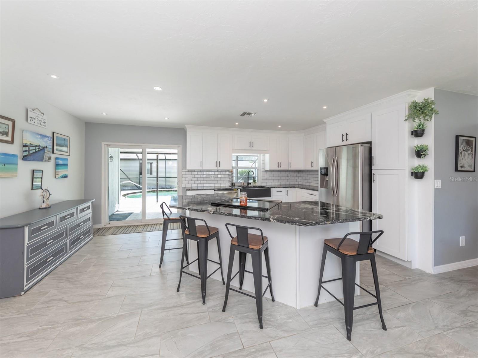 BRING US AN OFFER!!! Rare opportunity to purchase a home with an assumable mortgage ($270,000 @ 5.25% interest rate). Buy with Roam and save thousands annually.This 3-bedroom, 2-bathroom, 2-car garage POOL home is ready for you. Pool was just refinished- it is gorgeous and looks brand new!! New Metal Roof in 2023! Flood Insurance Not Required! Recently remodeled & super trendy! Plenty of curb appeal here!! Upon entering through the front door, you'll discover a charming entry nook, setting the tone for the warmth and coziness this home offers. As you step inside, you'll be greeted by an inviting open concept living room, perfect for gatherings around the cozy fireplace. The heart of this home, the fully remodeled kitchen, boasting granite countertops & a timeless subway tile backsplash. The kitchen also features a generously sized breakfast bar/island where you can savor your morning coffee while enjoying scenic pool views. Step outside to a spacious screened lanai spanning 28' x 12' under roof, offering an ideal space for outdoor relaxation. Additionally, there's a generous 36' x 20' screened pool cage area, providing the perfect setting to bask in the sunny Southwest Florida weather. For those who value privacy, the fully fenced yard features a convenient entry gate, offering security and seclusion. A 16' x 12' shed on the property provides ample storage space for your needs. Want to start a homestead? There are already chickens on the property! The property boasts hurricane impact glass through out (with transferrable warranty), recent exterior paint. AC & Water Heater- 2020. New pool pump 2023. Attic lined with spray foam insulation, keeping the attic cool and electric bills lower. Conveniently located near dining & shopping, this North Port beauty is an opportunity not to be missed. Discover a serene retreat, modern comforts, and an inviting atmosphere in a truly remarkable Florida setting. Your journey begins at this lovely property, where you can embrace the Florida lifestyle in style and comfort. Assumable at Roam with an interest rate of 5.25%. Potential for a 2nd mortgage to cover the difference with Roam Boost. Call for more information. This home is beautiful and is ready for it's next owner, call to schedule your showing today!