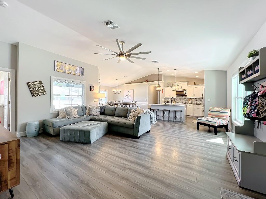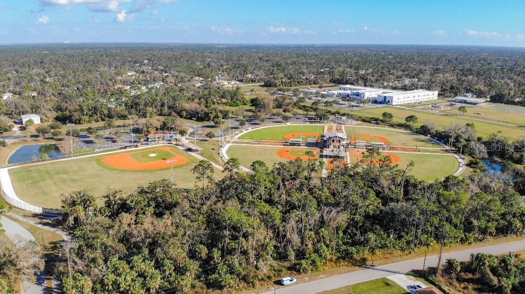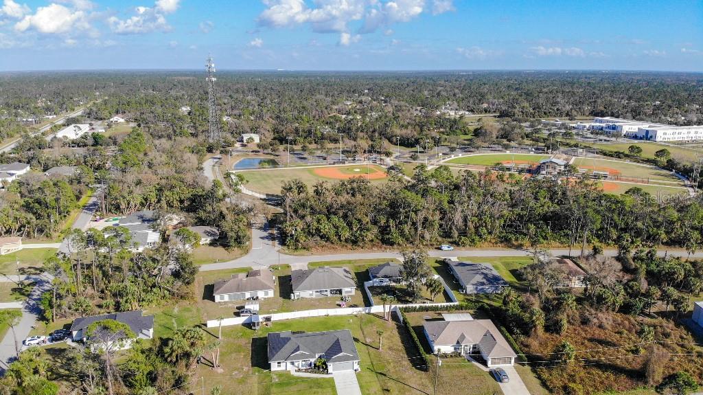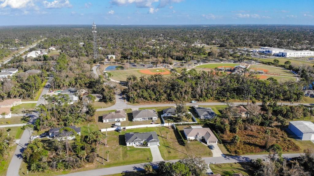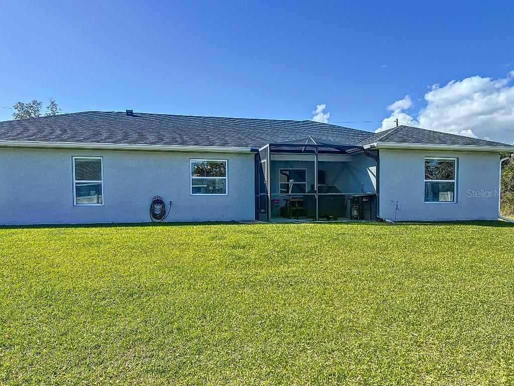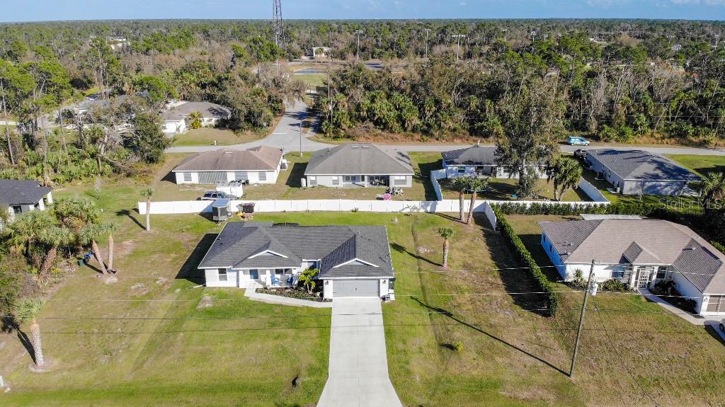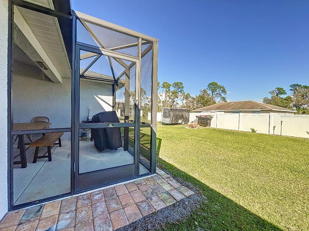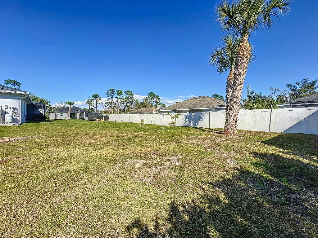 **Price reduction** Move right into this gently used home on a half acre, just a short distance from community park. With a split floor plan, this 3 bedroom + den home will give you plenty of space. Large open living area is great for dinners and entertaining. The kitchen features soft close shaker style cabinets, beautiful stone countertops, stainless steel Whirlpool appliances and a farmhouse style sink and backsplash tie it all together. The pantry offers plenty of room, with 10 shelves. Down the hall you will find 2 guest bedrooms, a linen closet, guest bathroom and laundry room. Guest bathroom has a tub/shower combo with stone wall and decor. Laundry room has new LG front load washer and dryer that stay with the home. Opposite you will also find additional shelving and a utility sink. The den can be closed with the double doors, offering the privacy of an additional bedroom if needed. The primary suite has crown molding and plenty of space for all of your furniture. Retreat further into your spa like en-suite and you will never want to leave! Relaxing tub, separate tiled shower and dual sink vanity. Beyond that is your huge walk in closet, with pocket door. Impact windows provides ease during hurricane season with no shutters having to be put up! This home is also not in a flood zone. A/C is serviced twice per year and the water heater was just replaced in 2024. The large yard is a double lot, so you are just under a 1/2 acre, with cleared space on either side of the home, as well as the backyard. This allows you plenty of room for your future garage, shed, pool or playground! The opportunities are endless. Within easy access to I-75, you can access Kings Hwy in 10 min, or if you are heading north- hop on at Toledo Blade. Just a short drive to the up and coming Wellen Park area. Don't wait for the unknown new construction home to be completed- this is move in ready today!