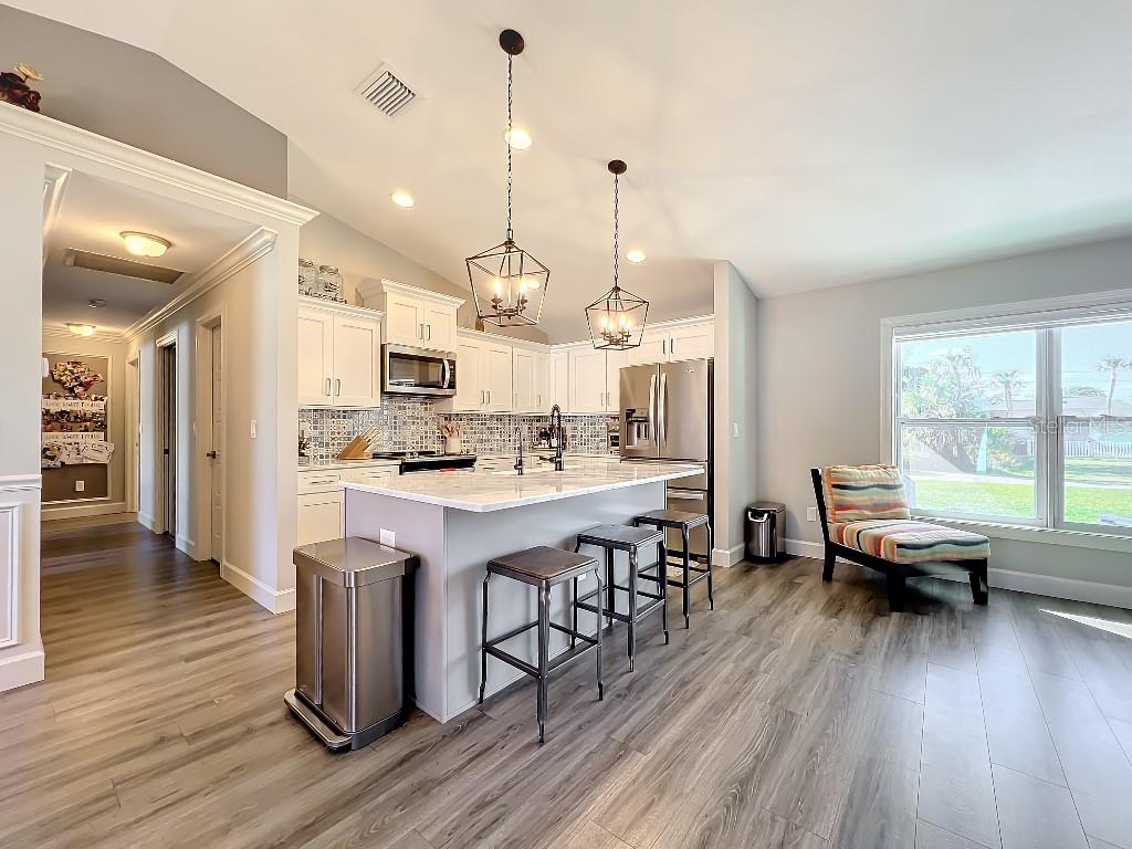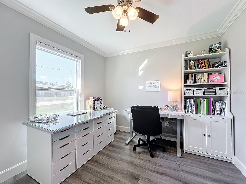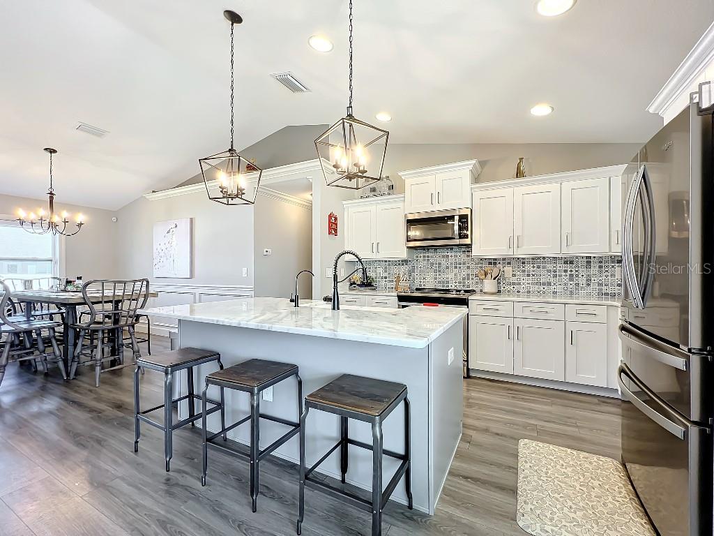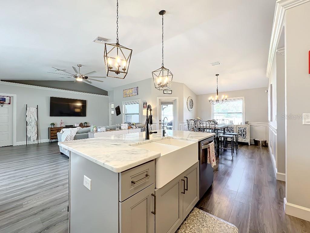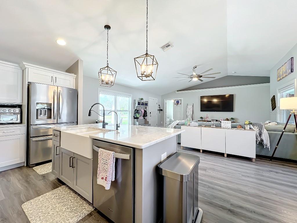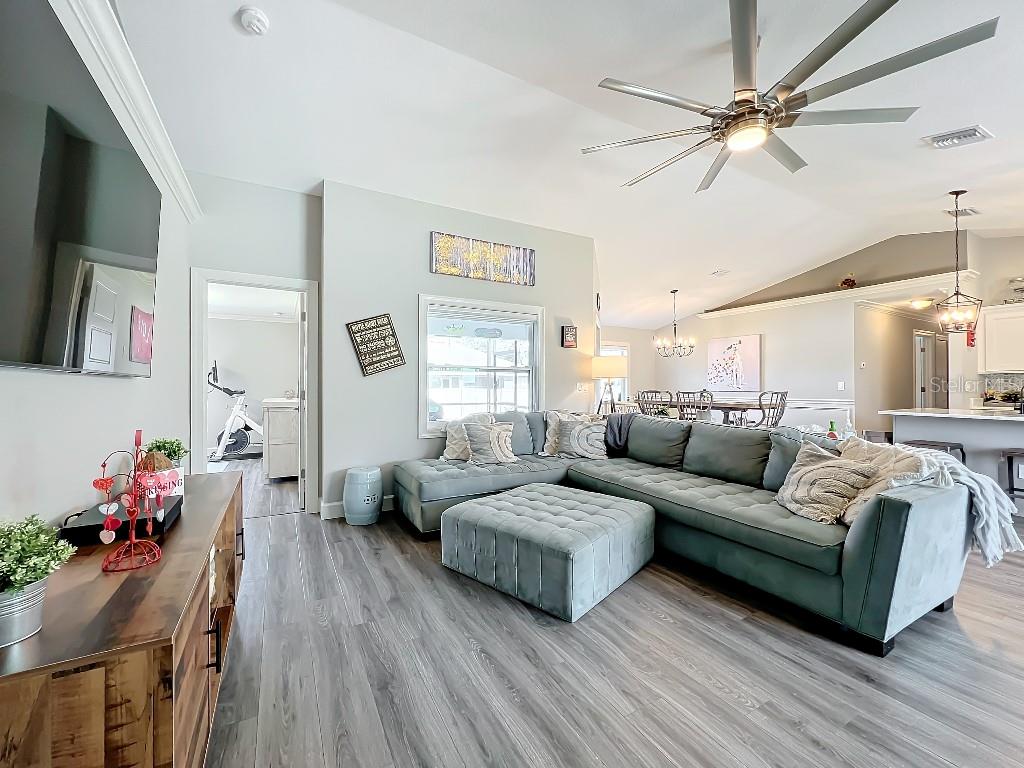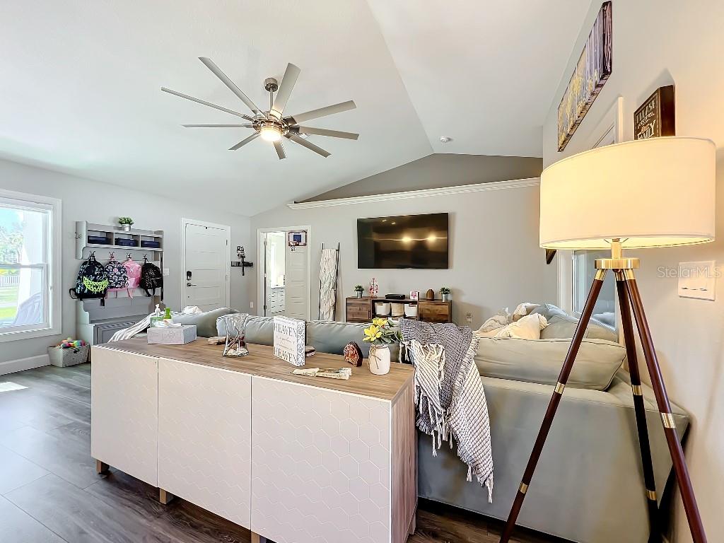 **Price reduction** Move right into this gently used home on a half acre, just a short distance from community park. With a split floor plan, this 3 bedroom + den home will give you plenty of space. Large open living area is great for dinners and entertaining. The kitchen features soft close shaker style cabinets, beautiful stone countertops, stainless steel Whirlpool appliances and a farmhouse style sink and backsplash tie it all together. The pantry offers plenty of room, with 10 shelves. Down the hall you will find 2 guest bedrooms, a linen closet, guest bathroom and laundry room. Guest bathroom has a tub/shower combo with stone wall and decor. Laundry room has new LG front load washer and dryer that stay with the home. Opposite you will also find additional shelving and a utility sink. The den can be closed with the double doors, offering the privacy of an additional bedroom if needed. The primary suite has crown molding and plenty of space for all of your furniture. Retreat further into your spa like en-suite and you will never want to leave! Relaxing tub, separate tiled shower and dual sink vanity. Beyond that is your huge walk in closet, with pocket door. Impact windows provides ease during hurricane season with no shutters having to be put up! This home is also not in a flood zone. A/C is serviced twice per year and the water heater was just replaced in 2024. The large yard is a double lot, so you are just under a 1/2 acre, with cleared space on either side of the home, as well as the backyard. This allows you plenty of room for your future garage, shed, pool or playground! The opportunities are endless. Within easy access to I-75, you can access Kings Hwy in 10 min, or if you are heading north- hop on at Toledo Blade. Just a short drive to the up and coming Wellen Park area. Don't wait for the unknown new construction home to be completed- this is move in ready today!