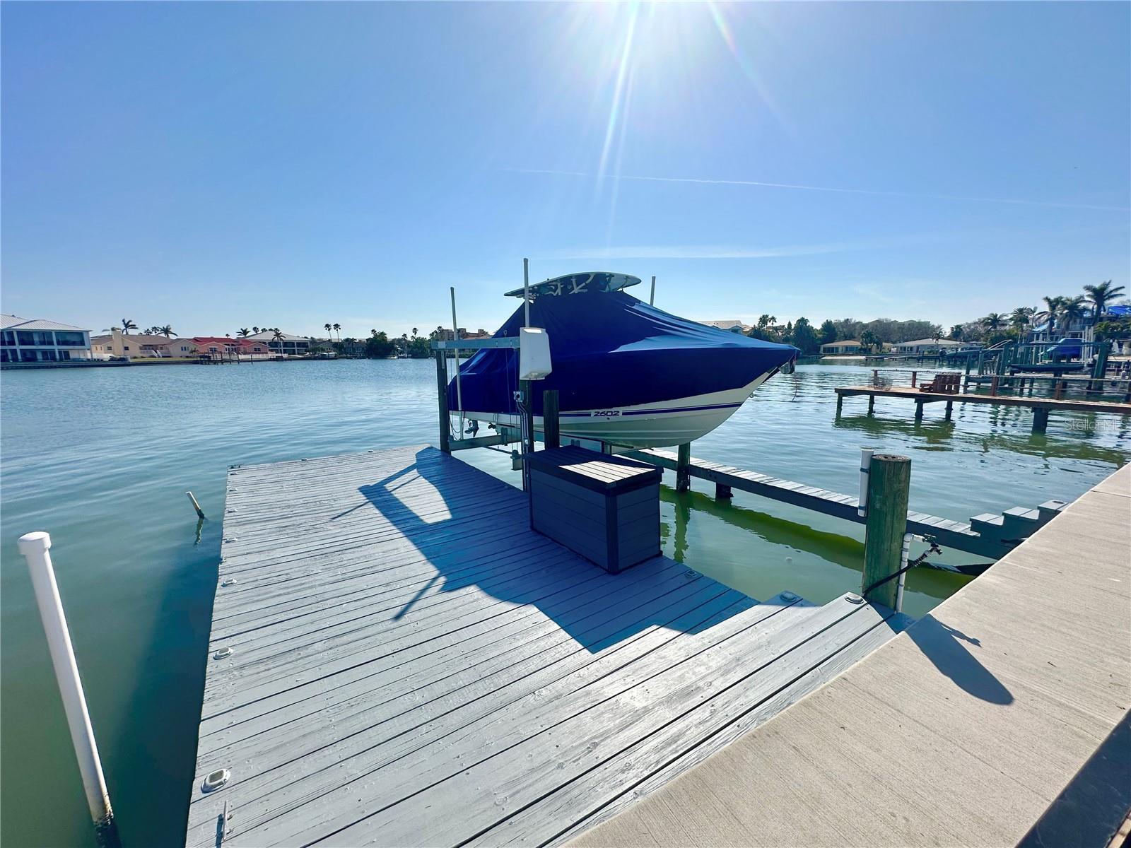 Build your dream home on the highly sought after Bath Club Boulevard in North Redington beach! This tranquil property offers 70 feet of waterfront, new concrete seawall (2022) and a spacious dock that includes an approximately 13,000 lb boat lift. The existing house has been freshly cleared and lot has been leveled. Recent survey and soil tests completed and available, as well as build plans for a raised 3,021 square foot Key West style home that are signed and sealed. 4,556 sq ft including garage and porches. Enjoy uninterrupted views and peace of mind from future storms in one of the few communities that features one of the HIGHEST base flood elevations in the area (11ft), BURIED UTILITY LINES, and a lot shape that is SHIELDED from direct waves off the intercoastal. Boaters have easy access to the bay and gulf directly from their backyard with a minimum of 6ft of water depth at the boat lift even in low tide. Dolphins and perfect sunsets are a fixture for you to build your vision around!