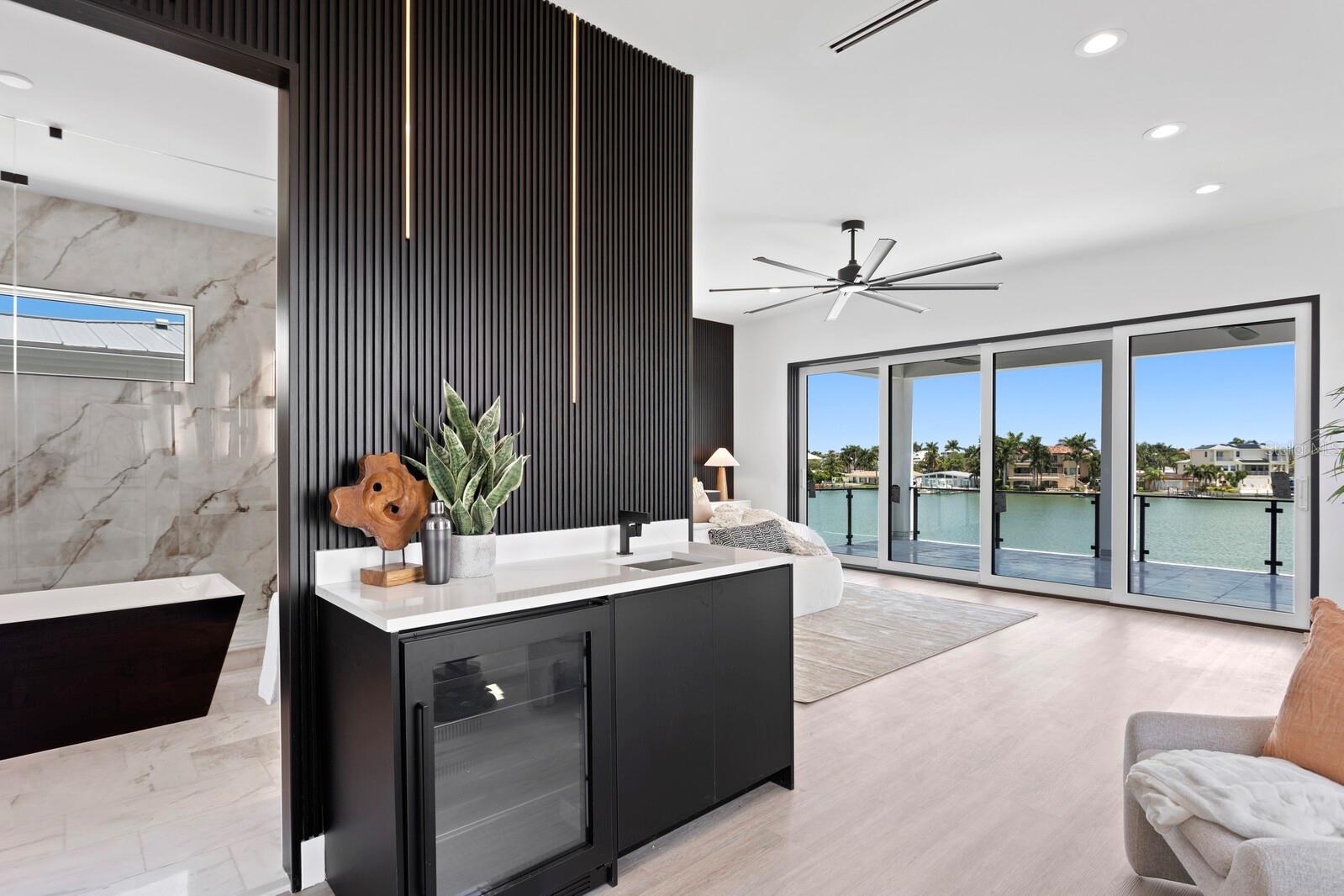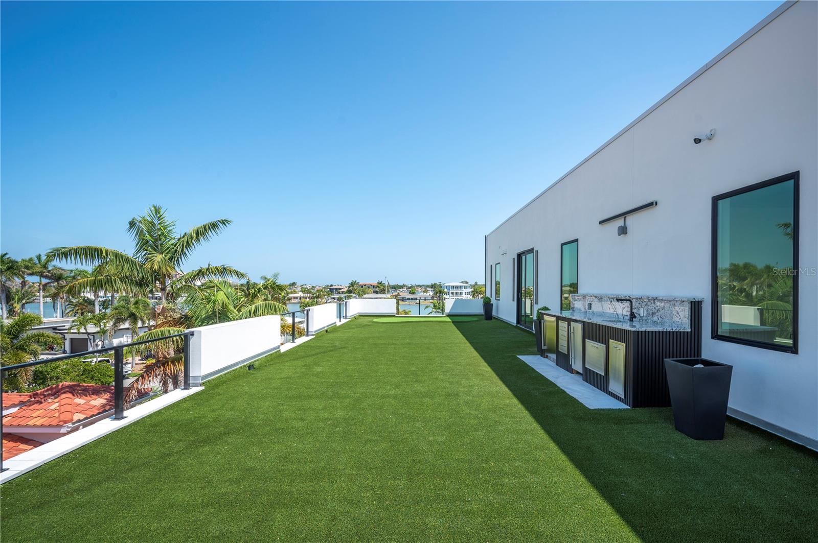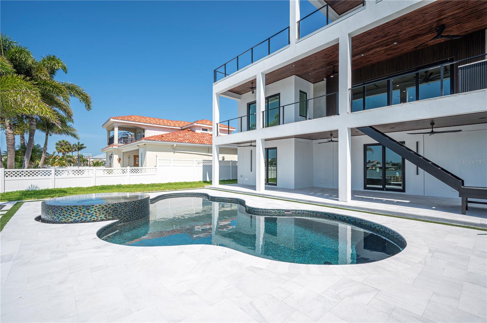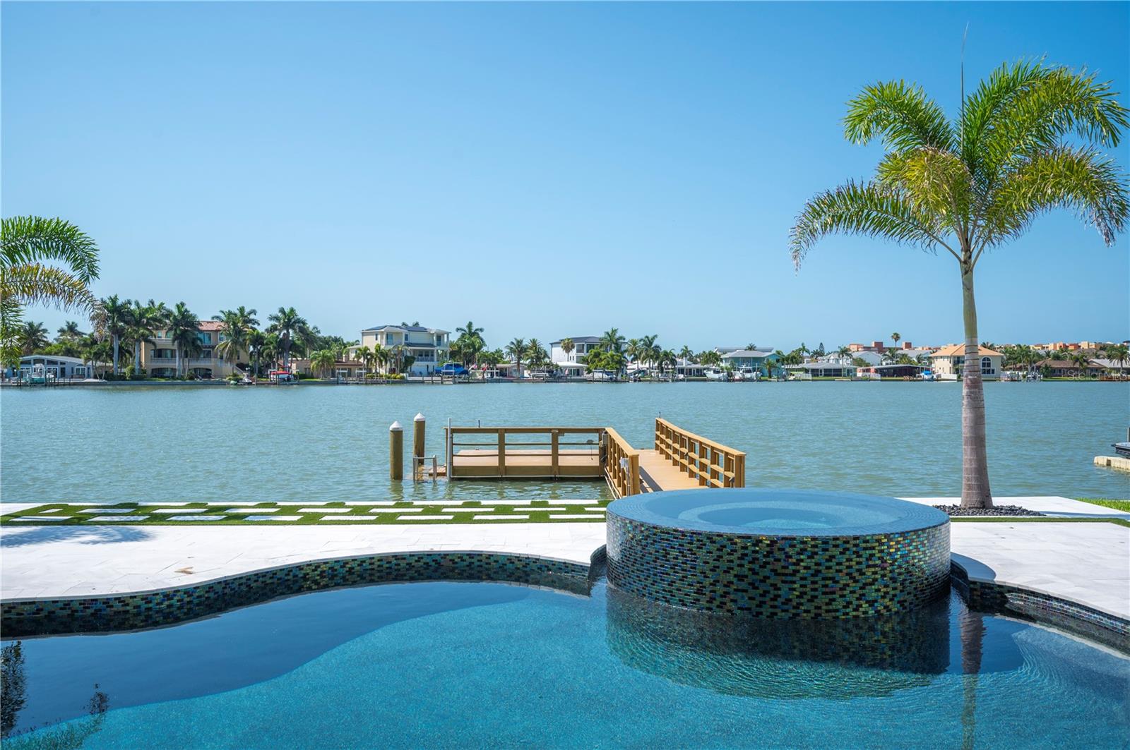 NO FLOOD DAMAGE TO THE LIVING LEVELS!! Modern Masterpiece in North Redington Beach by Spinelli Real Estate Development. This modern three-story coastal location one and a half blocks from the beach features a spectacular turf rooftop terrace offering over 1,200 SF of stunning beach vistas and captivating sunsets. Every custom detail has been addressed from a dramatic 20ft cascading chandelier and expansive iron pivot front entry door, climate-controlled wine cellar, and 9 car garage. Floor to ceiling windows and soaring ceilings provide the backdrop for impressive entertaining in an open floor plan. The second floor delivers an outstanding chef’s kitchen with quartz waterfall island, top-of-the-line appliances (Thermador) and butler’s pantry overlooking the dining area and family room. The second level also features an ensuite guest bedroom, powder bath and 2 more bedrooms, an Outdoor Kitchen and expansive marble lanai. A 3-stop elevator assures easy transition from floor to floor, with the third level offering a grand master retreat. The private primary oasis provides large sliders to a terrace overlooking the intercoastal, indulgent spa-inspired bath and custom closet/dressing area. The third level boasts an expansive walk around rooftop terrace along with an entertaining bar and putting green. The ground level is all about entertaining with a spacious covered lanai, fully automated salt water pool, 360 infinity spa and marble/turf expansive deck. Additional features include luxury vinyl flooring throughout, Custom built Closets, custom Italian cabinetry, gas appliances and tankless water heater, dual laundry room, outdoor surround sound, smart home pre wire, camera system and tropical landscape. Deep water canal with 2017 seawall and dock. In desirable North Redington Beach Dolphin Dr canal, you are just moments from the pristine Gulf beach and the vibrant energy of coastal living. Minutes to local festivals, restaurants, golf and entertainment! This is a perfect beach paradise to live like you’re on vacation every day. Enjoy the many nearby dining options, John's Pass, Clearwater Beach and downtown St. Pete, with easy access to Tampa International Airport.