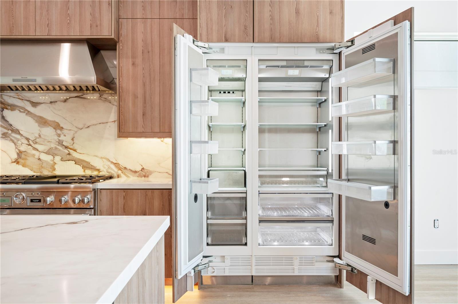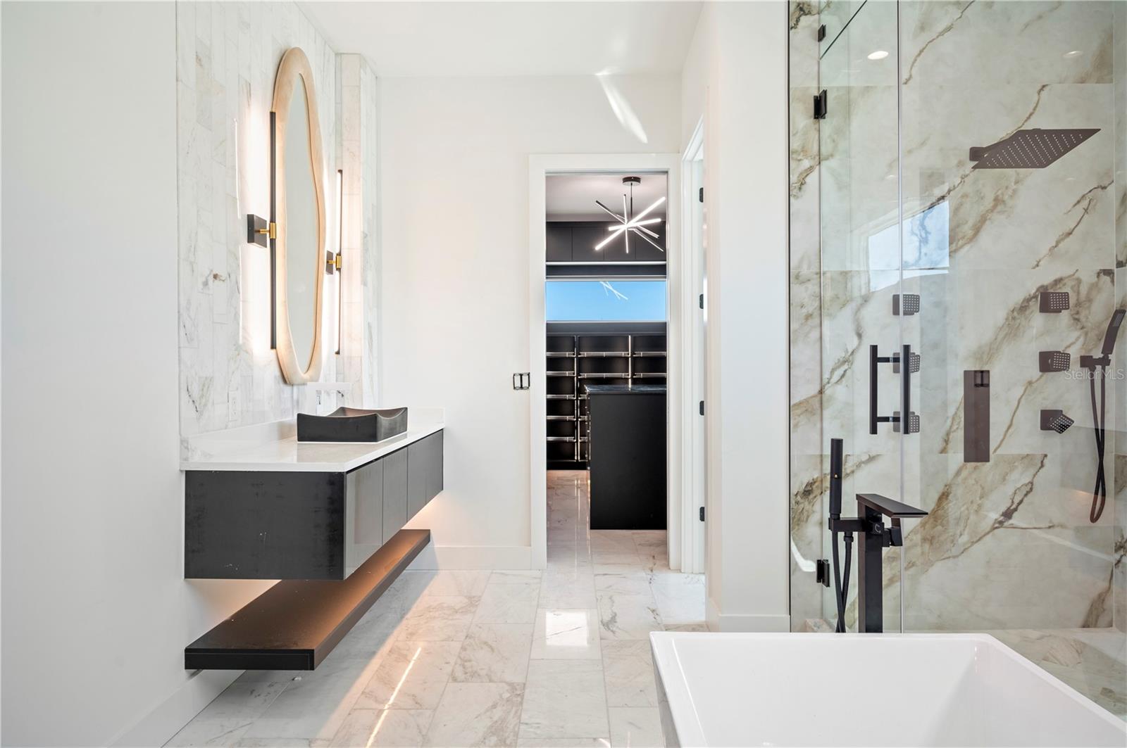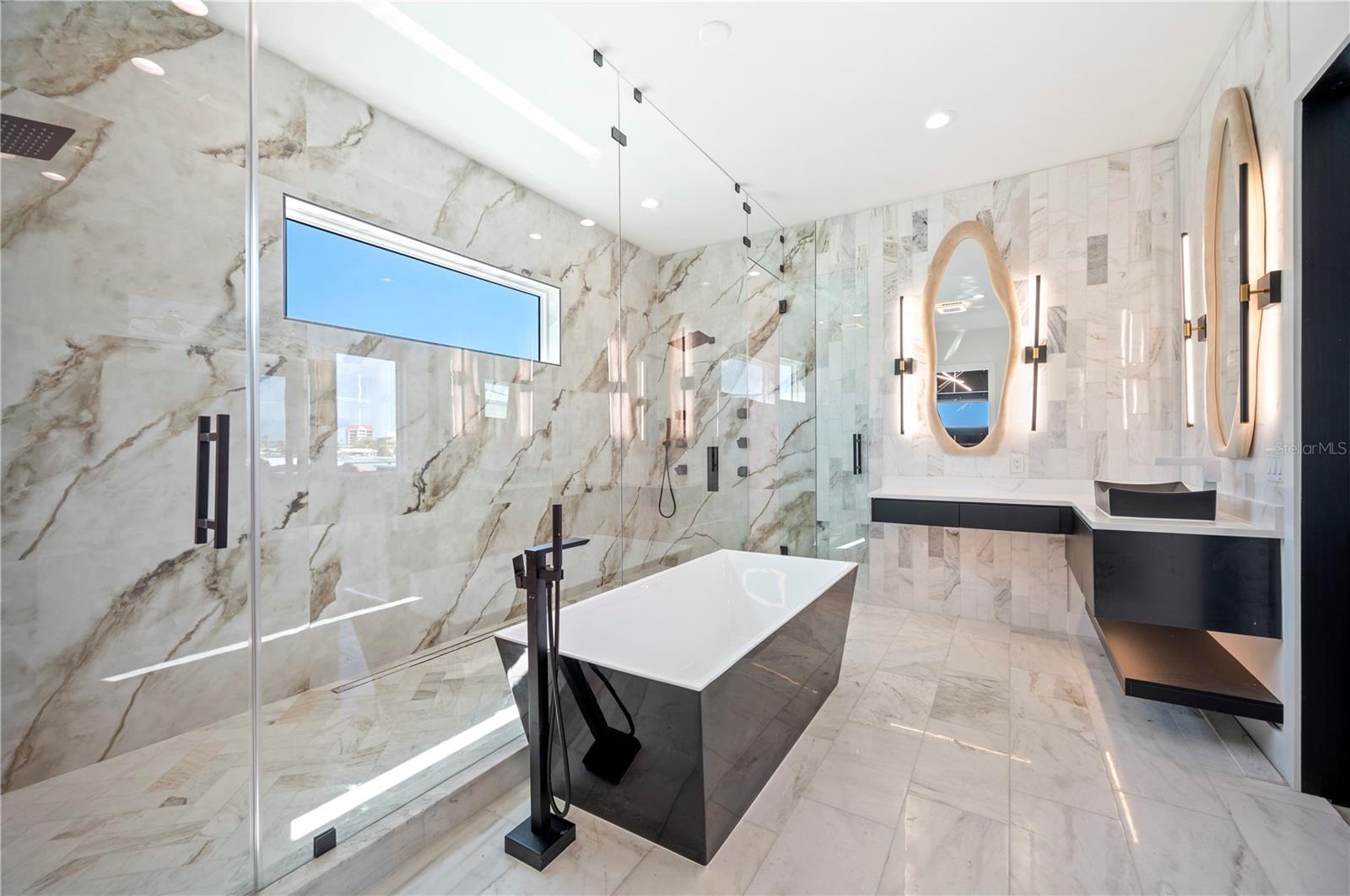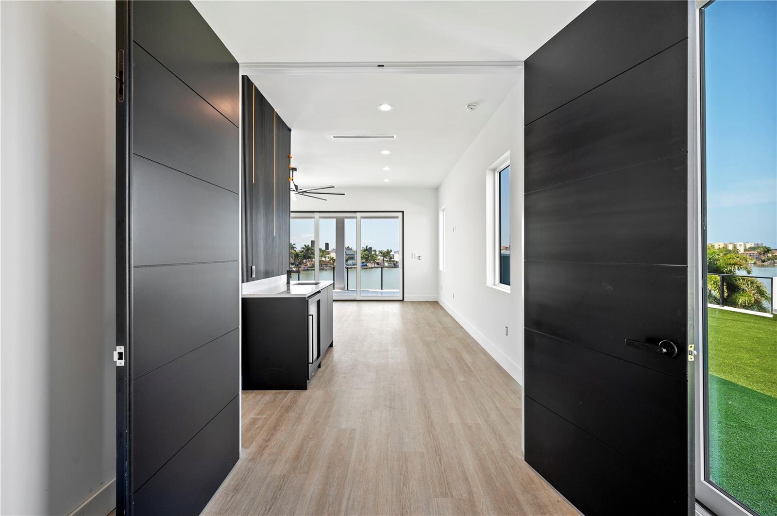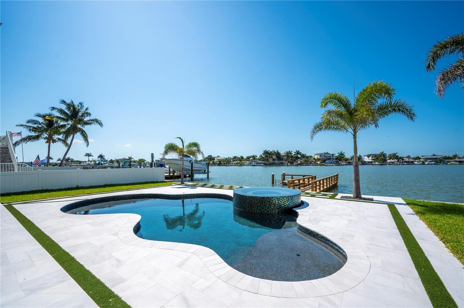 NO FLOOD DAMAGE TO THE LIVING LEVELS!! Modern Masterpiece in North Redington Beach by Spinelli Real Estate Development. This modern three-story coastal location one and a half blocks from the beach features a spectacular turf rooftop terrace offering over 1,200 SF of stunning beach vistas and captivating sunsets. Every custom detail has been addressed from a dramatic 20ft cascading chandelier and expansive iron pivot front entry door, climate-controlled wine cellar, and 9 car garage. Floor to ceiling windows and soaring ceilings provide the backdrop for impressive entertaining in an open floor plan. The second floor delivers an outstanding chef’s kitchen with quartz waterfall island, top-of-the-line appliances (Thermador) and butler’s pantry overlooking the dining area and family room. The second level also features an ensuite guest bedroom, powder bath and 2 more bedrooms, an Outdoor Kitchen and expansive marble lanai. A 3-stop elevator assures easy transition from floor to floor, with the third level offering a grand master retreat. The private primary oasis provides large sliders to a terrace overlooking the intercoastal, indulgent spa-inspired bath and custom closet/dressing area. The third level boasts an expansive walk around rooftop terrace along with an entertaining bar and putting green. The ground level is all about entertaining with a spacious covered lanai, fully automated salt water pool, 360 infinity spa and marble/turf expansive deck. Additional features include luxury vinyl flooring throughout, Custom built Closets, custom Italian cabinetry, gas appliances and tankless water heater, dual laundry room, outdoor surround sound, smart home pre wire, camera system and tropical landscape. Deep water canal with 2017 seawall and dock. In desirable North Redington Beach Dolphin Dr canal, you are just moments from the pristine Gulf beach and the vibrant energy of coastal living. Minutes to local festivals, restaurants, golf and entertainment! This is a perfect beach paradise to live like you’re on vacation every day. Enjoy the many nearby dining options, John's Pass, Clearwater Beach and downtown St. Pete, with easy access to Tampa International Airport.