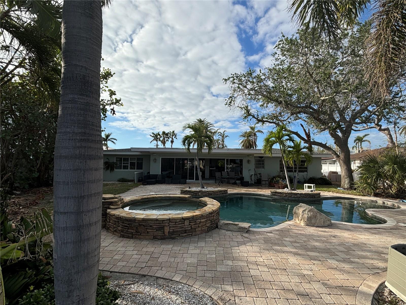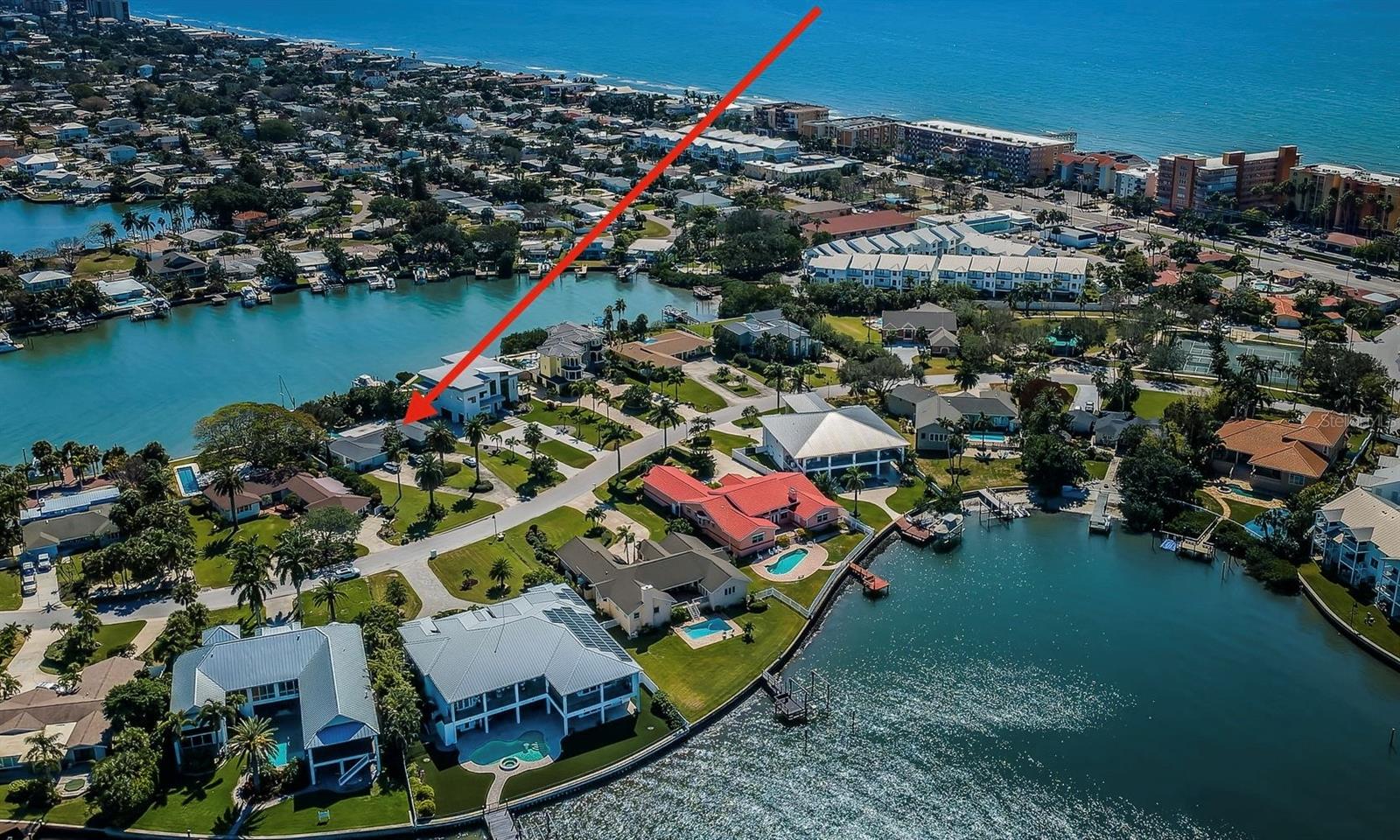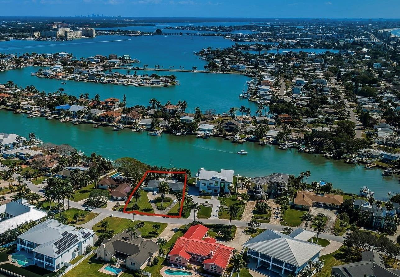 Rare opportunity to own an oversized waterfront property in the prestigious Bath Club Estates of North Redington Beach. Come build your dream home on this extraordinary nearly half acre (.46 Acres) estate size lot, in a community of fine homes. This property offers a canvas for you to design and build your own masterpiece. Protected waterfront on wide basin, with sunny southern views, great boating water with easy access to the Gulf and the intracoastal waterway. Situated on a private cul-de-sac, just steps to local park with walking path, gazebo, playground and pickleball and tennis courts. Community has underground utilities, lantern-style street lights, and access to natural gas. Easy stroll to the white sands and sunsets. Beach access and parking, exclusive to town residents. Town of North Redington Beach has among the lowest tax millage rates in the county, and is centrally located with easy access to shopping and dining. The home experienced flooding for the first time with Hurricane Helene and remediation has been performed, but property is being sold for land value- home and improvements are not warrante