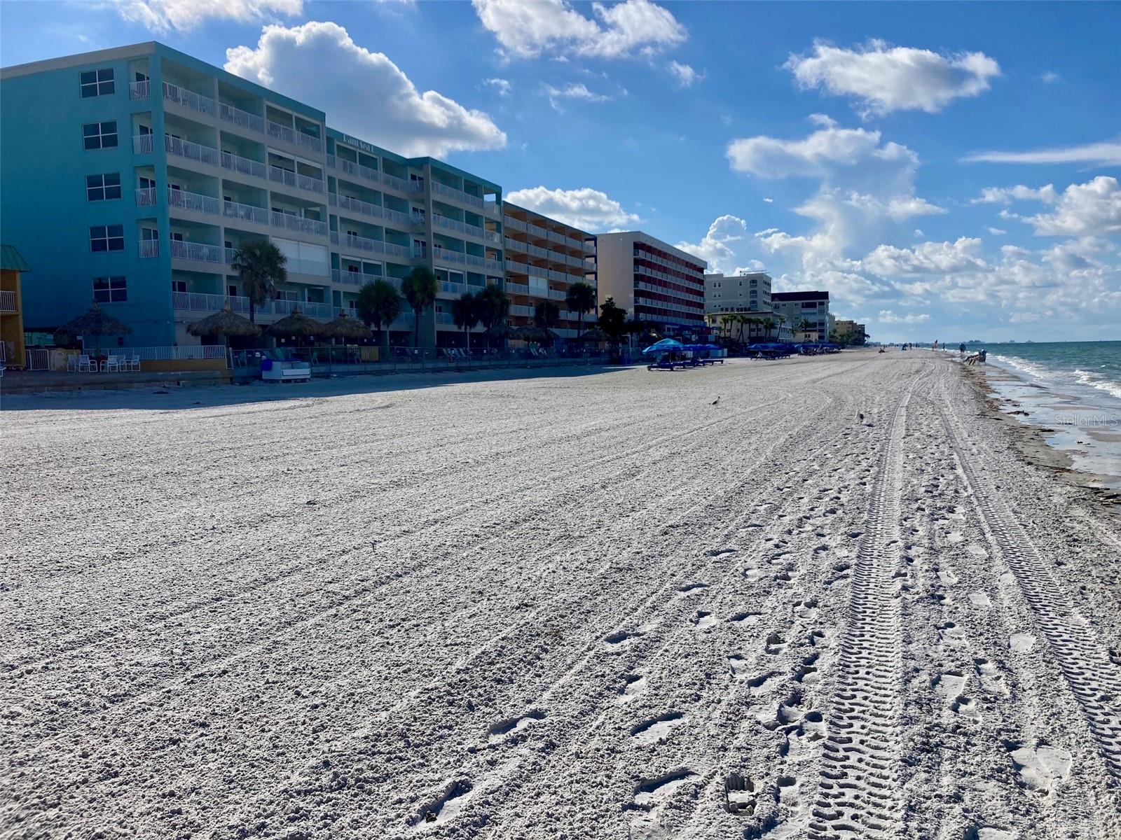 EXCEPTIONAL NEW PRICE!!!! -RAM SEA 401– DIRECLTY BEACH FRONT/CORNER LOCATION. Sweeping panoramic views of beach and Gulf. This spacious two-bedroom two bath condo offers 1205 square feet of glorious coastal charm. The living room opens onto a private waterfront balcony. Ram Sea 401 is beautifully furnished and turnkey ready. The condo is well appointed and “eclectically beachy”. Many recent upgrades including new flooring throughout. Stainless steel appliances as well. Ram Sea 401 is the perfect second home and/or short-term rental property. A definite income producing opportunity. Rental information and rental history available on request. Professional management is on site should you want to be fully at leisure regarding the property. Ram Sea offers the rare luxury of management with an on-site guest/owner services desk for anyone wanting to enjoy the benefits provided. There is a large, heated pool and Jacuzzi spa, also, expansive sun decks and tiki areas. Spa and pool decks, tiki huts, deck furniture, and showers are all brand new in 2025. Also new to the property are the beachside natural gas grills. Condo has PGT high impact/storm rated windows and glass doors. Enjoy world class sunsets along beautiful sugar sand beaches. Centrally located between the TOP-RATED BEACHES OF ST PETE/CLEARWATER. Just 20 minutes from St Pete/Clearwater International Airport (PIE). Don’t let this one pass you by.