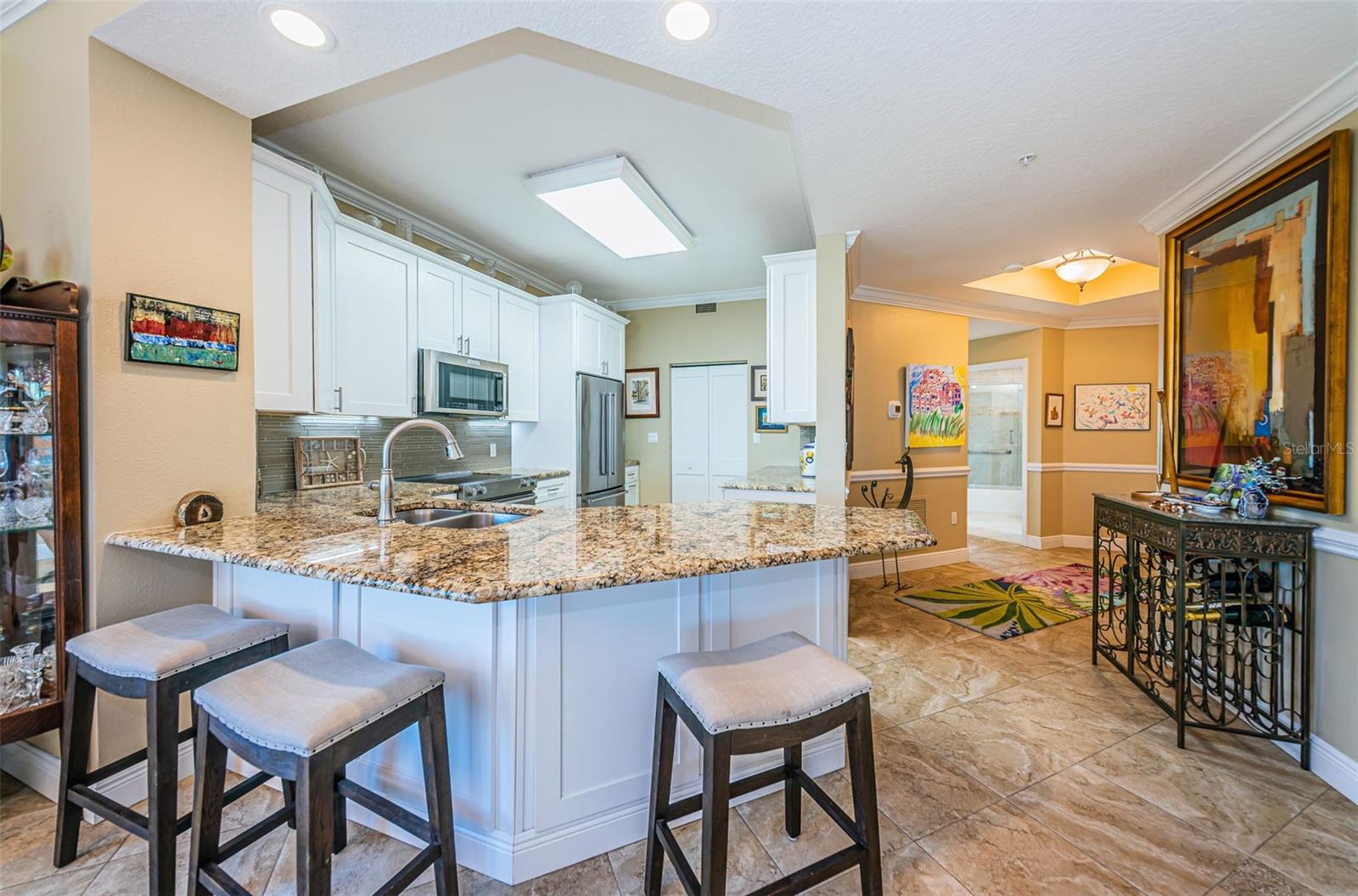 ONE OF THE PREMIER RESIDENCES IN ONE OF THE BEST BEACHFRONT COMMUNITIES ON FLORIDA’S GULF COAST! THIS INSPIRING TOP FLOOR CONDOMINIUM BOASTS BEAUTIFUL FINISHES AND IS COMPLEMENTED BY THE WONDERFUL 5-STAR AMENITIES AWAITING YOU AT THE TIDES BEACH CLUB. Located directly on the powder soft sands of North Redington Beach, you’ll love the stunning views of the turquoise waters of the Gulf of Mexico. With 1813 sqft of elegant living area, this impressive 3 bedroom 2 ½ bath corner unit feels spacious and luxurious. Exquisite flooring, rich woodworking, and fine automated window treatments! The gorgeous coastal kitchen features dazzling granite counters, white shaker-style cabinetry, quality stainless steel appliances, glass-tile backsplash, above and under cabinet lighting, sizable breakfast bar and pantry closet. You’ll love the open great room concept with family and dining areas that provide unforgettable open water views! Step out to your private covered balcony and feel the ocean breezes and breathtaking open water vistas. Owner’s suite overlooks the Gulf, has a sizable walk-in closet with closet system, and private access to balcony. The wonderful owner’s bath offers lovely wainscoting, graceful dual vanities, a luxurious glass-enclosed rain shower with body wand and superb tilework, and a separate rest room. 2nd bedroom is oversized, has a walk-in closet with closet system, and direct access to full guest bath. 3rd bedroom includes a splendid built-in credenza with desk area, and an attractive closet system. Bathrooms 2 and 3 are beautifully appointed. Your extensive amenities include a spectacular clubhouse, fitness center, game area, reading room, functions room, massive beachfront pool and spa, and so much more. You’ll appreciate the peace-of-mind provided by your electronic storm shutters - protecting your balcony furnishings! An exceptional condominium in a highly acclaimed beachfront community! Measurements/dimensions are estimates, buyer to verify.