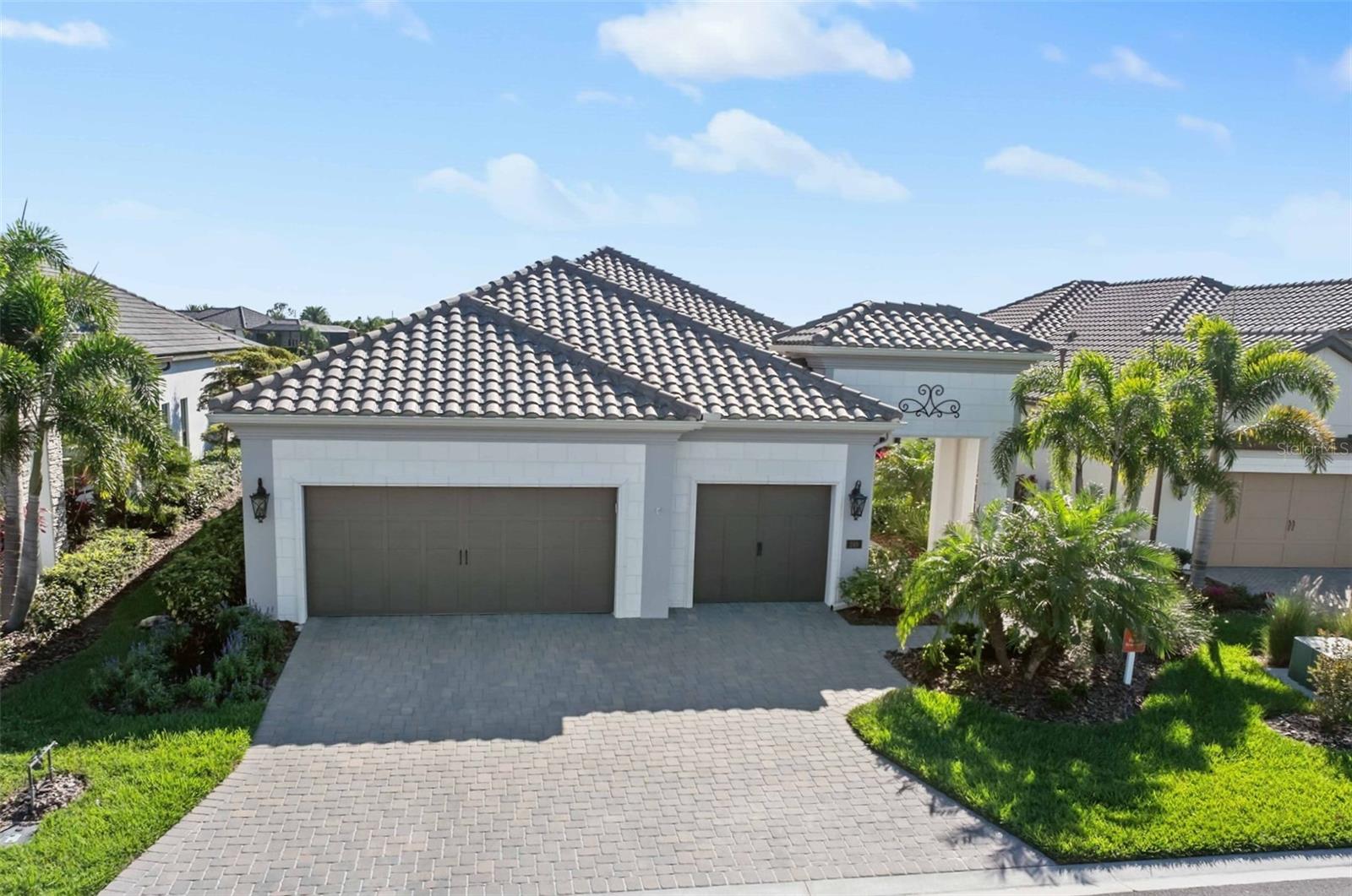 If you're looking for a home with a SPECTACULAR WATER VIEW on a premier lot, then look NO FURTHER! This immaculate 3-bedroom, 2.5-bathroom luxurious pool home is located in the italian-inspired, gated community of Aria. Situated on THE BEST LOT with no obstructed views of utility lines in sight; just spectacular sunsets and panoramic water views! This custom-built Vicenzo model has an open floorplan with 12 ft ceilings and HURRICANE IMPACT WINDOWS and DOORS throughout. Upon entering, you will immediately notice the grand great room that overlooks the oversized screened lanai with a private pool and magnificent view. The gourmet kitchen is a culinary masterpiece, boasting high-end appliances, 42-inch maple wood cabinets with stackers, granite countertops, soft close drawers, a 5-burner gas stove top, built-in microwave/ convection oven, and an oversized walk-in pantry. The tastefully designed primary suite offers an en suite bathroom with maple wood cabinets, dual sinks, and a luxurious soaking tub. The two additional bedrooms are located next to a second full bathroom with a tub. This custom-built model boasts a 3-car garage that not only accommodates your vehicles, but also offers an additional 4 ft of storage space. Aria is an active community with resort-style amenities that feature a state of the art clubhouse, community pool and spa, fitness center, and pickleball courts. Aria is located in an “A” rated school district and only 6.5 miles to Venice and Nokomis beaches. Fine dining, shopping and golf are minutes away. This home is the epitome of luxury living with smart home technology and maintenance free living. Don't miss the opportunity to make this piece of paradise your own—schedule a personal showing now, as a home of this caliber on such a remarkable lot won't last! For a comprehensive tour, search the property address on YouTube.
