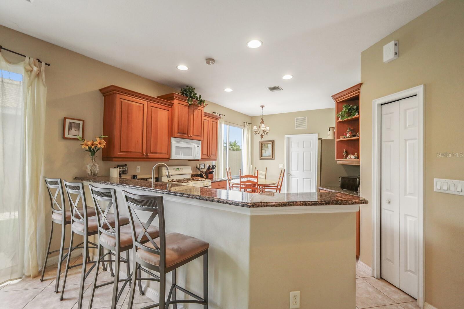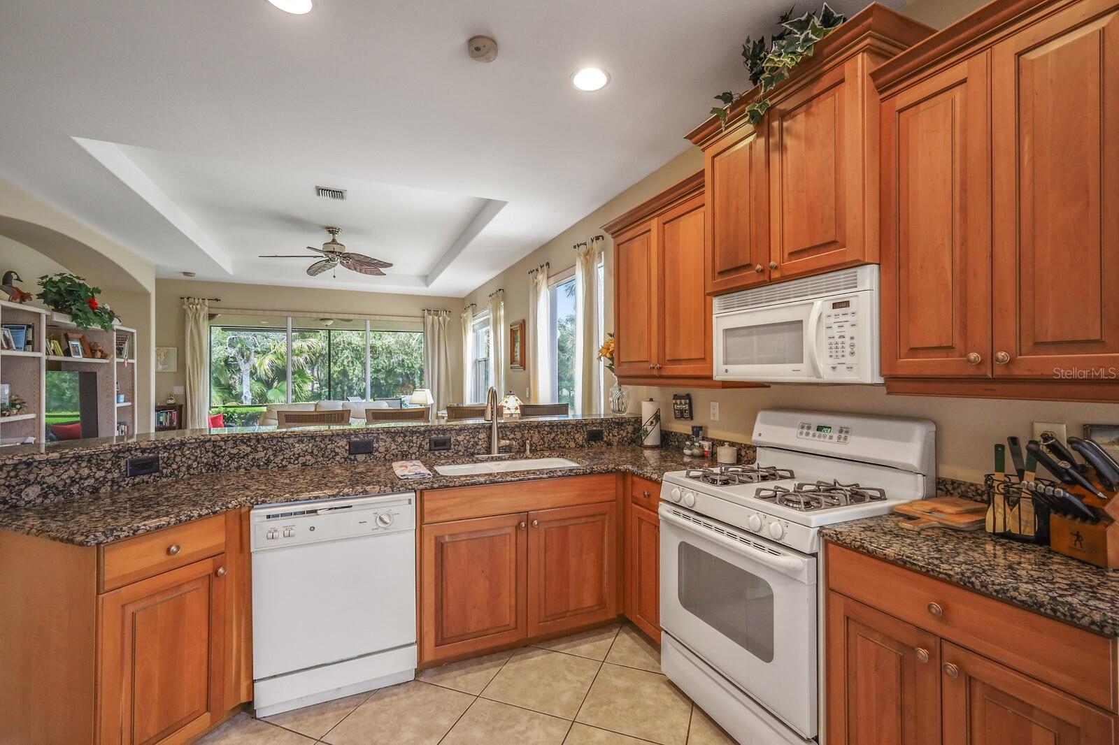 Welcome to the Venetian Golf and River Club, one of Sarasota’s most desired neighborhoods. As you drive through the 24 hour security gate guard, you begin your journey to one of the most amenities rich communities in the county. Golfers may turn to the right to see the additional private Golf Club complete with it’s own restaurant, pro-shop, and golf amenities. Golf Membership is not mandatory. Your second left will lead you to this gorgeous home with fabulous views of a pond and wooded area. As you enter from the side of the home, in the private screened entranceway, you will notice the high tray ceilings, open floor plan and custom granite counters. This kitchen has a breakfast nook with plenty of outdoor light through one of the three sliding glass doors. This well equipped kitchen has two pantries and storm shutters for the sliding glass doors and double pane windows throughout with an alarm system. A separate laundry room, with a black and chrome washer and dryer are trendy and sleek.With ceiling fans in every room, this functional split plan has it all. Relax with a book in the back lanai while overlooking the pond and hearing the soft sounds of nature. The two car garage offers a utility sink and plenty of room for storage. Relax and enjoy Florida life while lawn and shrub maintenance is provided. This gated, secured golfing community offers a 18 hole Champion Golf Course, Tennis Center, 6 Har-Tru Tennis Courts, Pickle Ball, Resort Style Pool, Hot Tub, Newly Remodeled Tiki Bar, Lap Pool, Top of the Line Fitness Center, Aerobic and Yoga Studio, Bocci Ball area, 70 acre Natural Park along the Myakka River complete with above ground trek walking trail and picnic cabana and observation area. Bocci Ball anyone? Play outside the newly decorated clubhouse after your Sunday “made to order” omelet for breakfast. The Clubhouse offers dining inside and out, an inviting bar, an active social Event Calendar, and a Tennis Shop. Stroll along the beautifully lighted sidewalks or relax by the pool sipping your refreshing drink with your neighbors and friends. Your fees provide lawn care maintenance, irrigation, basic cable, and resort amenities. A security car monitors the neighborhood for additional safety. Beautiful manicured sidewalks provide a safe stroll to meet your friends or walk your dog. Come and see this beautifully maintained Venetian home and enjoy the Florida lifestyle the way you always dreamed it would be!