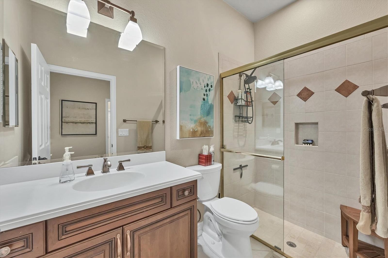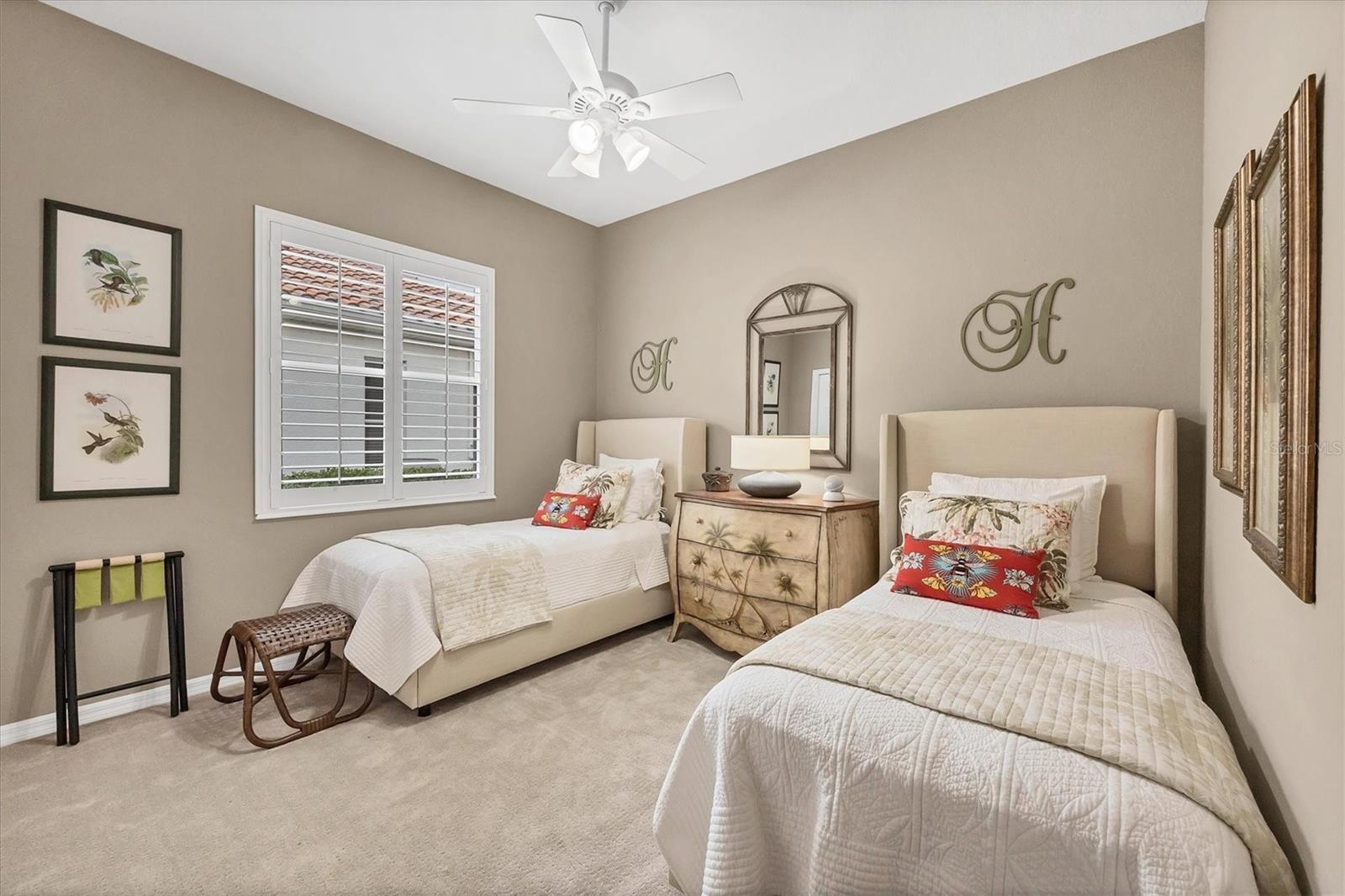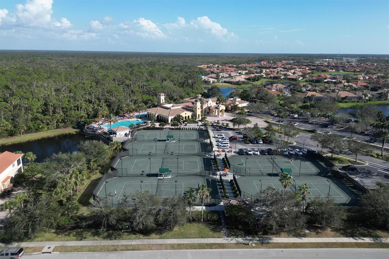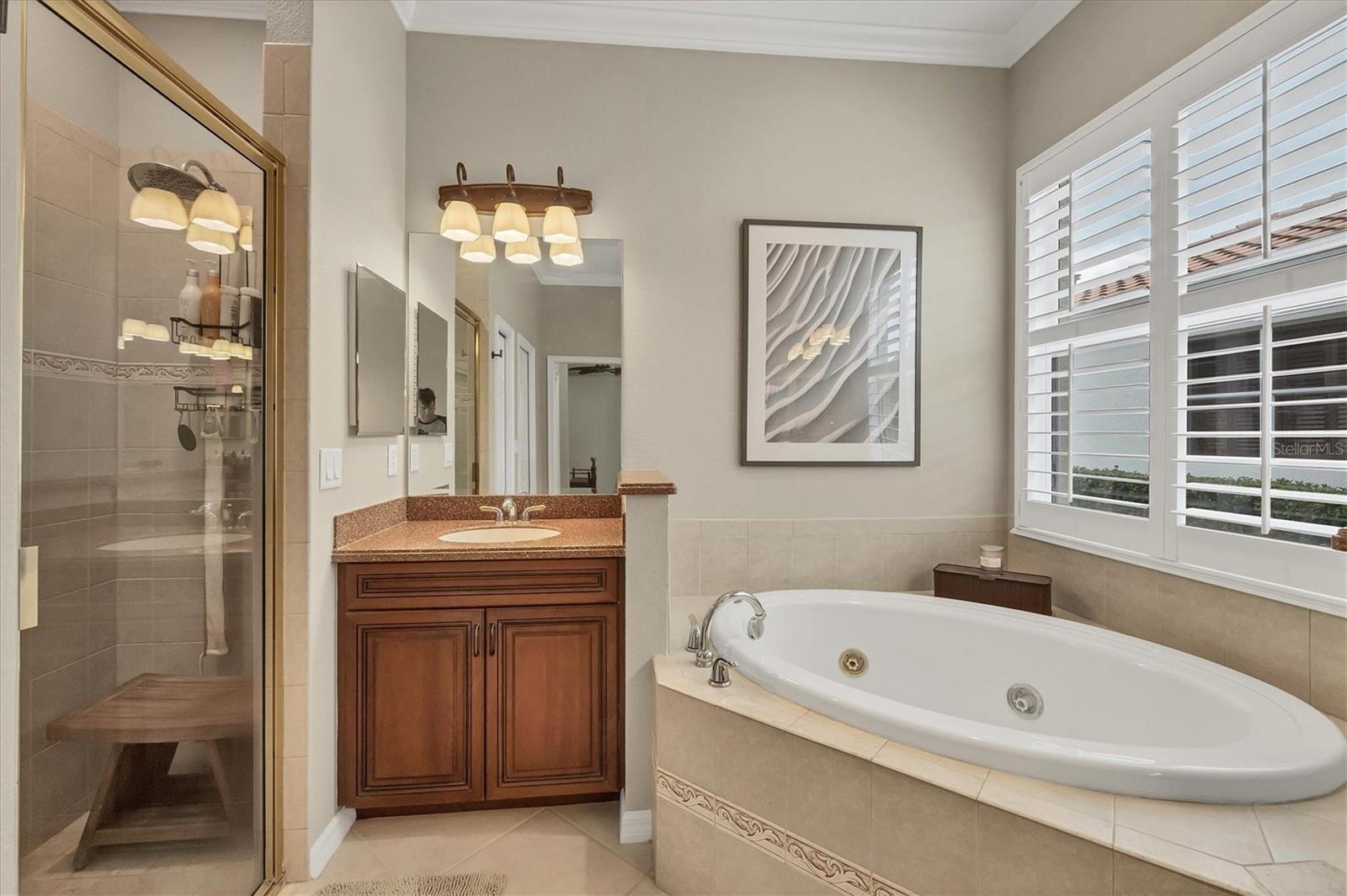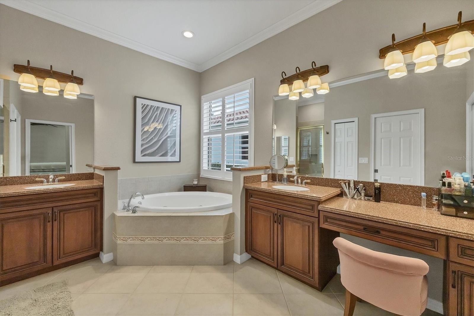 This one is a W-O-W and looks like a Model Home! Seller is offering a HOMEOWNER WARRANTY with Pool coverage! Sited on one of the most coveted lots in this UPSCALE and amenity-rich golf community, this home is impeccable, updated and move in ready! A quiet cul-de-sac location backing to water and the 13th hole (a great par 3; watch the golfers tee off!) ... what better place to call home! Upon entering, you'll sense a calm, soothing vibe as the fresh paint, neutral flooring, upgraded light fixtures and ceiling fans, and general decor exude an elegant coastal contemporary flair. The split Floor Plan is ideal with 3 beds, 2 baths, PLUS a Den, PLUS a "new" kitchen, PLUS a designer pool and dramatic firepit, PLUS a water view, PLUS a golf view! AND ... THE KITCHEN IS A SHOWSTOPPER WITH ALL THE BEST BELLS & WHISTLES -- Cafe appliances, frameless soft-close cabinetry, gorgeous quartz counter-height island, "coastal" backsplash, quartz countertops, 36" range, AND beverage center! The primary suite is large with beautiful new, neutral carpet, two closets (one, walk-in), views of the pool and golf course, and an ensuite bathroom, complete with split vanities, a separate shower, makeup vanity, soaking tub and private water closet. Bedrooms 2 and 3 are also spacious with beautiful neutral carpet, ceiling fans, and plentiful closet space. The living areas are open and comfortable with volume ceilings, and all eyes lead to the large, inviting, PRIVATE lanai, covered in gorgeous tumbled travertine flooring and a newly resurfaced pool with a COMPLETE OUTDOOR KITCHEN – the perfect spot to relax, share a bottle of wine, take a dip, or watch the golfers. The HOA fees cover basic cable, the guard-gated entry, exterior maintenance of the grounds, and all the extras of living in The Venetian -- clubhouse, fitness center, resort AND lap pool, tennis pickle ball, River Club dining, and awesome Riverwalk!