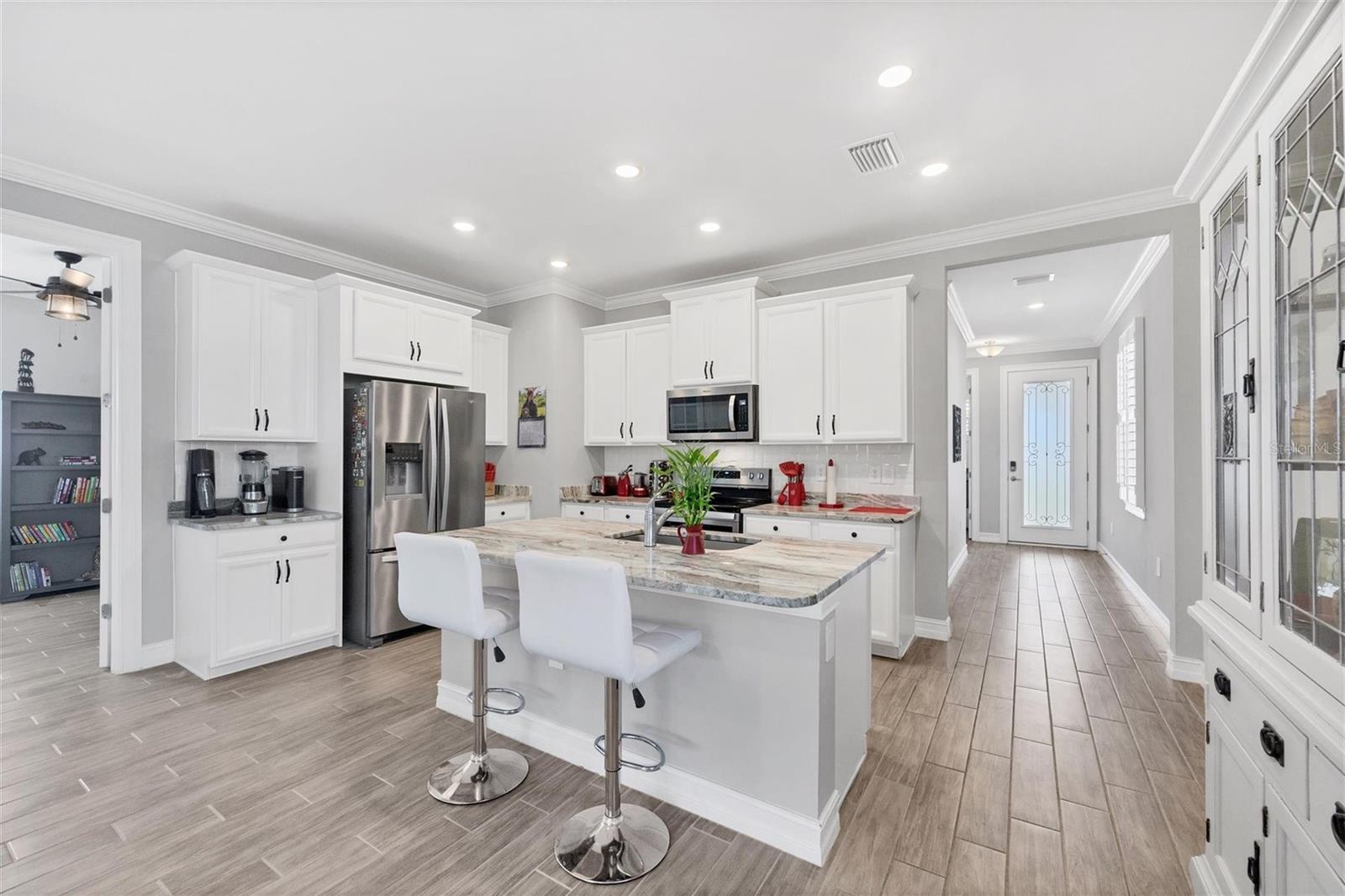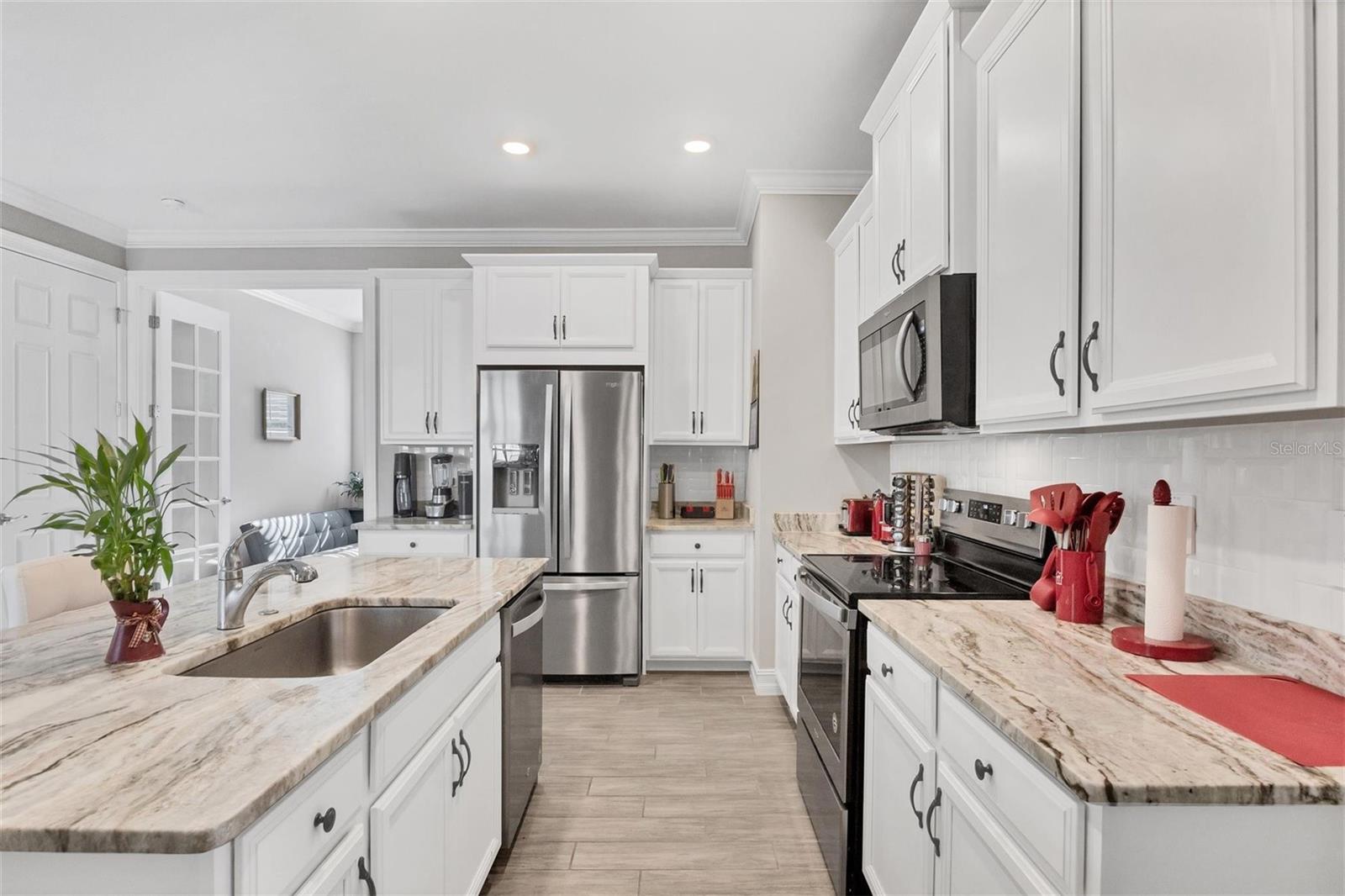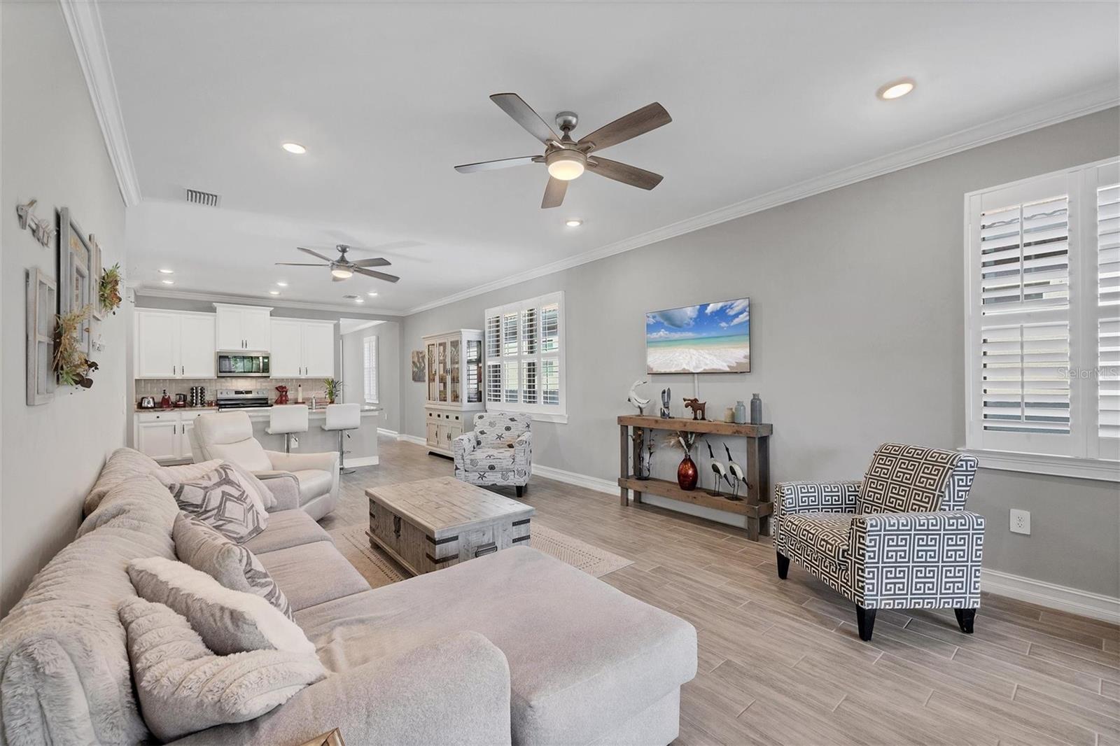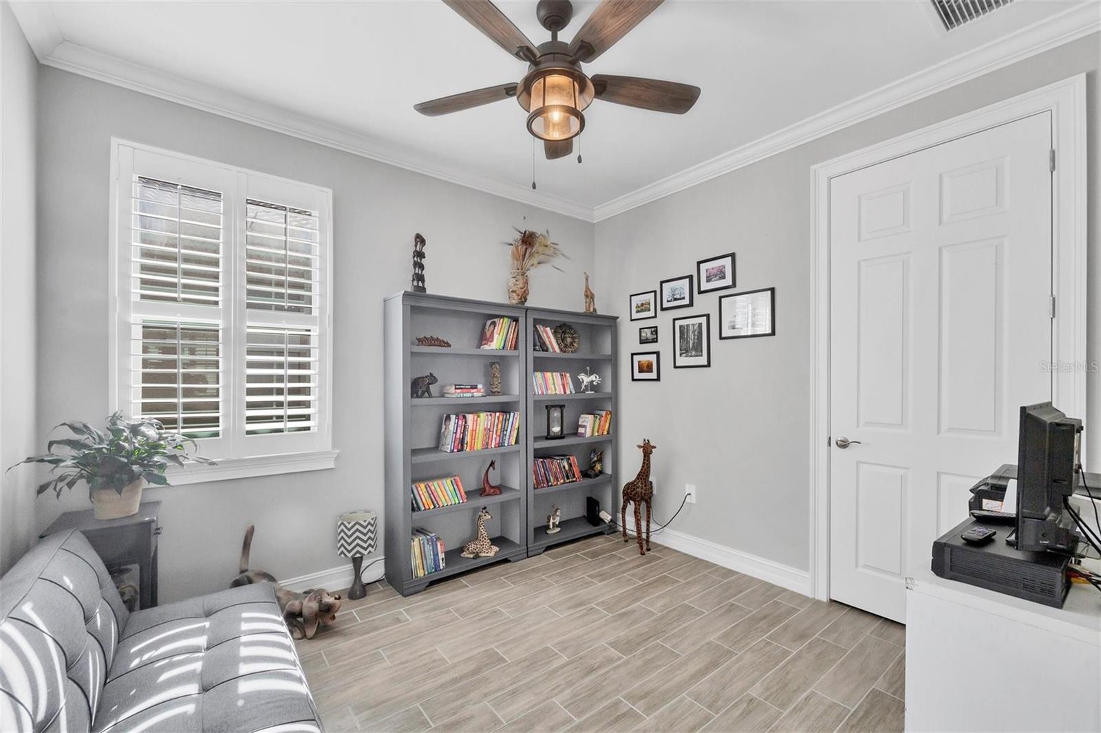 Price Improvement...Toscana Isles is resort community. It allows for an active lifestyle...this amenity rich neighborhood has an 8,000 sqft clubhouse, an infinity edge pool, fitness room, billiard room, tennis courts, pickleball courts, a dog park, and even a playground. It has something for everyone. The Jennings floorplan is 1614 sqft, includes two bedrooms, a den, and two bathrooms. The details like 9’ ceilings, wood look plank flooring throughout the home, plantation shutters, crown molding, 8’ interior doors … all enhance the appeal. The kitchen boasts granite countertops, custom backsplash, stainless steel appliances and plenty of countertop for a breakfast bar. The owner's suite offers a walk-in closet, custom bathroom with dual sinks and a walk-in shower. The guest bedroom and bathroom along with a versatile den complete the space. The exterior of the home includes a brick paver driveway, tile roof, a screened lanai with pavers and a fenced backyard. The community is perfectly situated between Sarasota and Venice allowing for the best of both cities.