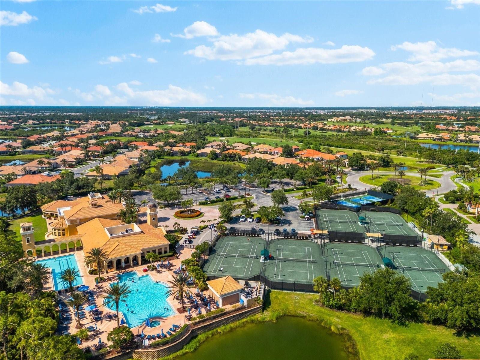 Enjoy MAINTENANCE-FREE living at its finest in the exquisite community of Venetian Golf and River Club! This property is located on the 6th fairway and offers spectacular GOLF COURSE VIEWS from the expansive screened-in patio, as well as LAKE VIEWS in front of the home. Upon entering, you will be greeted by an airy open-concept floor plan that showcases an abundance of natural light. Featuring 2 bedrooms, 2 bathrooms, and an oversized 2 car garage, this property has been meticulously maintained with NEW A/C installed in 2022 and Frigidaire washer and gas dryer in 2022. The master bedroom features 2 large walk-in closets and an en-suite bathroom with dual vanities and walk-in shower. Enjoy a wealth of first class amenities offered at Venetian Golf and River Club, including 2 resort style swimming pools with newly renovated cabana bar, state of the art fitness center and aerobics studio, tennis and pickleball courts, clubhouse, walking trails and scenic boardwalk through a 70-acre nature preserve with access to the Myakka River. OPTIONAL golf memberships are available for those who seek the ultimate country club experience. The Venetian Golf & River Club also features multiple restaurants within the gated community where you can enjoy both casual and fine dining options. Adding to the property’s appeal, you are within minutes to I-75 and US-41 and downtown Venice and the beaches are 15 min away!