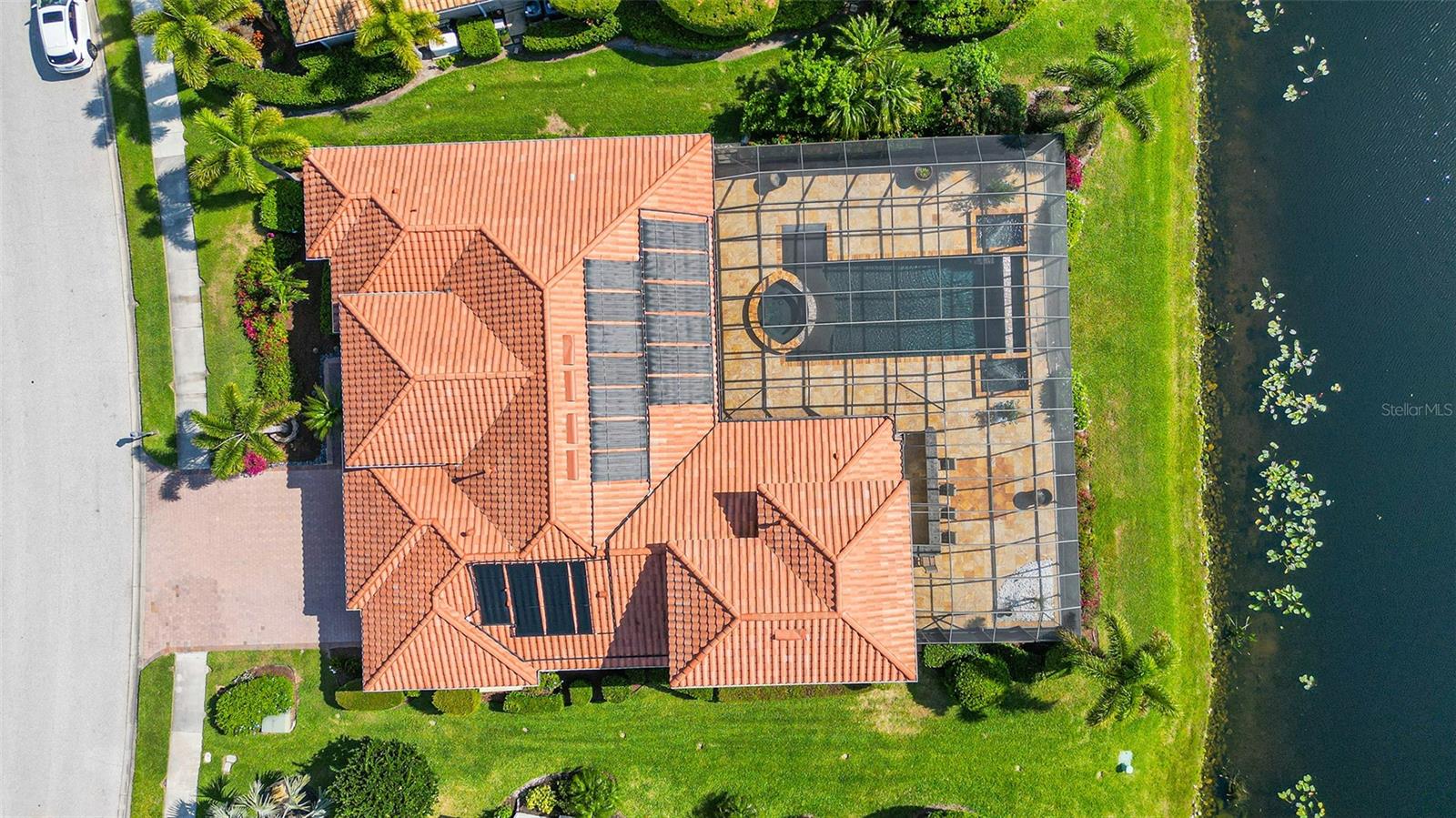 This is a WOW! You will ooh and ahh when you enter this elegant home. Prime lakefront lot with expansive views. The infinity saltwater pool literally flows into the lake and is heated with solar, gas & electric. The chef’s kitchen features granite counters, island, breakfast bar, eat-in kitchen area with aquarium window, 6 burner gas stove top, Advantium oven/microwave, convection oven and warming tray, separate ice maker, 42” side-by-side refrigerator, two Bosch dishwashers. All bedroom closets have custom wood shelving. Master bedroom offers an additional sitting/exercise area. Master bath boasts a Jacuzzi tub, dual shower heads, double sinks & tile accents. The Den/library has gorgeous wood built in book cases. You will enjoy all the columns, crown molding, high end ceiling fans, tray ceilings, central vac, beautiful wood flooring, plantation shutters, hurricane shutters or impact windows throughout plus a whole house Generac gas generator with warranty. Barn door separates 2 of the bedrooms and bath. Upgraded A/C unit with air scrubber, electronic Air filtration system, & UV Bulb. Omnilogic Pool control system plus an autofill system. Whole house power cleaner and surge protector. 3 car garage with epoxy coating will hold all your toys & overhead storage. 24/7 security guard at gate. The golf club membership is separate and not required. Including a heated pool, a lap pool, tennis courts, fitness courts, restaurant and boardwalk down to the river. CDD fee is included in the tax amount. Minutes to beaches shopping, banking, restaurants & more. Truly a must see.