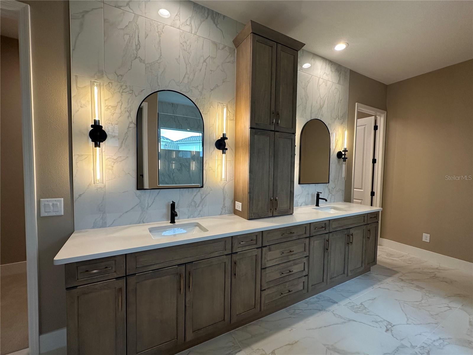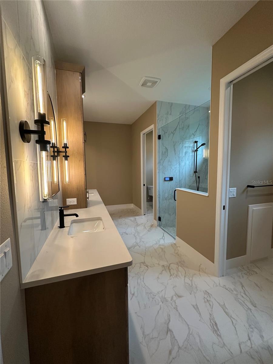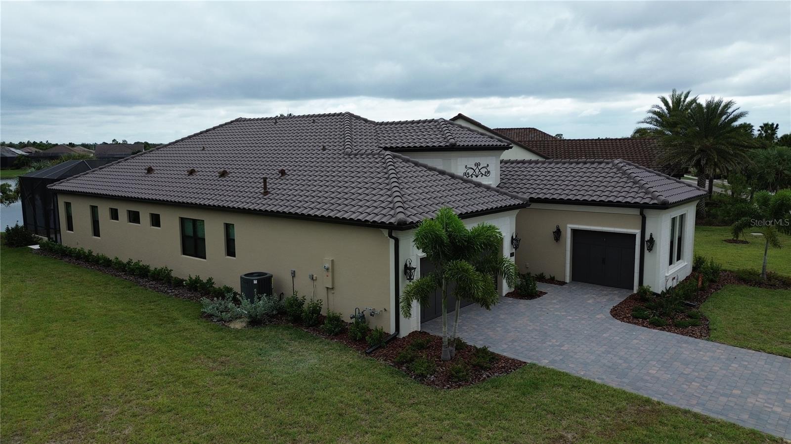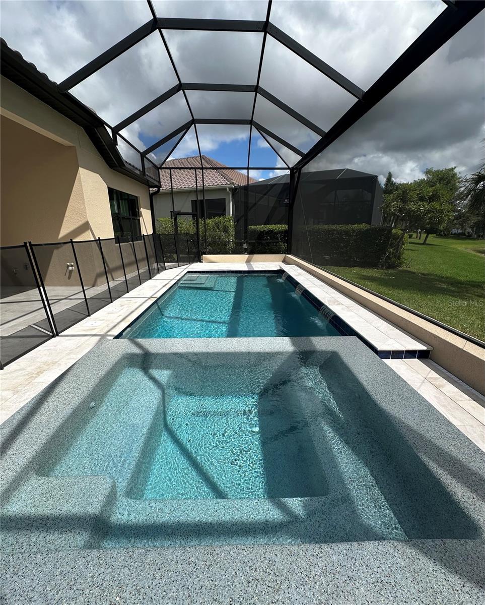 BRAND NEW beautiful Veneto 2 Neal Signature Home with lots of custom features and MOVE IN READY! Situated on oversized lot overlooking the pond and NO view of power lines, clubhouse is just a short walk away! This 3-bedroom, 4 bath, plus den/office home with over 2,700 sq.ft of luxurious living space! The Great Room has spectacular views of the pond, custom pool with negative edge spa and upgraded Italian-style pavers, picture-view screen to allow for unobstructed views. The gourmet kitchen features designer touches of arched doorways, stacked-custom cabinets 54”, GE Monogram appliances, with gas range and feature wall of Quartz backsplash to add a dramatic touch! The large center island with waterfall Quartz on both ends! Walk-in pantry, wet bar, and beverage refrigerator complete this space. The primary bedroom is uniquely designed for couples wanting their own space! Each has their own walk-in closet, toilet room, vanity is split with storage tower in between sinks (extra electrical inside cabinet), walk-in shower features spa-like shower with 2 heads and custom electronic temperature regulating feature. Two additional bedrooms with en-suite bathrooms, offering extra comfort and privacy for family or guests. A custom “drop-zone” is located just off the garage in the upgraded Laundry Room. This room features beautiful tile floors, blue custom cabinets and accent tile backsplash. Wood floors, crown molding, accent ceilings painted and window coverings. A 3-car garage gives you that extra storage space everyone needs.