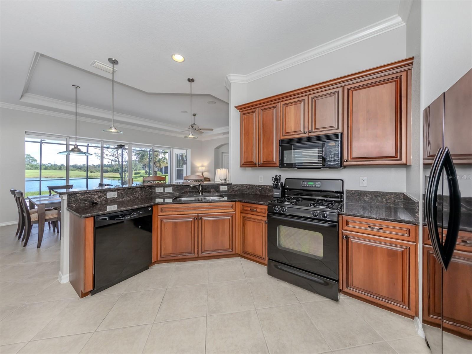 This stunning WCI-built home offers a picturesque view from your waterfront lot, overlooking the 13th green. Located in the maintenance-free section of Cipriani, this beautiful residence features 3 bedrooms, 2 baths, and an inviting great room that seamlessly connects with the lovely kitchen plus a wall of sliders leading to lanai and beyond. TURN-KEY FURNISHED! The kitchen boasts gas appliances, a breakfast bar, and plenty of natural light to fill the room while offering serene water views. The owner's suite is a true retreat, with captivating lake views. The en-suite bathroom includes a separate shower, walk-in closet, dual sinks, and a private water closet, creating a perfect blend of luxury and comfort. Additionally, you have two guest rooms. Upgrades of this home include freshly painted interior including the lanai, new gas water heater, newer appliances. All of this is situated in the Venetian Golf and River a gated golfing community with a resort style and lap pool, fine dining, tennis and pickle ball courts, a championship golf course , and a fitness center plus so much more. Just a few miles to downtown Venice shopping, restaurants, beaches, bike paths, the new Sarasota Memorial Hospital and state of the art medical facilities. Come and enjoy all this home offers !