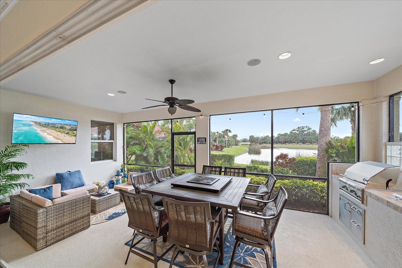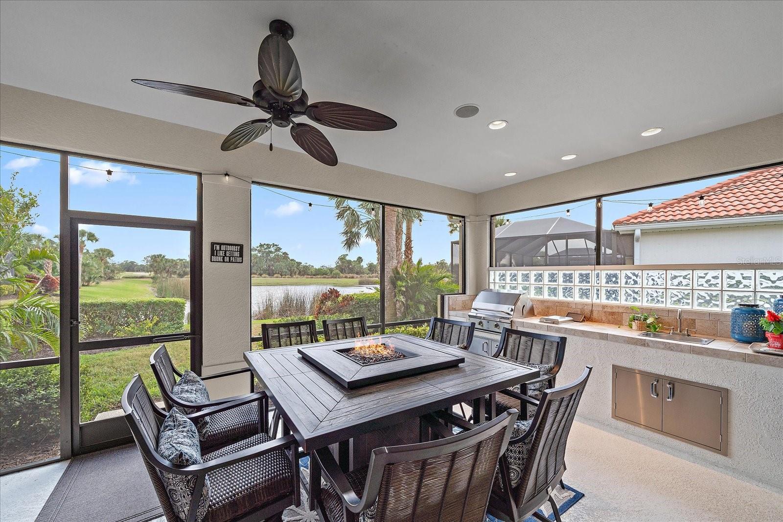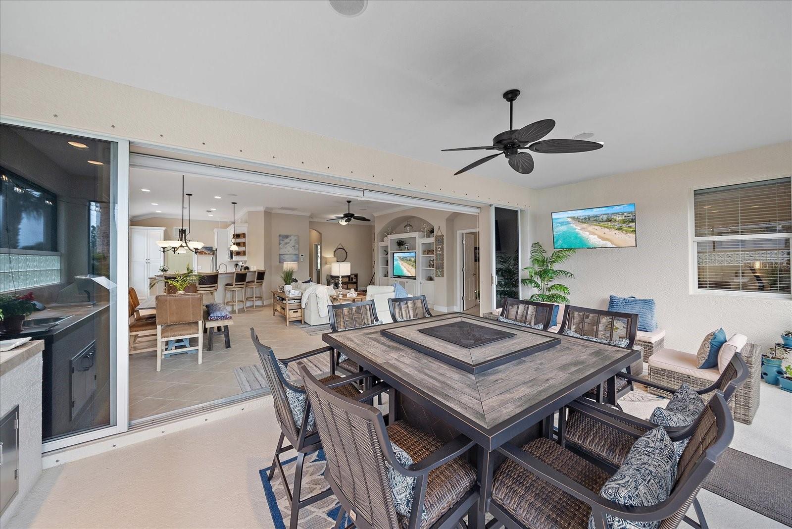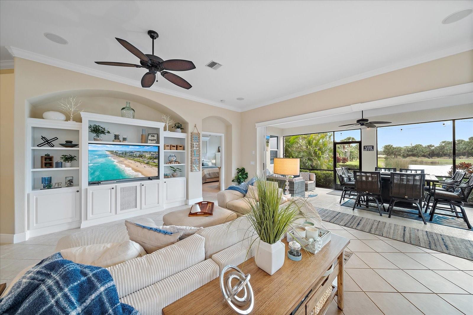 TURNKEY - FULLY FURNISHED! WATERVIEW! Enjoy the ultimate Florida resort-lifestyle in this meticulously maintained home full of luxury details and upgrades, hurricane impact windows, and dreamy indoor/outdoor living with one of the best views in the community on a premium oversized lot. This Donatello WCI built home located in the Venetian Golf & River Club features open, modern living areas with an 18 foot wall of glass sliders that open to amazing views from the large lanai that faces west for incredible sunsets and colorful sky. Lush landscaping provides fantastic privacy while allowing panoramic views of water, preserve, and the golf course across the water. Maintenance Free Neighborhood. This impeccable 3 bedroom 2 bath home with 2.5 car garage floor plan was built to maximize space with an extended great room, dining area, lanai, owner’s suite and garage. Comes beautifully furnished and features high-end stainless steel gas stove and appliances, cabinetry with roll-out drawers, granite countertops, crown molding, large outdoor kitchen, landscape lighting, epoxy flooring in the garage, smartlocks, newer A/C and gas water heater w/ circulation system. This home was lovingly cared for and boasts many upgrades throughout which enhance the living experience. From a whole house GE water filtration system, to individual filters under all the sinks and upgraded hardware throughout, including on the doors, custom closets, case moldings on all windows, custom light fixtures and baseboards as well as built-ins. It’s the little things that make this home feel luxurious so you can just relax in comfort while enjoying the good life. Venetian Golf & River Club is a premier gated community with full amenities set among a peaceful, mature nature setting with 70 acres of nature preserve in the community and many trails, including a serene boardwalk. All residents are members of the River Club, a 20,000 square foot clubhouse that includes a restaurant and bar, wellness center with fitness room and classes, tennis and pickleball facilities, swimming pool and tiki bar. Membership to the 18-hole championship golf course is optional, and the Golf Club has its own grand building with proshop, locker rooms, dining options and practice facilities.