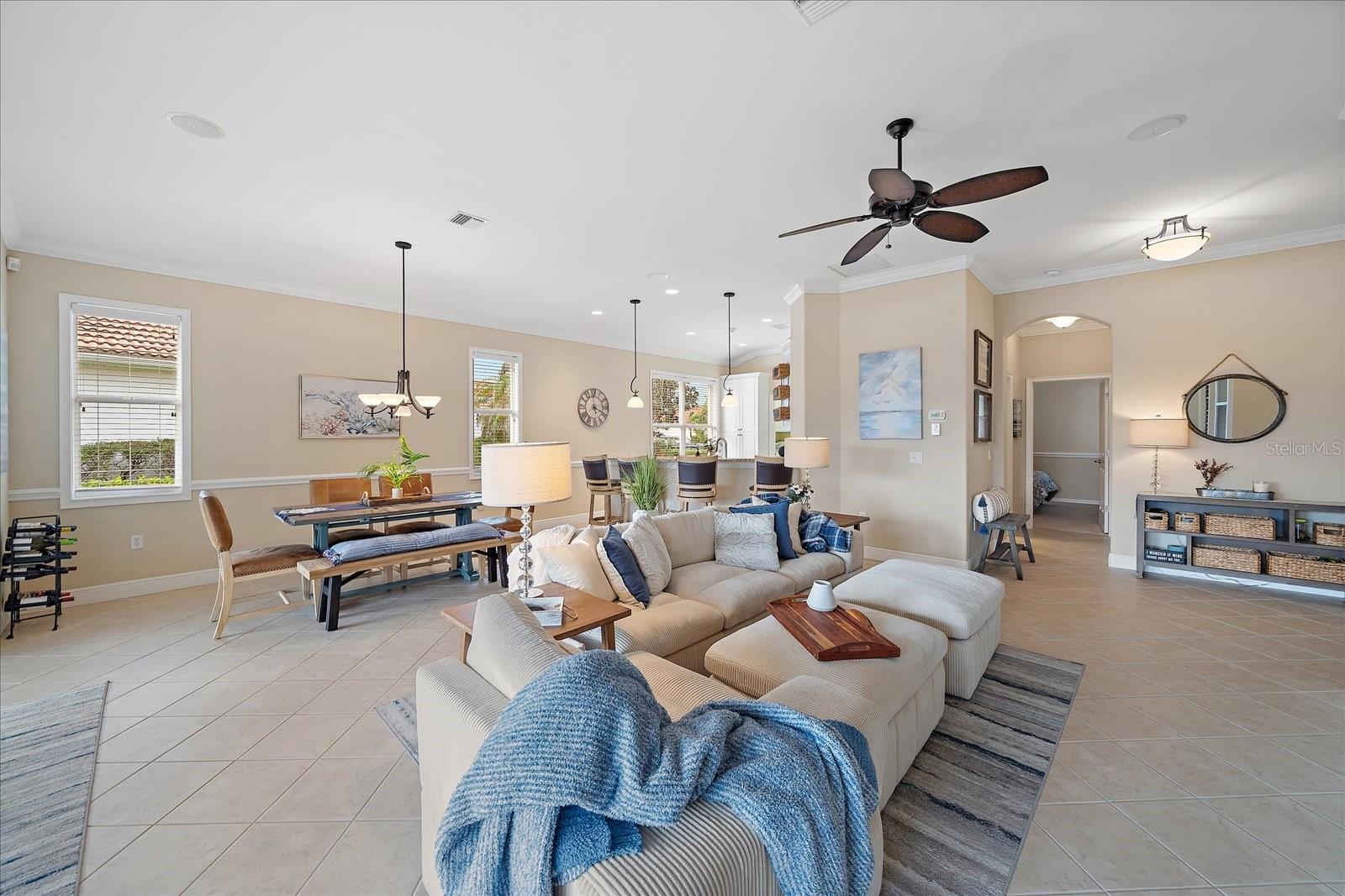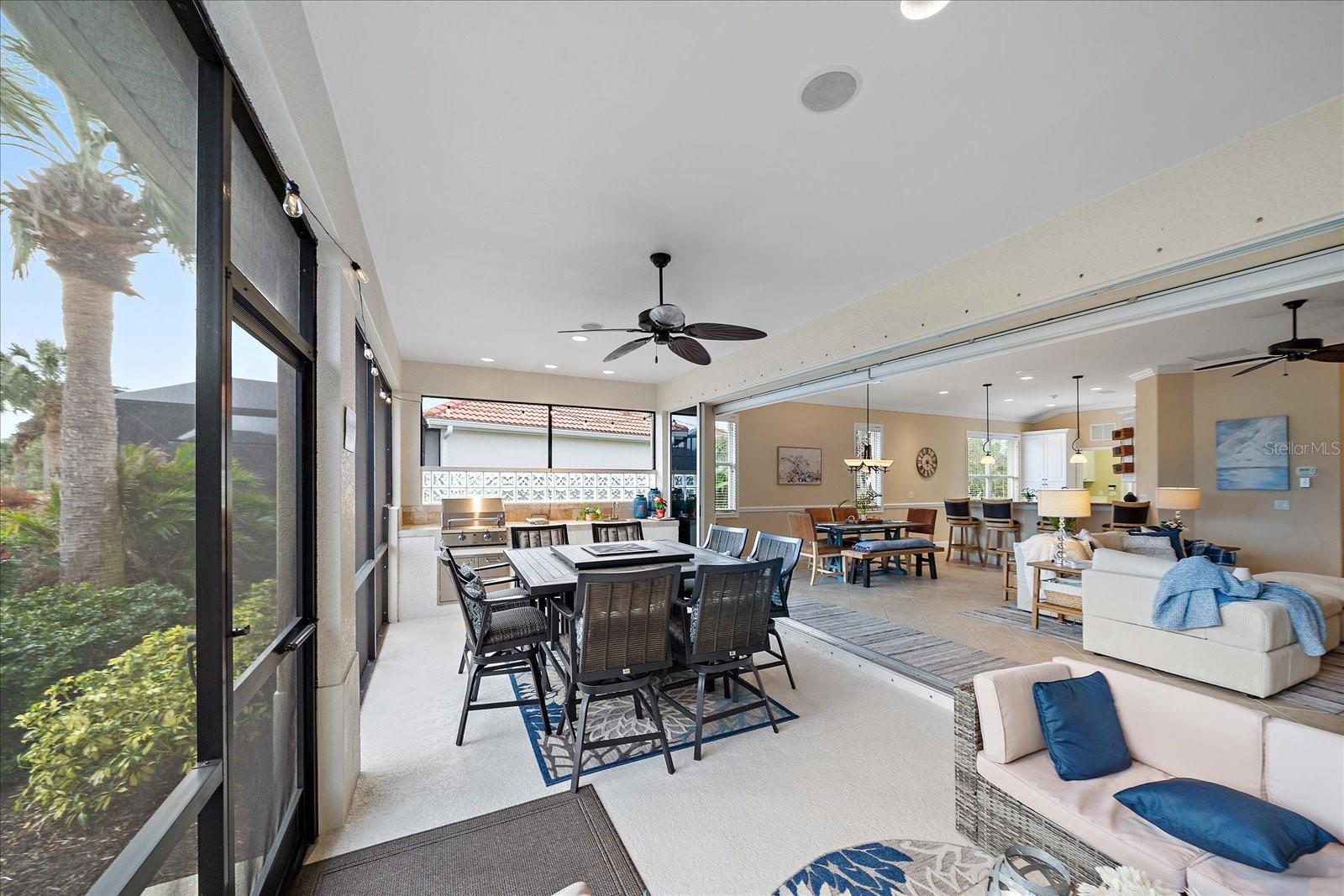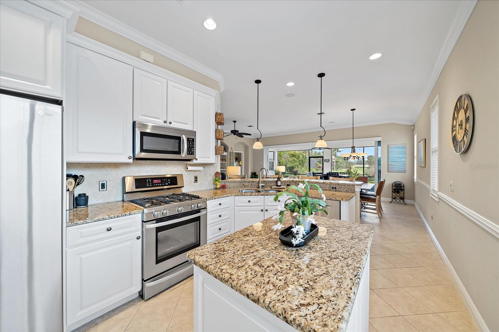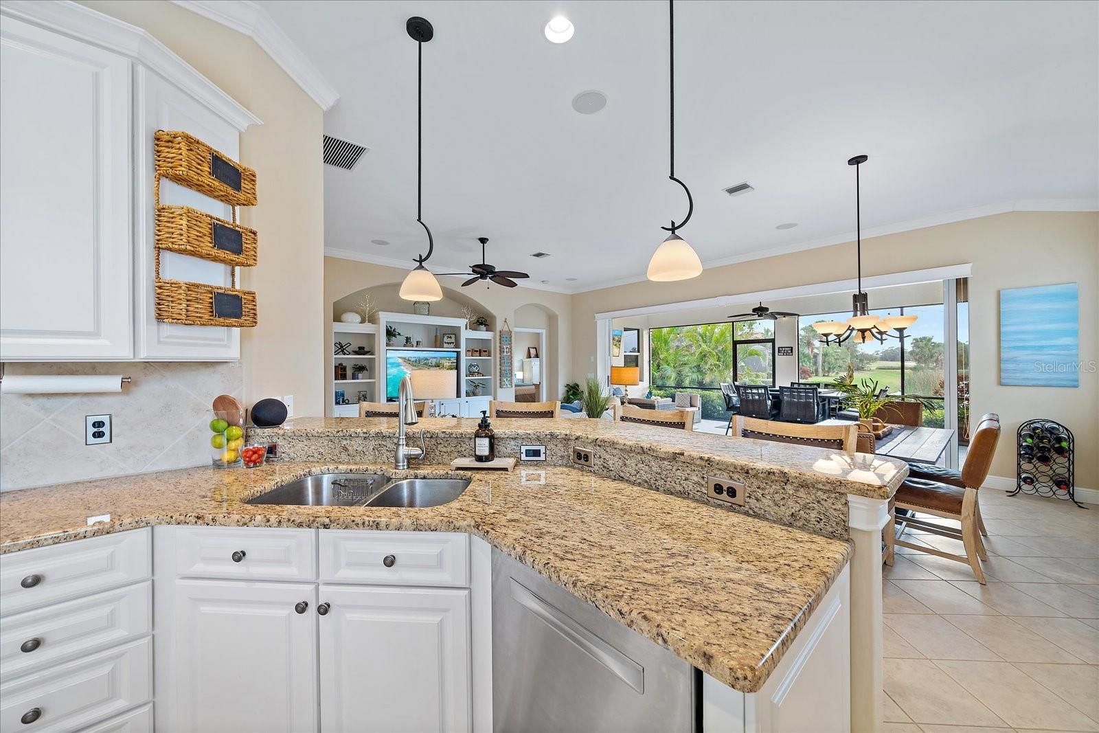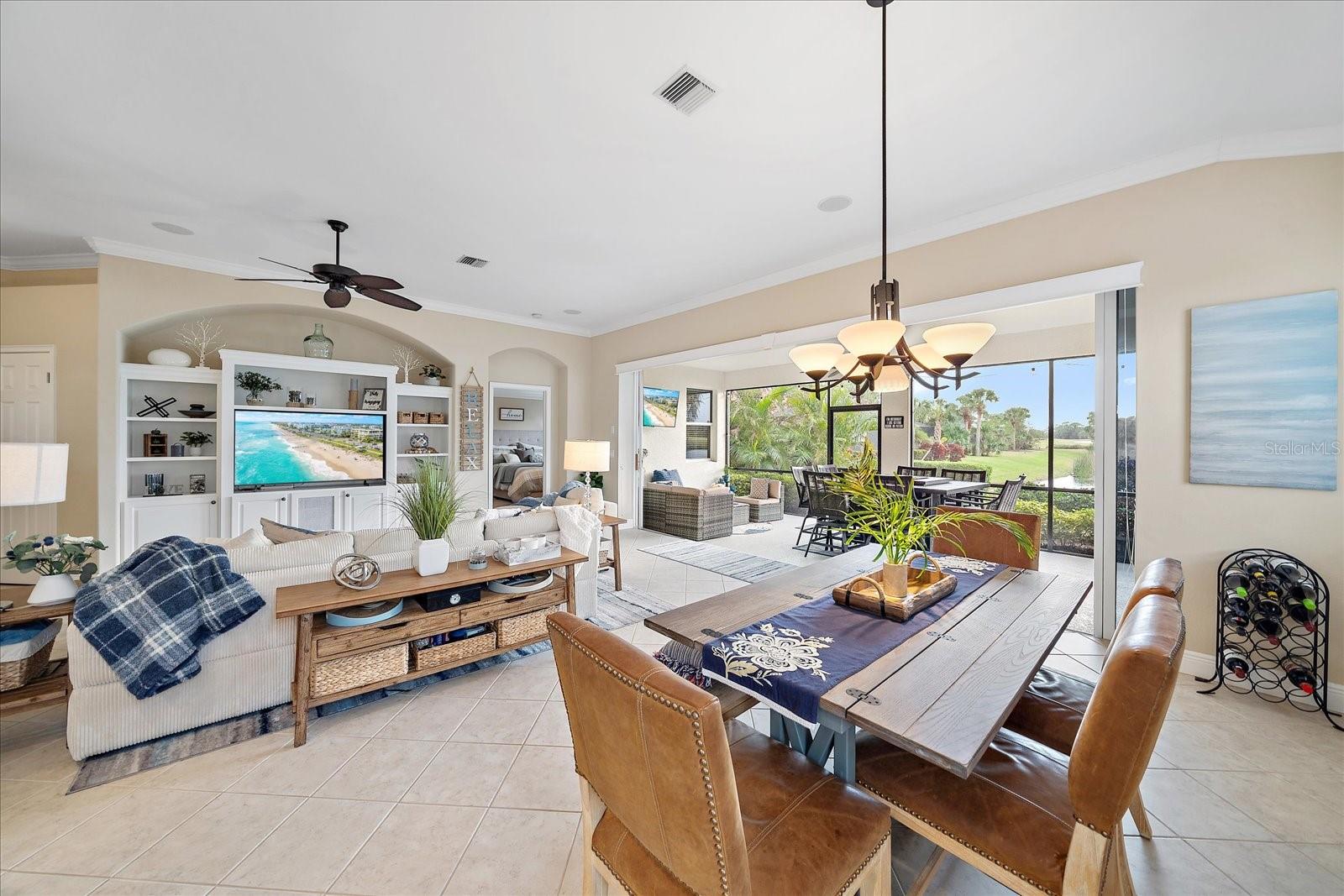 TURNKEY - FULLY FURNISHED! WATERVIEW! Enjoy the ultimate Florida resort-lifestyle in this meticulously maintained home full of luxury details and upgrades, hurricane impact windows, and dreamy indoor/outdoor living with one of the best views in the community on a premium oversized lot. This Donatello WCI built home located in the Venetian Golf & River Club features open, modern living areas with an 18 foot wall of glass sliders that open to amazing views from the large lanai that faces west for incredible sunsets and colorful sky. Lush landscaping provides fantastic privacy while allowing panoramic views of water, preserve, and the golf course across the water. Maintenance Free Neighborhood. This impeccable 3 bedroom 2 bath home with 2.5 car garage floor plan was built to maximize space with an extended great room, dining area, lanai, owner’s suite and garage. Comes beautifully furnished and features high-end stainless steel gas stove and appliances, cabinetry with roll-out drawers, granite countertops, crown molding, large outdoor kitchen, landscape lighting, epoxy flooring in the garage, smartlocks, newer A/C and gas water heater w/ circulation system. This home was lovingly cared for and boasts many upgrades throughout which enhance the living experience. From a whole house GE water filtration system, to individual filters under all the sinks and upgraded hardware throughout, including on the doors, custom closets, case moldings on all windows, custom light fixtures and baseboards as well as built-ins. It’s the little things that make this home feel luxurious so you can just relax in comfort while enjoying the good life. Venetian Golf & River Club is a premier gated community with full amenities set among a peaceful, mature nature setting with 70 acres of nature preserve in the community and many trails, including a serene boardwalk. All residents are members of the River Club, a 20,000 square foot clubhouse that includes a restaurant and bar, wellness center with fitness room and classes, tennis and pickleball facilities, swimming pool and tiki bar. Membership to the 18-hole championship golf course is optional, and the Golf Club has its own grand building with proshop, locker rooms, dining options and practice facilities.