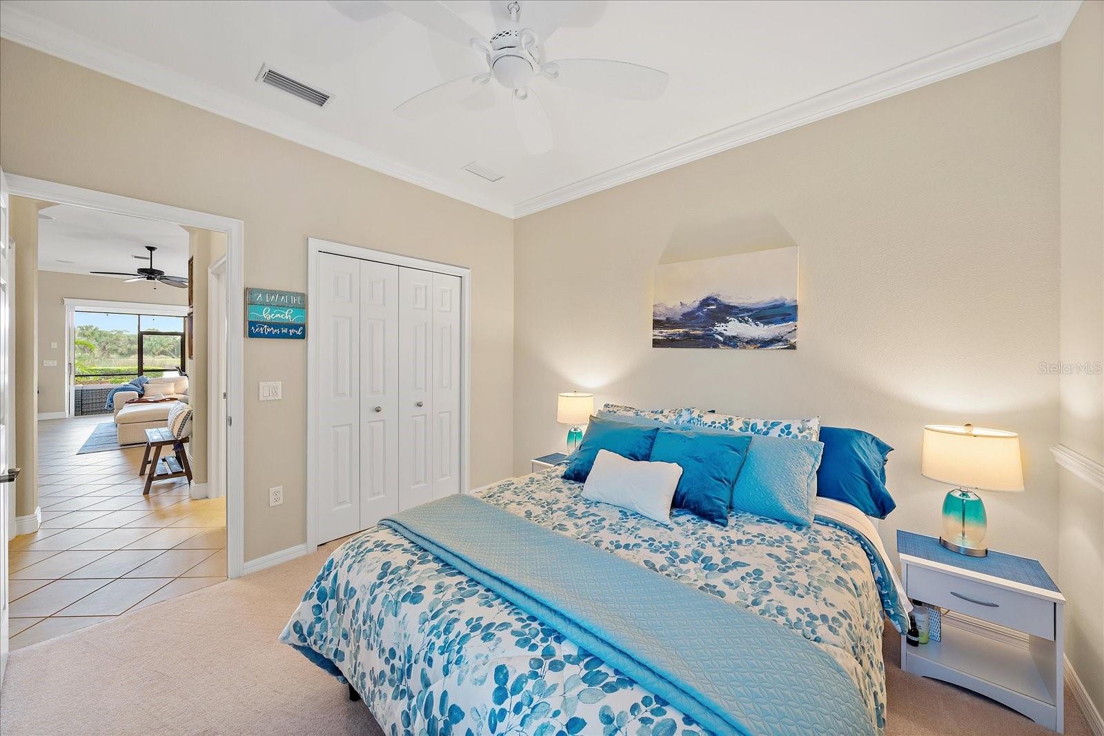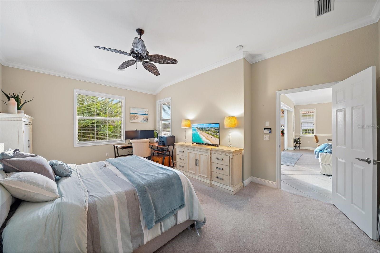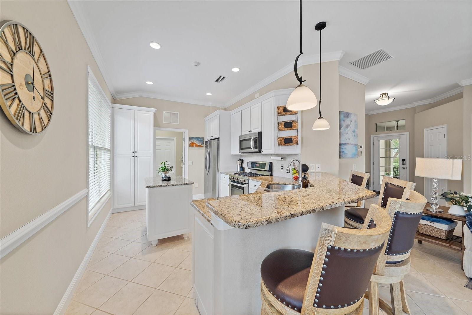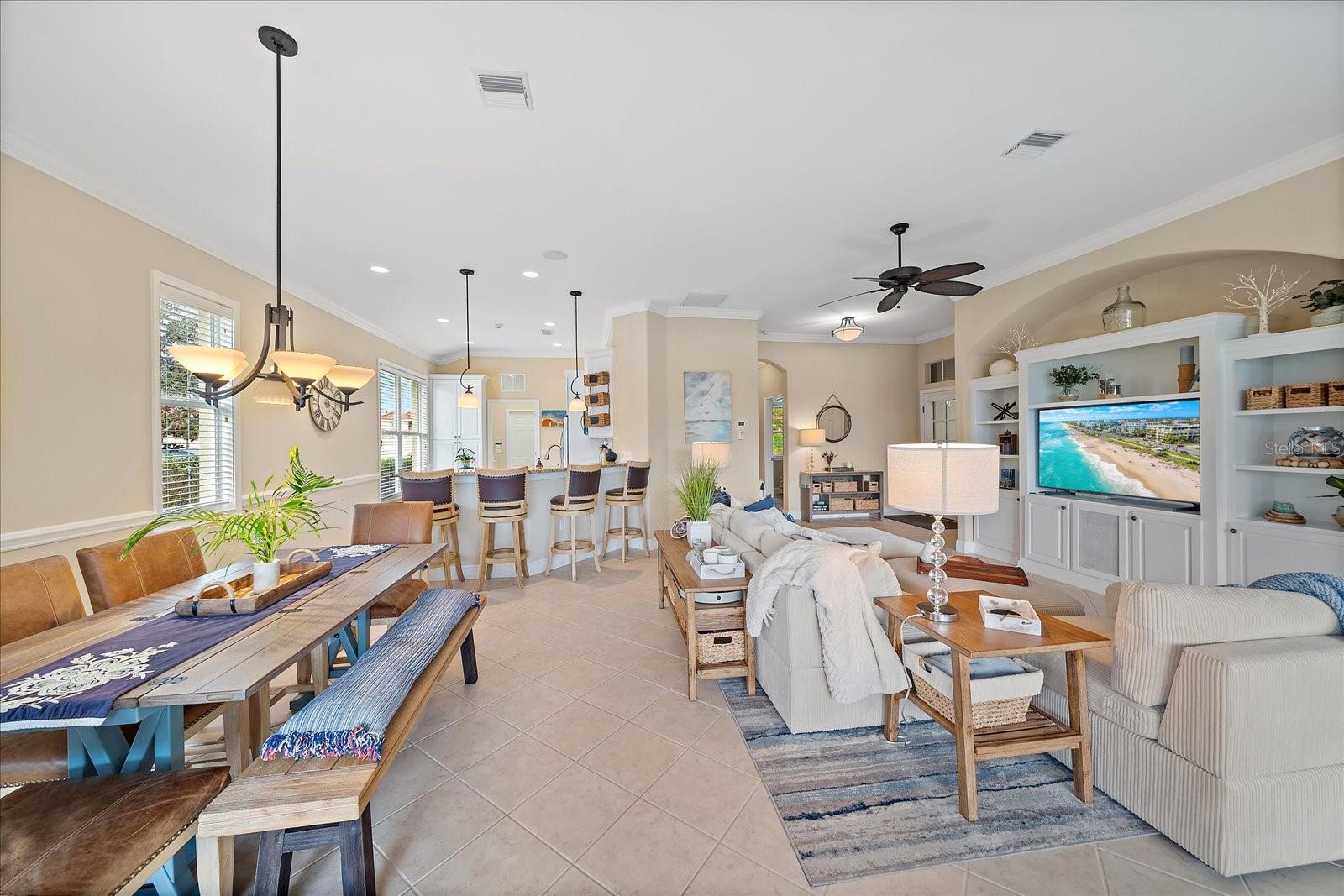 TURNKEY - FULLY FURNISHED! WATERVIEW! Enjoy the ultimate Florida resort-lifestyle in this meticulously maintained home full of luxury details and upgrades, hurricane impact windows, and dreamy indoor/outdoor living with one of the best views in the community on a premium oversized lot. This Donatello WCI built home located in the Venetian Golf & River Club features open, modern living areas with an 18 foot wall of glass sliders that open to amazing views from the large lanai that faces west for incredible sunsets and colorful sky. Lush landscaping provides fantastic privacy while allowing panoramic views of water, preserve, and the golf course across the water. Maintenance Free Neighborhood. This impeccable 3 bedroom 2 bath home with 2.5 car garage floor plan was built to maximize space with an extended great room, dining area, lanai, owner’s suite and garage. Comes beautifully furnished and features high-end stainless steel gas stove and appliances, cabinetry with roll-out drawers, granite countertops, crown molding, large outdoor kitchen, landscape lighting, epoxy flooring in the garage, smartlocks, newer A/C and gas water heater w/ circulation system. This home was lovingly cared for and boasts many upgrades throughout which enhance the living experience. From a whole house GE water filtration system, to individual filters under all the sinks and upgraded hardware throughout, including on the doors, custom closets, case moldings on all windows, custom light fixtures and baseboards as well as built-ins. It’s the little things that make this home feel luxurious so you can just relax in comfort while enjoying the good life. Venetian Golf & River Club is a premier gated community with full amenities set among a peaceful, mature nature setting with 70 acres of nature preserve in the community and many trails, including a serene boardwalk. All residents are members of the River Club, a 20,000 square foot clubhouse that includes a restaurant and bar, wellness center with fitness room and classes, tennis and pickleball facilities, swimming pool and tiki bar. Membership to the 18-hole championship golf course is optional, and the Golf Club has its own grand building with proshop, locker rooms, dining options and practice facilities.