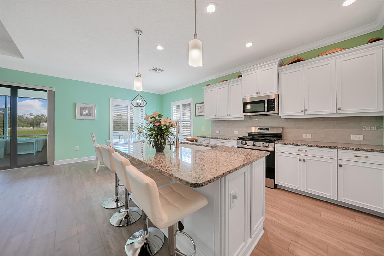 Built in 2024, this BEAUTIFUL Home w/a pond view is a MUST SEE in the desirable Community of Vicenza in Venice, FL! NO FLOOD ZONE & NO CDD! The "Brilliance" floorplan design by Neal Communities, offers 2,084sq. ft. of "SPACIOUS" living space, 3-bedroom 2.5-bath with a den and 3-car garage. A true cook's kitchen with granite countertops, stainless steel appliances, walk-in pantry, cabinet storage, tile back splash, natural gas stove, and large center island for entertaining! The kitchen is open to the Dinette area and Great Room with pocket sliding doors leading to your screened lanai overlooking the serene pond! You will love the owner's suite which features an en-suite bath with two closets, including a walk-in, dual-sinks, private water closet, and a partial-glass enclosed walk-in tile shower. Why wait to build?!? Additional Upgrades: LVP Floor throughout; Hurricane Impact Glass throughout; appliances, Whole House Generator, rough-in for outdoor kitchen, plantation shutters, and so much more! Enjoy the Neal lifestyle that Vicenza offers in this "Gated Community" with nature preserves, walking-trails, community pool, pickle ball, and dog park! Located only minutes away from Venice's beautiful beaches, historic downtown, shopping, restaurants, and so much more! Sit back, relax, and enjoy the peace & tranquility while enjoying the Florida sunshine!(back exposure E and front exposure W) Live the Florida lifestyle & make this your home! OWN A PIECE OF PARADISE! Check out 3D Virtual Tour #1 & Video #2