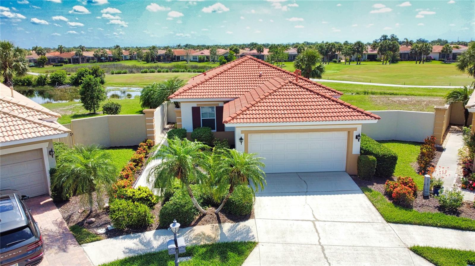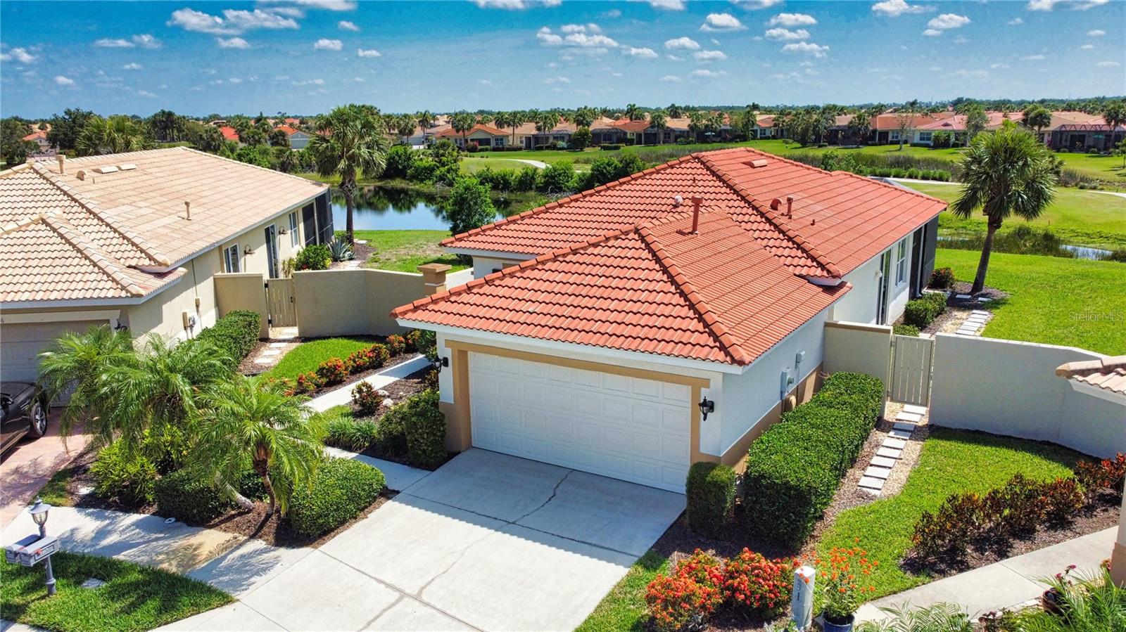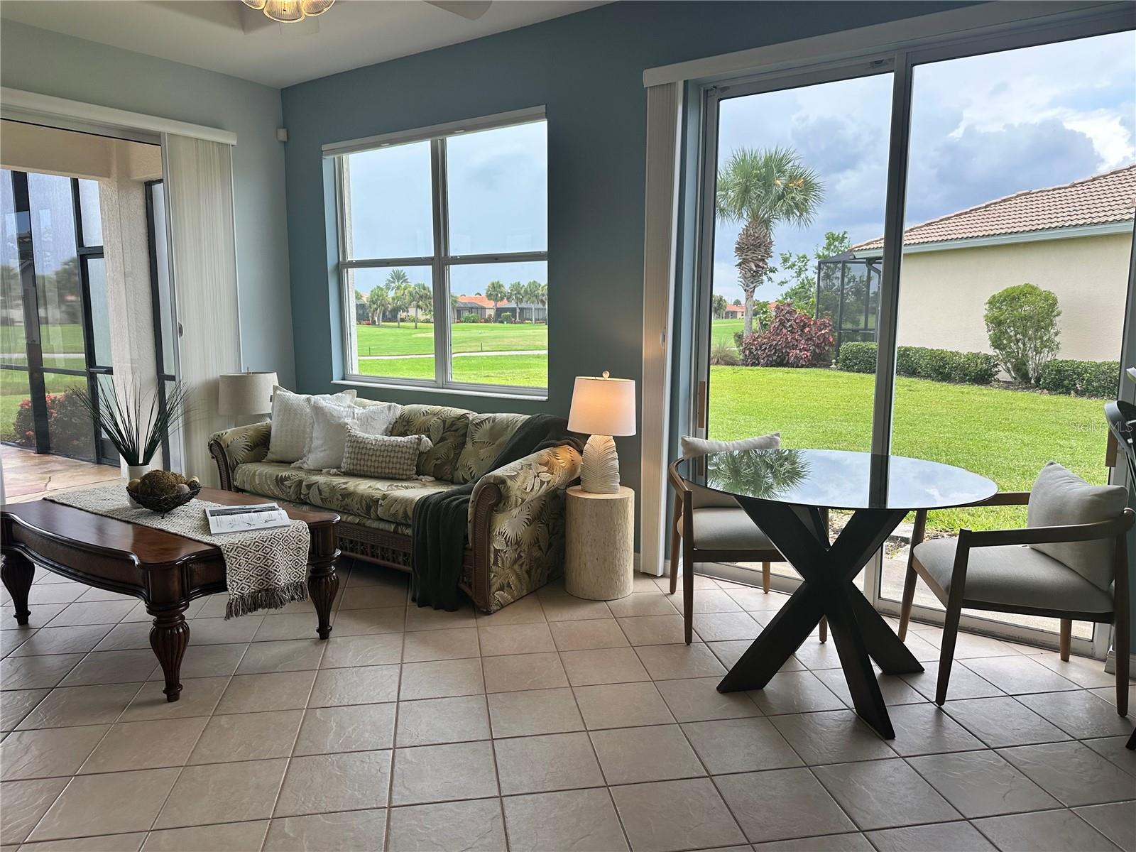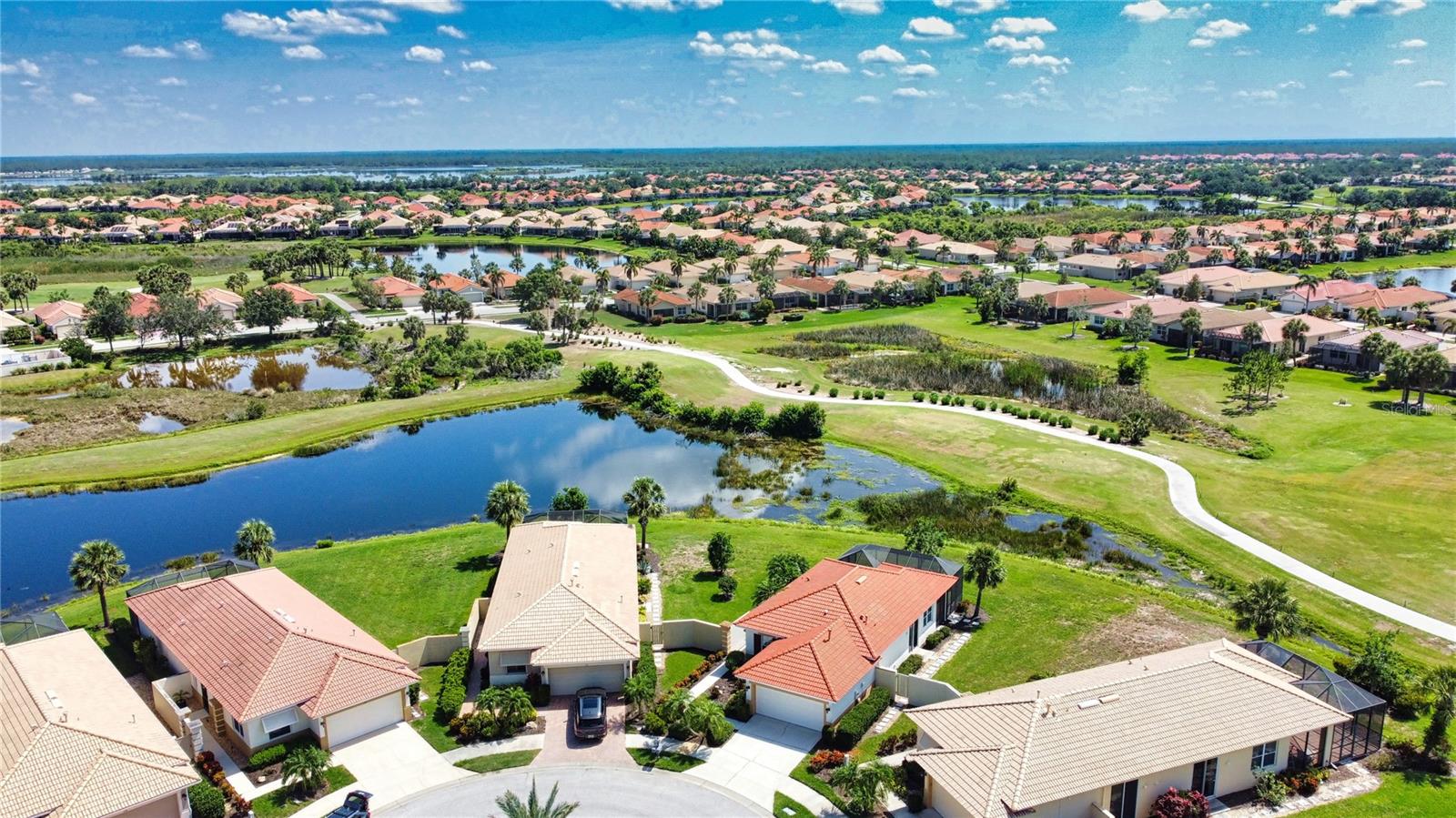 Welcome to a lifestyle of elegance and tranquility in the prestigious, gated community of the Venetian Golf & River Club. Perfectly positioned on a private cul-de-sac, this exceptional residence offers sweeping water and 7th fairway views from an expansive, pie-shaped lot—providing rare privacy and picturesque surroundings. Step inside to discover a bright and airy open-concept floor plan, thoughtfully designed for both comfort and sophistication. The home maintenance free home comes turnkey furnished and features two spacious bedrooms, each with its own en suite bath, and a two-car garage. A serene, neutral color palette complements the coastal aesthetic, with beach-toned tile flooring and white cabinetry throughout the gourmet kitchen. Entertain or unwind on the recently re-screened and extended lanai, where you can sip morning coffee or evening cocktails while overlooking the tranquil water and lush fairway—an idyllic setting for enjoying nature and the serene rhythm of golf course living. Most furnishings are included, offering a seamless move-in experience. Residents of this resort-style, maintenance-free community enjoy a wealth of luxury amenities. The River Club boasts a state-of-the-art fitness center, aerobics studio, resort-style pool with newly renovated cabana bar, hot tub, and lap pool. Enjoy fine dining at the elegant River Club dining room, or casual gatherings at the Mediterranean-inspired golf clubhouse with its Grille Room and second-floor veranda overlooking the 18th green. Additional community highlights include six Har-Tru tennis courts, planned pickleball courts, a scenic boardwalk through a 70-acre nature preserve along the Myakka River, and the added convenience of included cable and internet services. Optional golf membership is available for those who seek the ultimate country club experience. Ideally located between Venice and Sarasota, with easy access to I-75 and just minutes from world-class beaches, shopping, dining, and spring training baseball, this is Florida living at its finest.