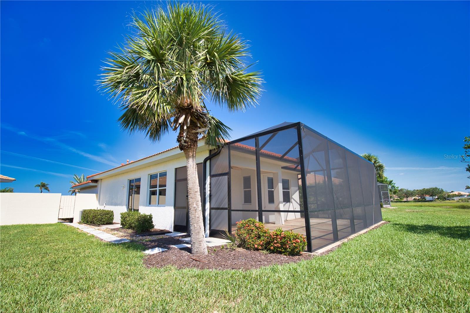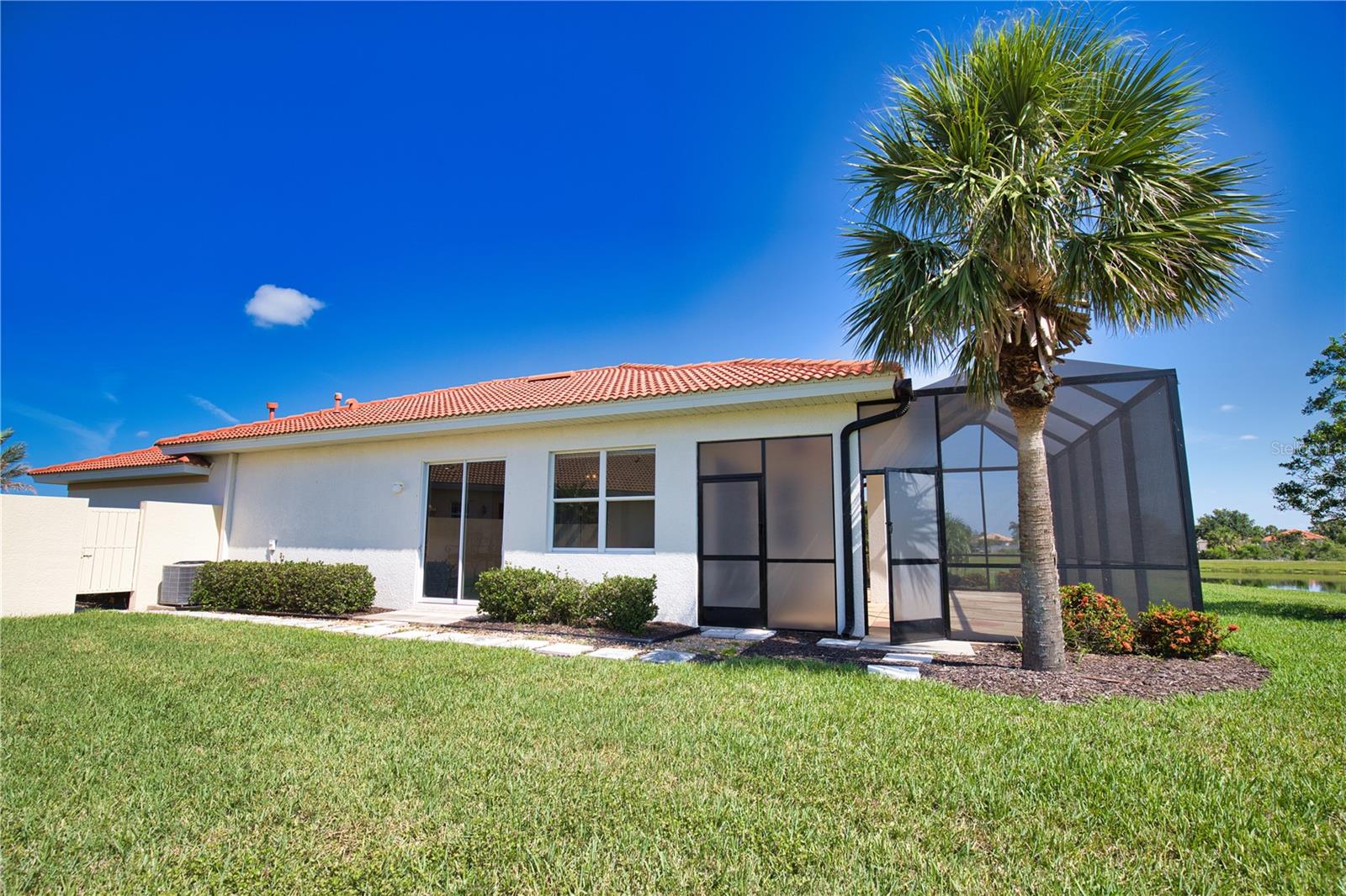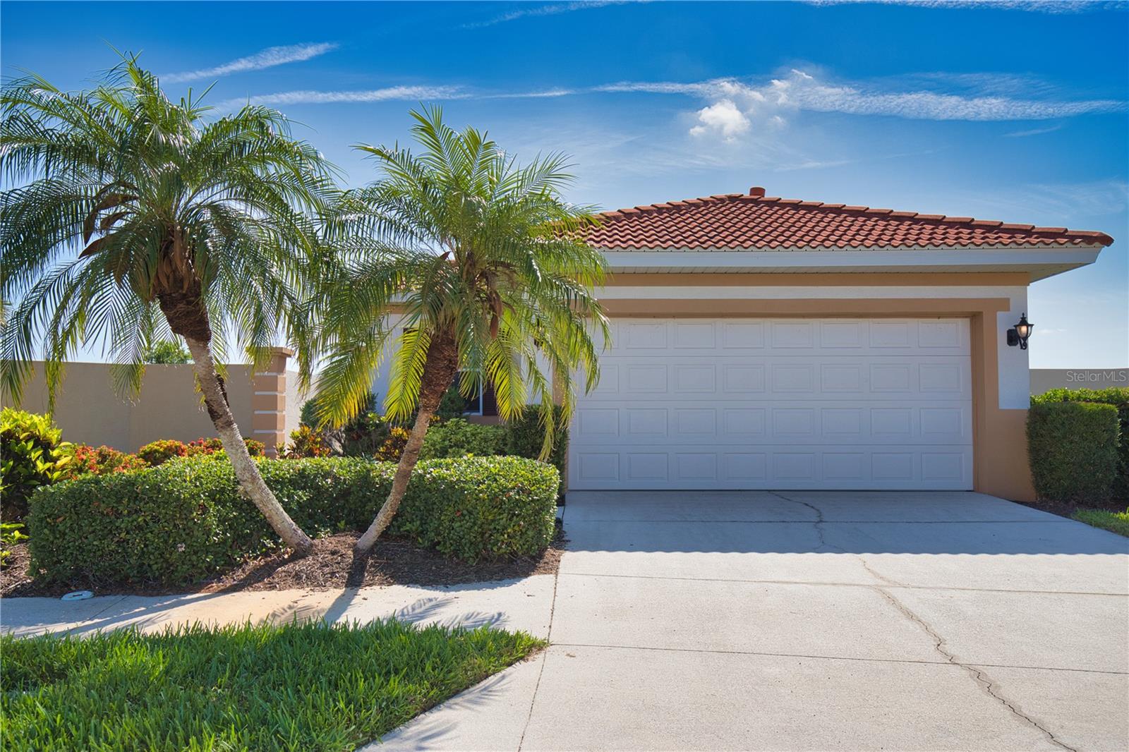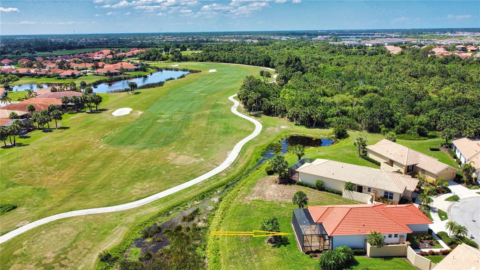 Welcome to a lifestyle of elegance and tranquility in the prestigious, gated community of the Venetian Golf & River Club. Perfectly positioned on a private cul-de-sac, this exceptional residence offers sweeping water and 7th fairway views from an expansive, pie-shaped lot—providing rare privacy and picturesque surroundings. Step inside to discover a bright and airy open-concept floor plan, thoughtfully designed for both comfort and sophistication. The home maintenance free home comes turnkey furnished and features two spacious bedrooms, each with its own en suite bath, and a two-car garage. A serene, neutral color palette complements the coastal aesthetic, with beach-toned tile flooring and white cabinetry throughout the gourmet kitchen. Entertain or unwind on the recently re-screened and extended lanai, where you can sip morning coffee or evening cocktails while overlooking the tranquil water and lush fairway—an idyllic setting for enjoying nature and the serene rhythm of golf course living. Most furnishings are included, offering a seamless move-in experience. Residents of this resort-style, maintenance-free community enjoy a wealth of luxury amenities. The River Club boasts a state-of-the-art fitness center, aerobics studio, resort-style pool with newly renovated cabana bar, hot tub, and lap pool. Enjoy fine dining at the elegant River Club dining room, or casual gatherings at the Mediterranean-inspired golf clubhouse with its Grille Room and second-floor veranda overlooking the 18th green. Additional community highlights include six Har-Tru tennis courts, planned pickleball courts, a scenic boardwalk through a 70-acre nature preserve along the Myakka River, and the added convenience of included cable and internet services. Optional golf membership is available for those who seek the ultimate country club experience. Ideally located between Venice and Sarasota, with easy access to I-75 and just minutes from world-class beaches, shopping, dining, and spring training baseball, this is Florida living at its finest.