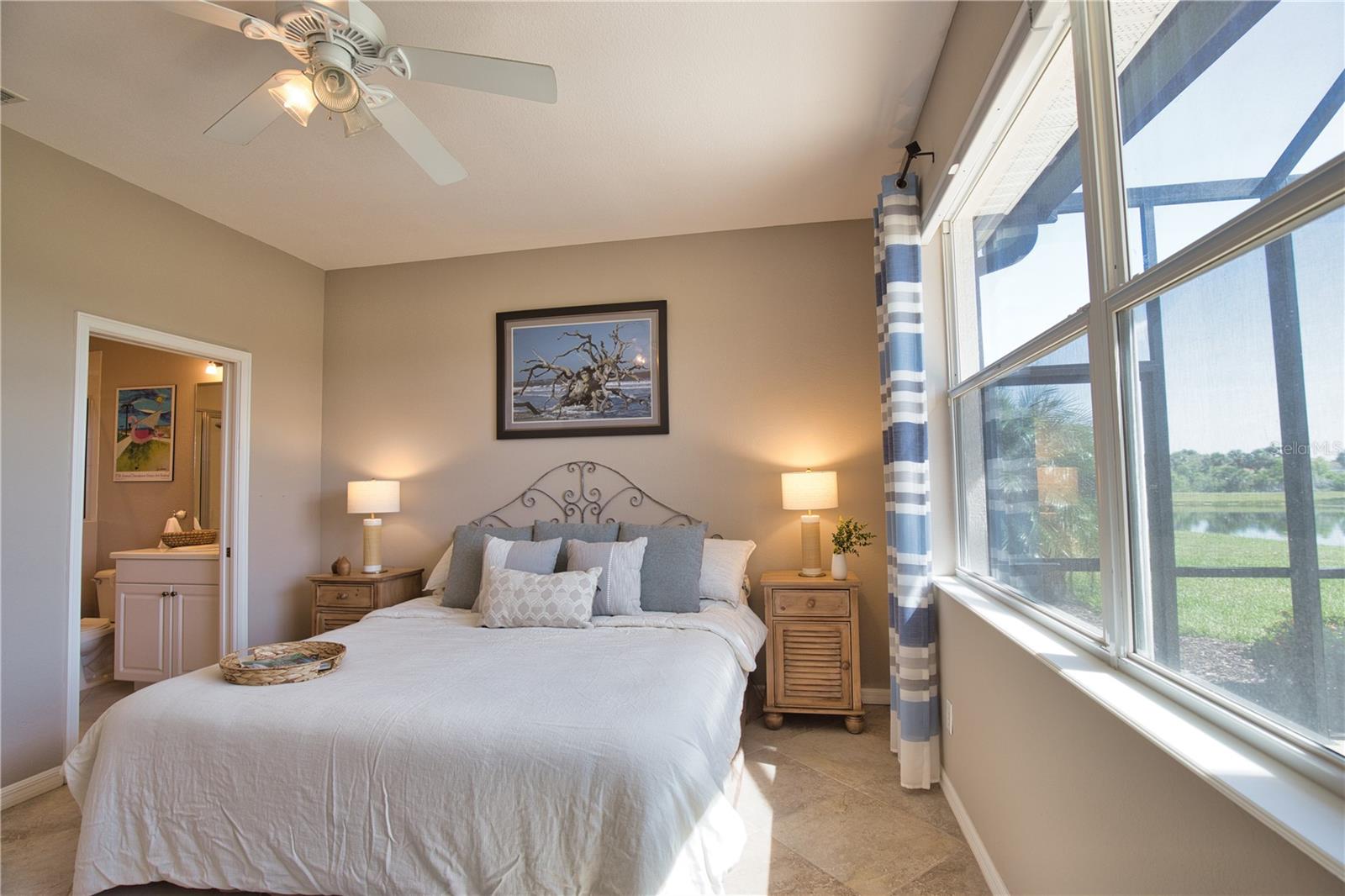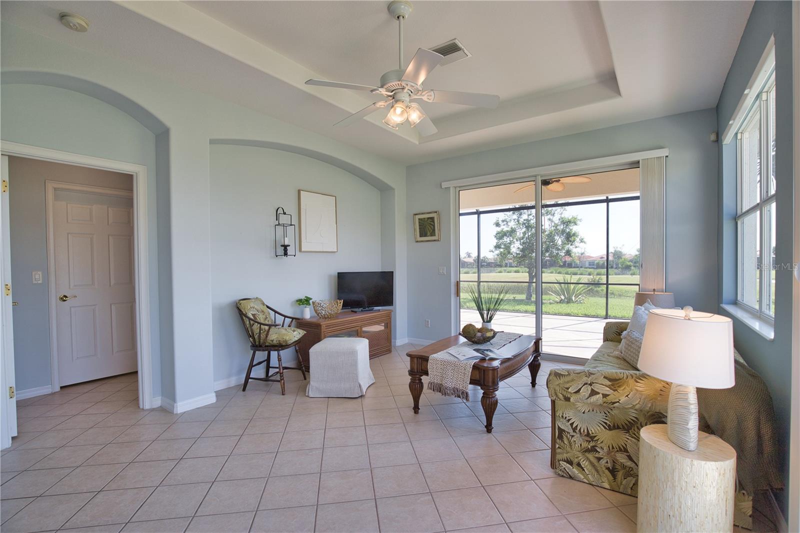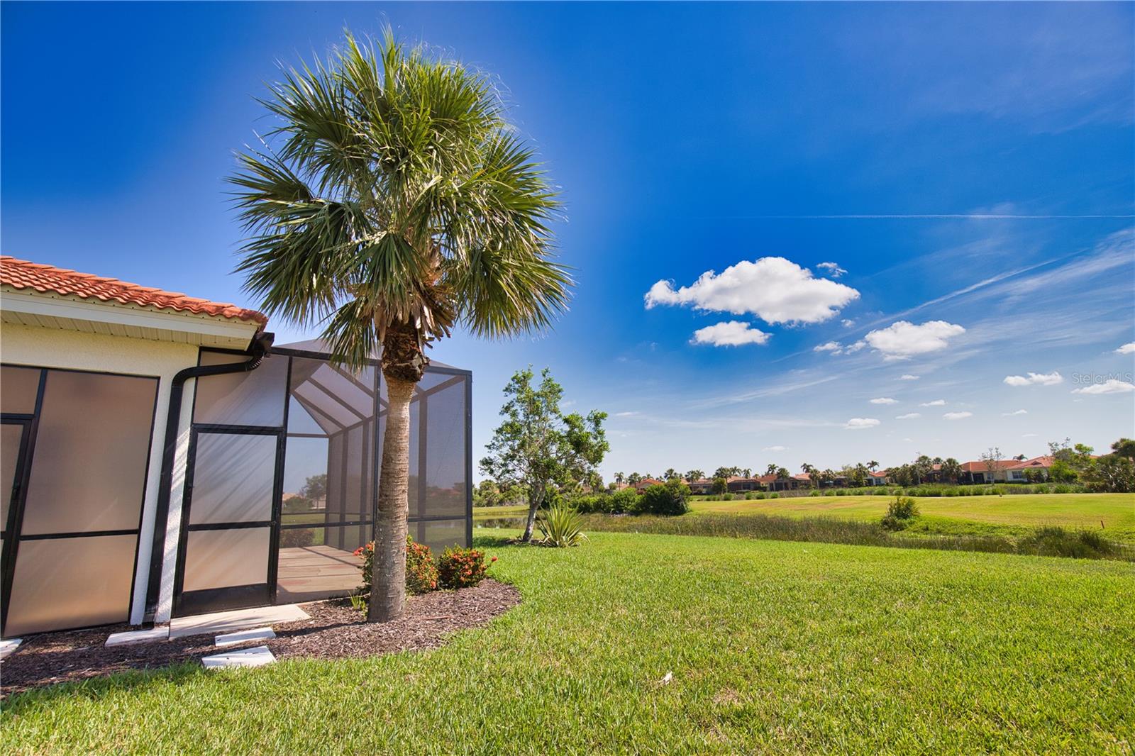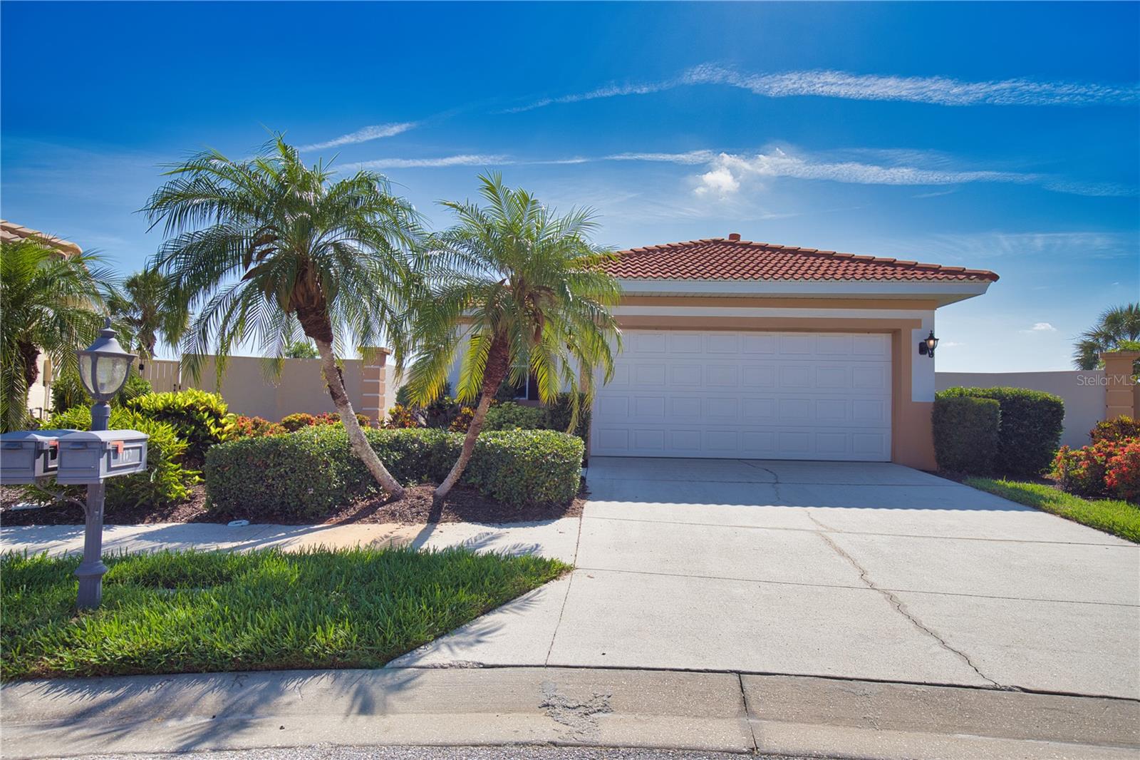 Welcome to a lifestyle of elegance and tranquility in the prestigious, gated community of the Venetian Golf & River Club. Perfectly positioned on a private cul-de-sac, this exceptional residence offers sweeping water and 7th fairway views from an expansive, pie-shaped lot—providing rare privacy and picturesque surroundings. Step inside to discover a bright and airy open-concept floor plan, thoughtfully designed for both comfort and sophistication. The home maintenance free home comes turnkey furnished and features two spacious bedrooms, each with its own en suite bath, and a two-car garage. A serene, neutral color palette complements the coastal aesthetic, with beach-toned tile flooring and white cabinetry throughout the gourmet kitchen. Entertain or unwind on the recently re-screened and extended lanai, where you can sip morning coffee or evening cocktails while overlooking the tranquil water and lush fairway—an idyllic setting for enjoying nature and the serene rhythm of golf course living. Most furnishings are included, offering a seamless move-in experience. Residents of this resort-style, maintenance-free community enjoy a wealth of luxury amenities. The River Club boasts a state-of-the-art fitness center, aerobics studio, resort-style pool with newly renovated cabana bar, hot tub, and lap pool. Enjoy fine dining at the elegant River Club dining room, or casual gatherings at the Mediterranean-inspired golf clubhouse with its Grille Room and second-floor veranda overlooking the 18th green. Additional community highlights include six Har-Tru tennis courts, planned pickleball courts, a scenic boardwalk through a 70-acre nature preserve along the Myakka River, and the added convenience of included cable and internet services. Optional golf membership is available for those who seek the ultimate country club experience. Ideally located between Venice and Sarasota, with easy access to I-75 and just minutes from world-class beaches, shopping, dining, and spring training baseball, this is Florida living at its finest.