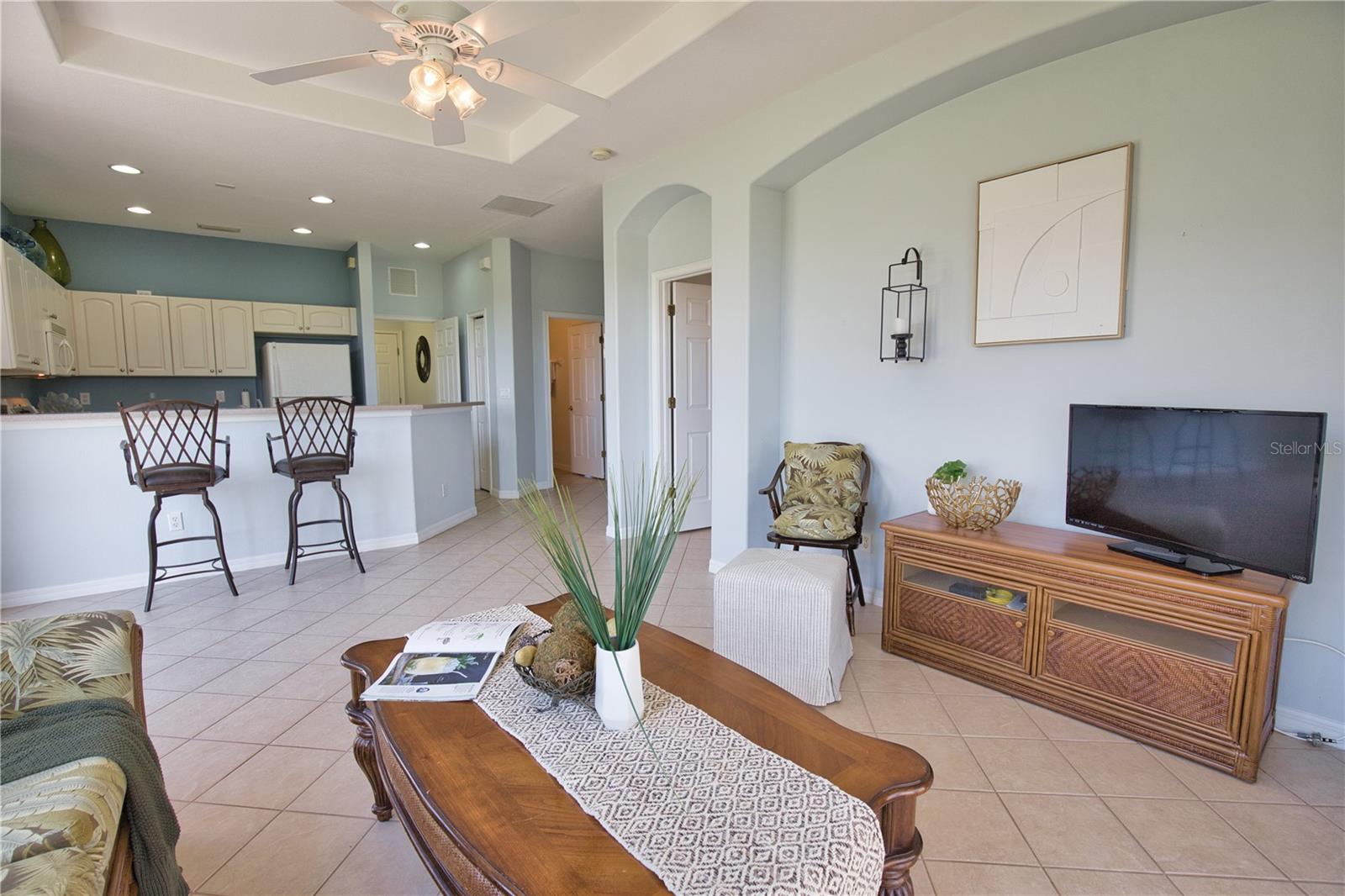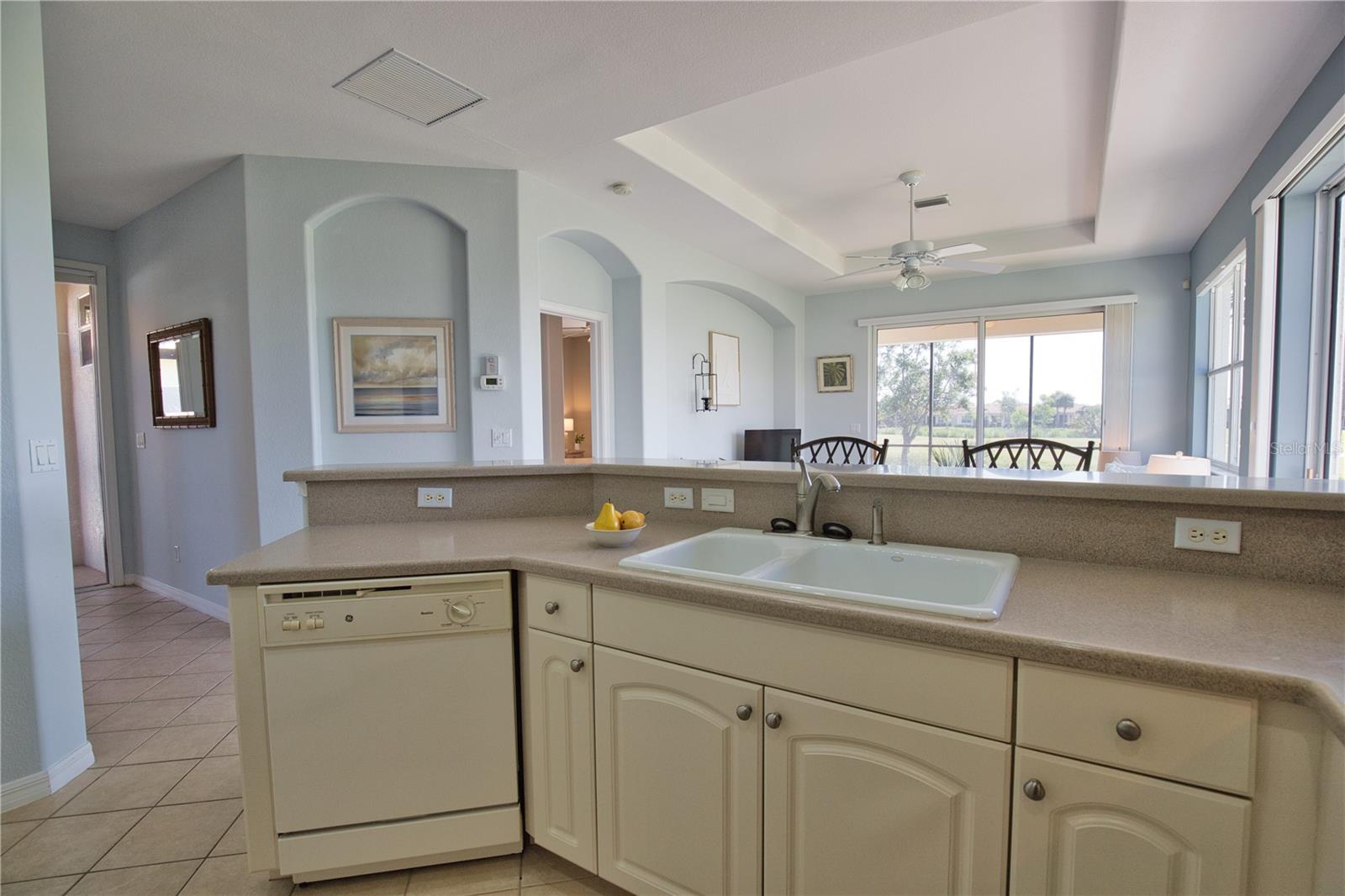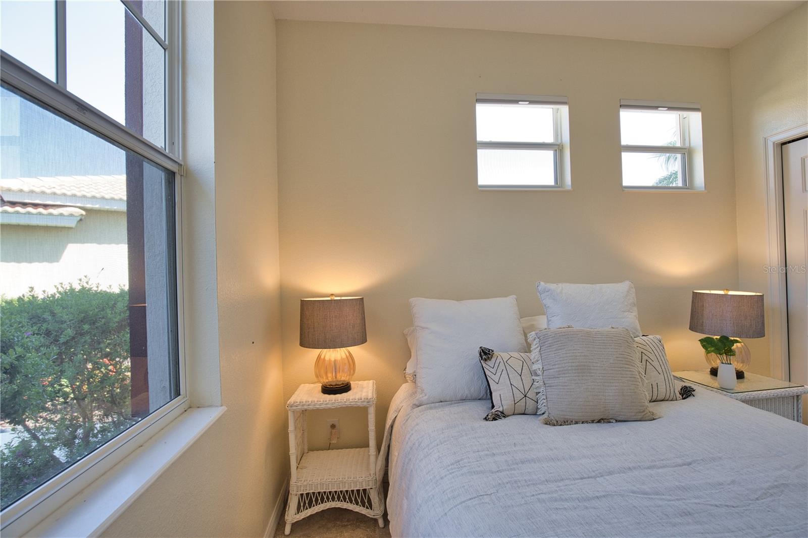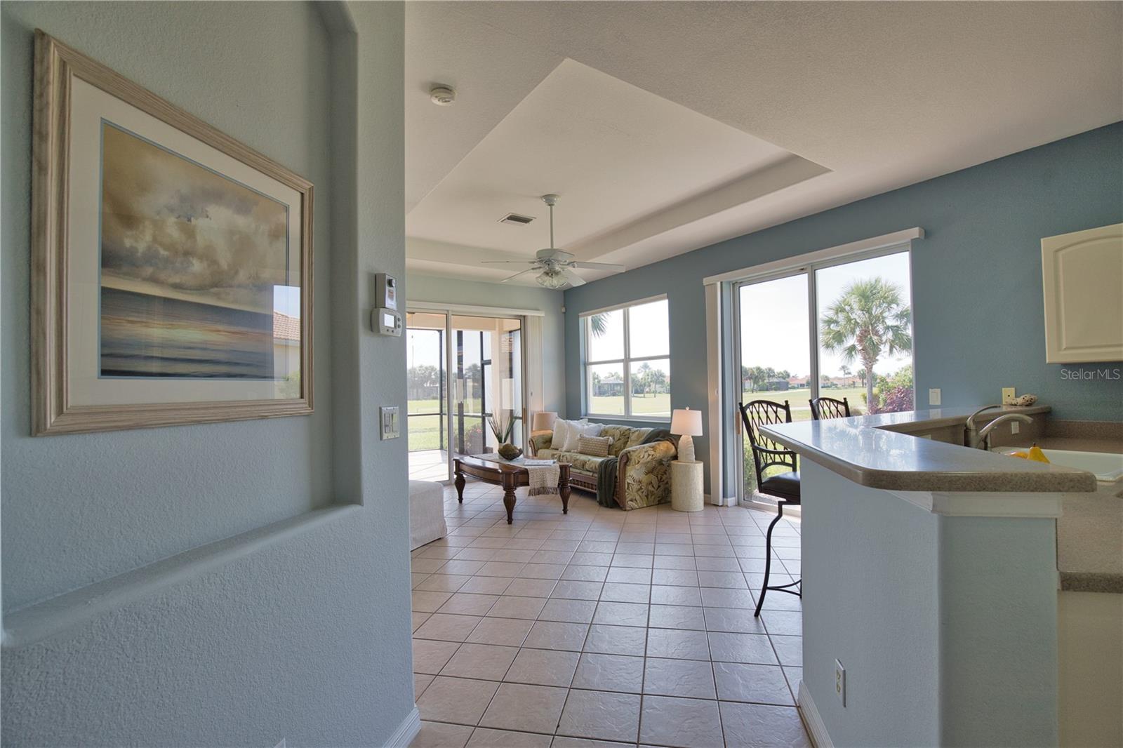 Welcome to a lifestyle of elegance and tranquility in the prestigious, gated community of the Venetian Golf & River Club. Perfectly positioned on a private cul-de-sac, this exceptional residence offers sweeping water and 7th fairway views from an expansive, pie-shaped lot—providing rare privacy and picturesque surroundings. Step inside to discover a bright and airy open-concept floor plan, thoughtfully designed for both comfort and sophistication. The home maintenance free home comes turnkey furnished and features two spacious bedrooms, each with its own en suite bath, and a two-car garage. A serene, neutral color palette complements the coastal aesthetic, with beach-toned tile flooring and white cabinetry throughout the gourmet kitchen. Entertain or unwind on the recently re-screened and extended lanai, where you can sip morning coffee or evening cocktails while overlooking the tranquil water and lush fairway—an idyllic setting for enjoying nature and the serene rhythm of golf course living. Most furnishings are included, offering a seamless move-in experience. Residents of this resort-style, maintenance-free community enjoy a wealth of luxury amenities. The River Club boasts a state-of-the-art fitness center, aerobics studio, resort-style pool with newly renovated cabana bar, hot tub, and lap pool. Enjoy fine dining at the elegant River Club dining room, or casual gatherings at the Mediterranean-inspired golf clubhouse with its Grille Room and second-floor veranda overlooking the 18th green. Additional community highlights include six Har-Tru tennis courts, planned pickleball courts, a scenic boardwalk through a 70-acre nature preserve along the Myakka River, and the added convenience of included cable and internet services. Optional golf membership is available for those who seek the ultimate country club experience. Ideally located between Venice and Sarasota, with easy access to I-75 and just minutes from world-class beaches, shopping, dining, and spring training baseball, this is Florida living at its finest.