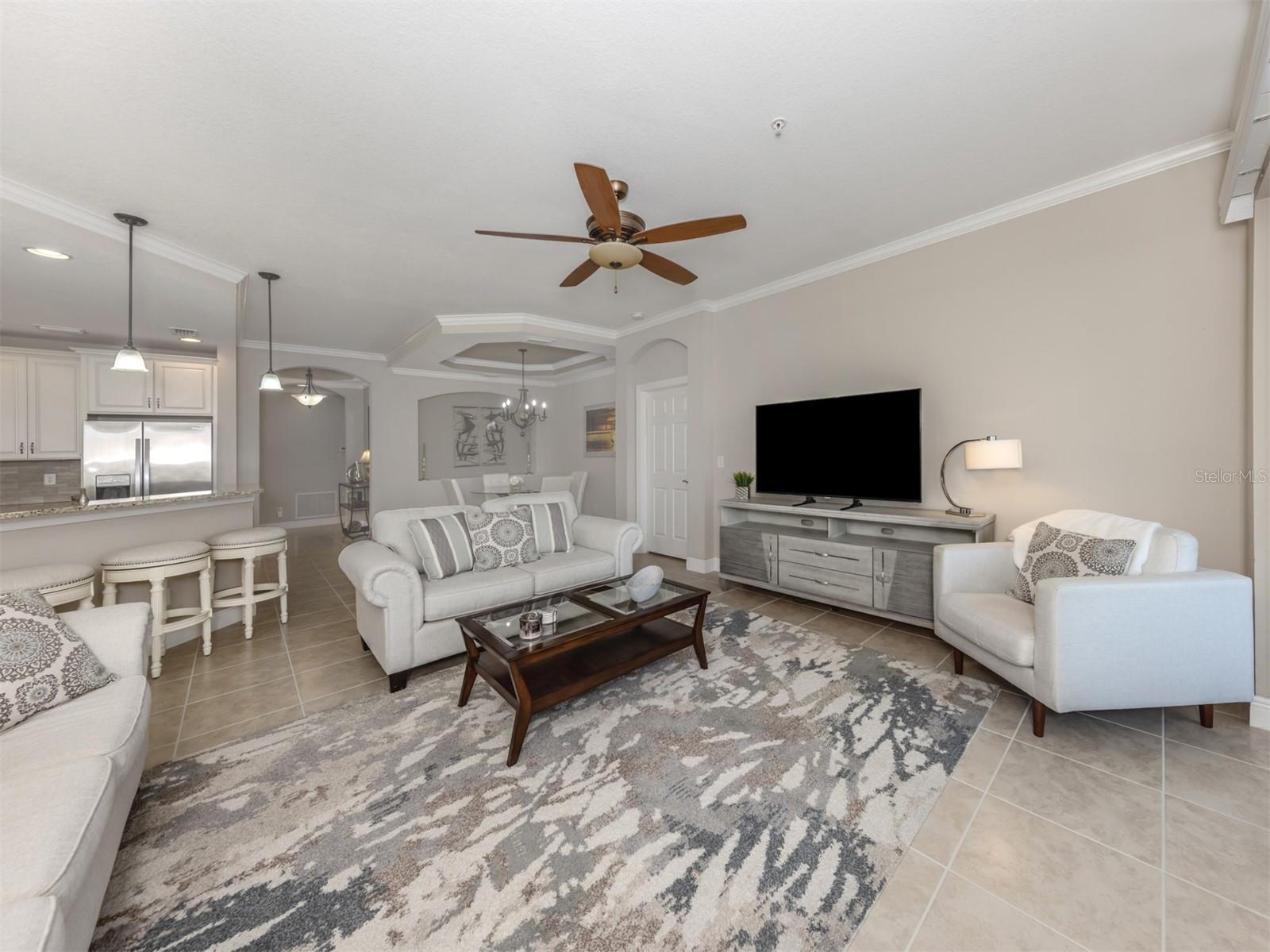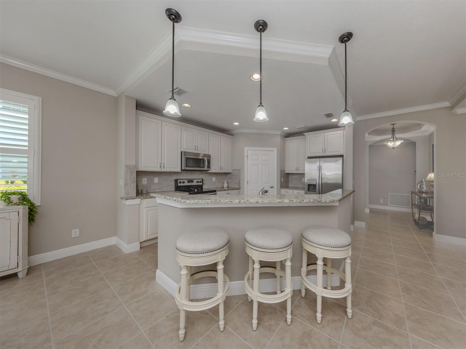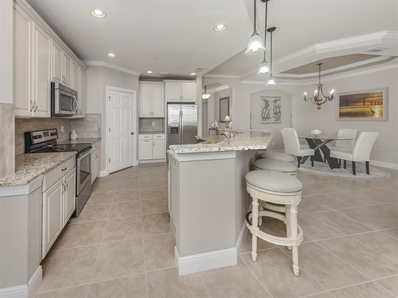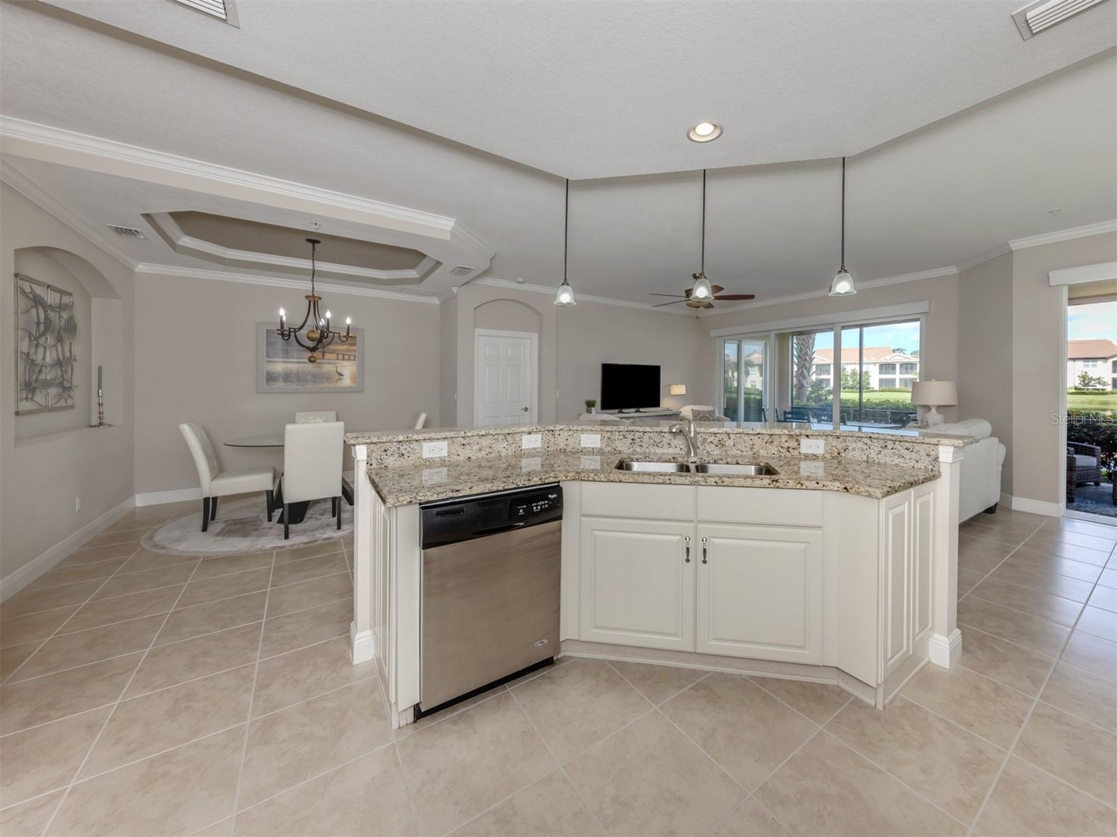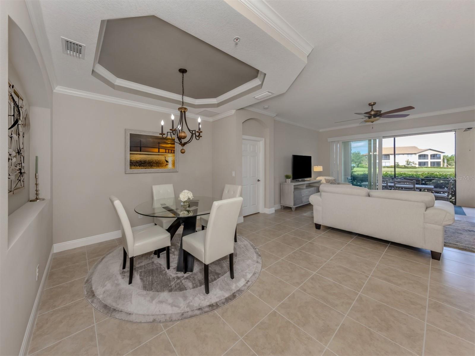 Come live the MAINTENANCE-FREE lifestyle in this beautifully designed Corsica model condo TURN- KEY FURNISHED Carriage home, perfect for everyday comfort and effortless entertaining. This spacious IMPECCABLY MAINTAINED 3 bedroom, 2-bath home offers 1,744 sq ft of open, airy living space with serene views of a tranquil pond and water feature. Start your mornings with coffee at the breakfast bar, in the café-style dining nook, or out on the screened lanai, all overlooking peaceful water vistas. Natural light fills the space through sliding glass doors from the great room, café, and owner’s suite, creating a warm and inviting atmosphere. The open kitchen features light cabinetry, granite countertops, stainless steel appliances, and tile flooring, flowing seamlessly into the great room and formal dining area—ideal for both relaxed living and entertaining. Tray ceilings in the formal dining room, owner’s suite, and second bedroom add a touch of elegance throughout. The owner’s suite includes a custom, walk-in closet, dual sinks, and a walk-in shower, offering a comfortable and private retreat. Upgrades include plantation shutters and crown molding. Located in the sought-after Venetian Golf and River Club in North Venice—just 10 minutes from Gulf beaches and shopping—this community offers a vibrant and active lifestyle. The River Club features fine dining with views of a 70-acre nature park along the Myakka River. Residents have access to a full fitness center, aerobics studio, lap pool, resort-style pool with cabana bar, six Har-Tru tennis courts, and newly added pickleball courts. Golfers will appreciate the scenic 18-hole championship course that winds through the lush surroundings. Just minutes from downtown Venice and the beaches, this light-filled condo offers more than just a home...it is a lifestyle. Come see it for yourself and take in the view.