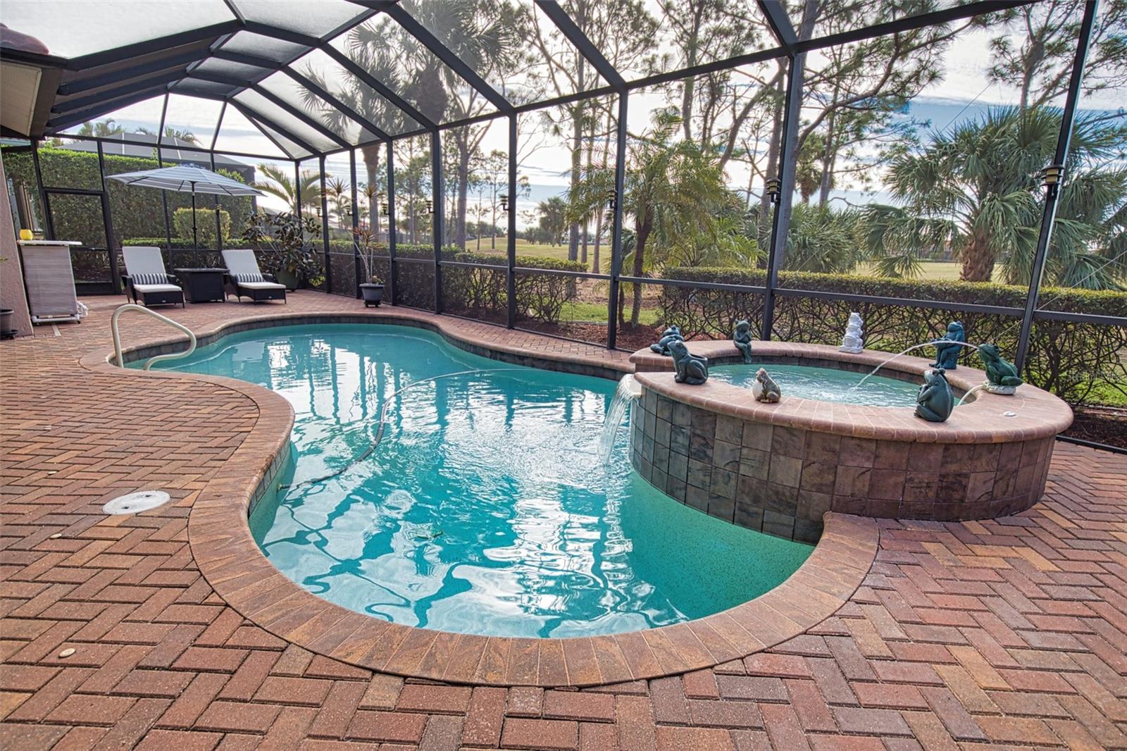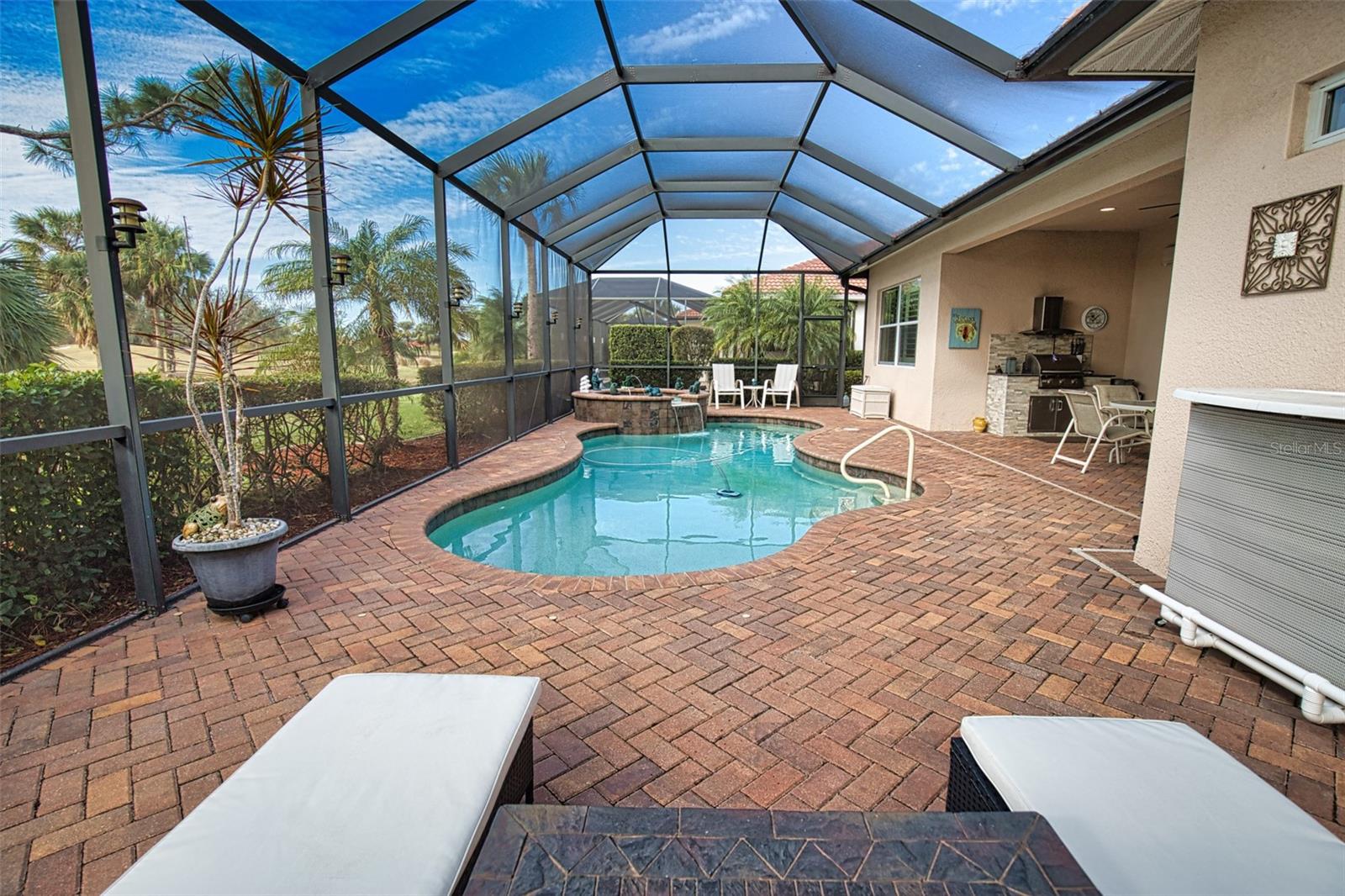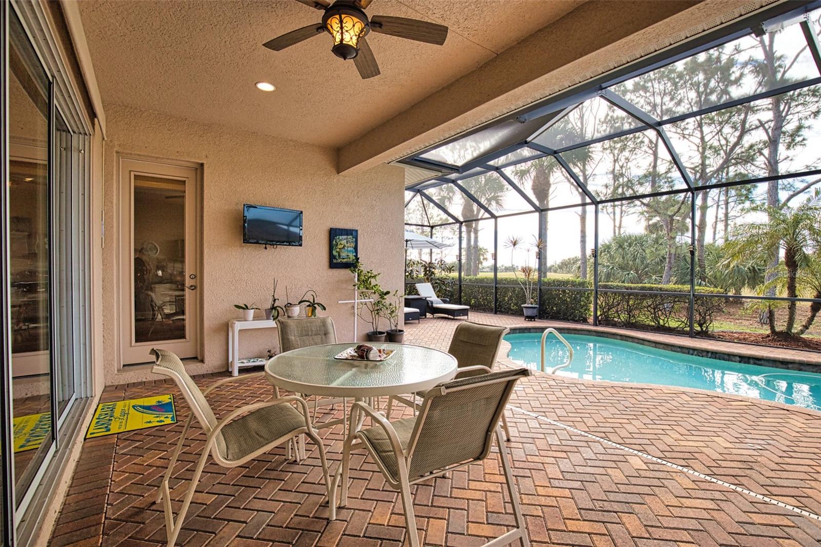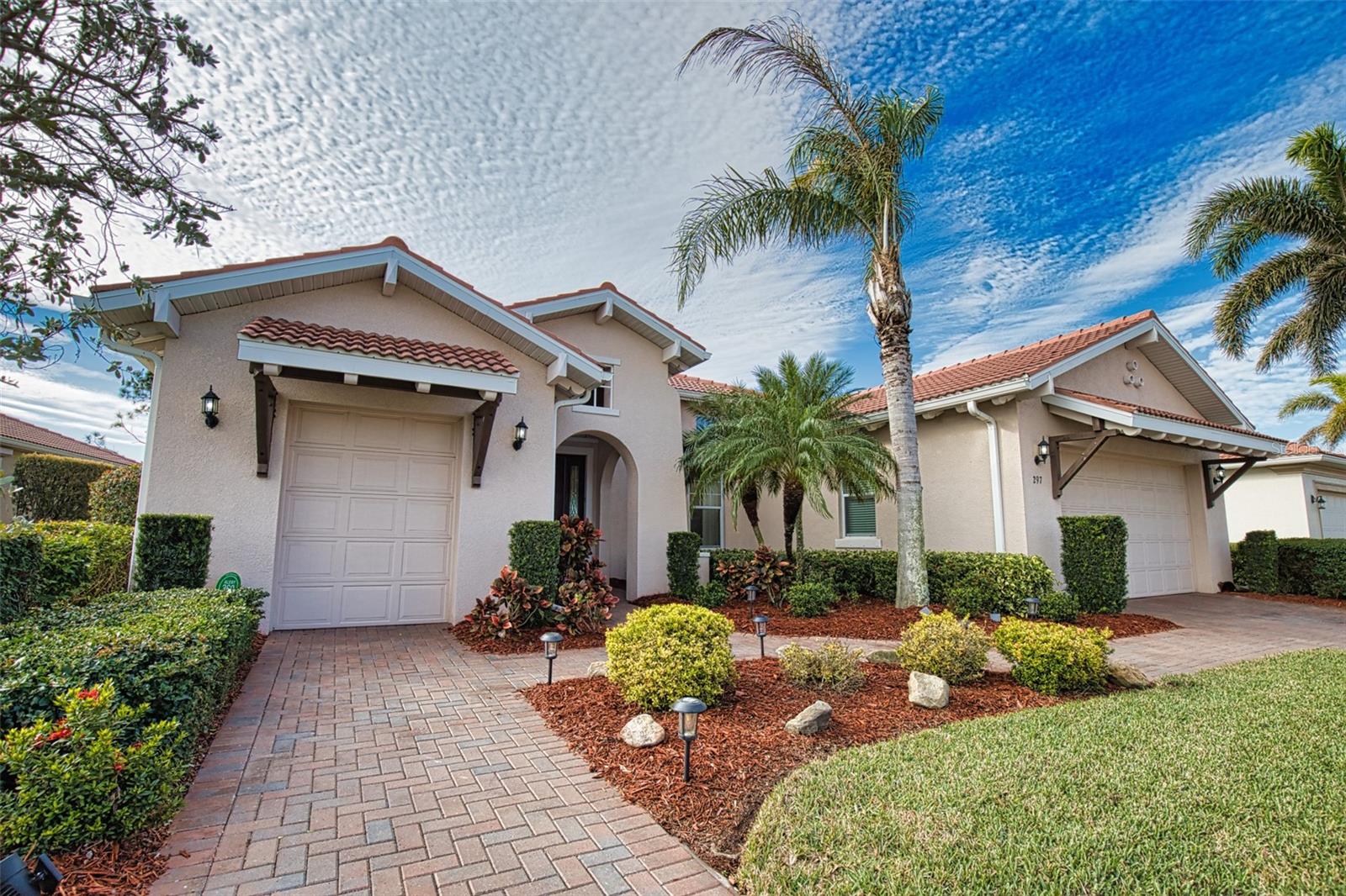 This sought after Boretto model built in 2012 has 2649 sq ft with a beautiful golf course view. It features 3 bedrooms, a den, 3 full baths, eating area, formal dining room, gourmet kitchen and more. It has a 2 car garage plus a golf cart garage.it has a large patio with a nice sized covered area, built in grill, free form pool, raised spa, automation, heat pump and solar heating. Beautiful arches throughout home, tray ceilings, recessed lighting, tile and lvp and so much more. Beyond the house, enjoy exceptional amenities at the River Club with fine dining, fitness and aerobics studios, lap and resort pools, tennis and pickleball courts and more situated on an 18 hole championship golf course. Just minutes from downtown Venice, world famous beaches and a new state of the art medical center.