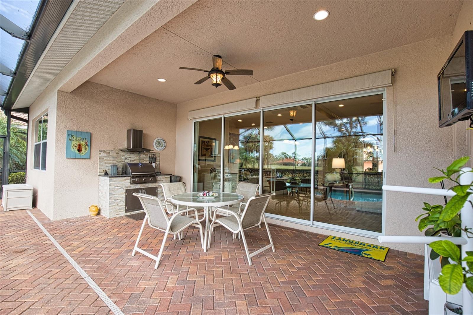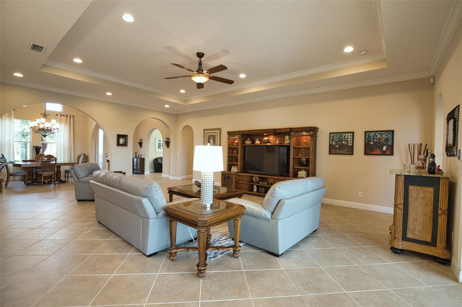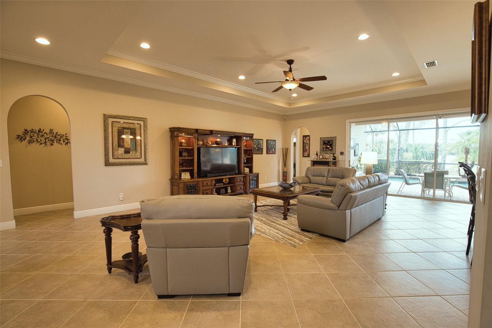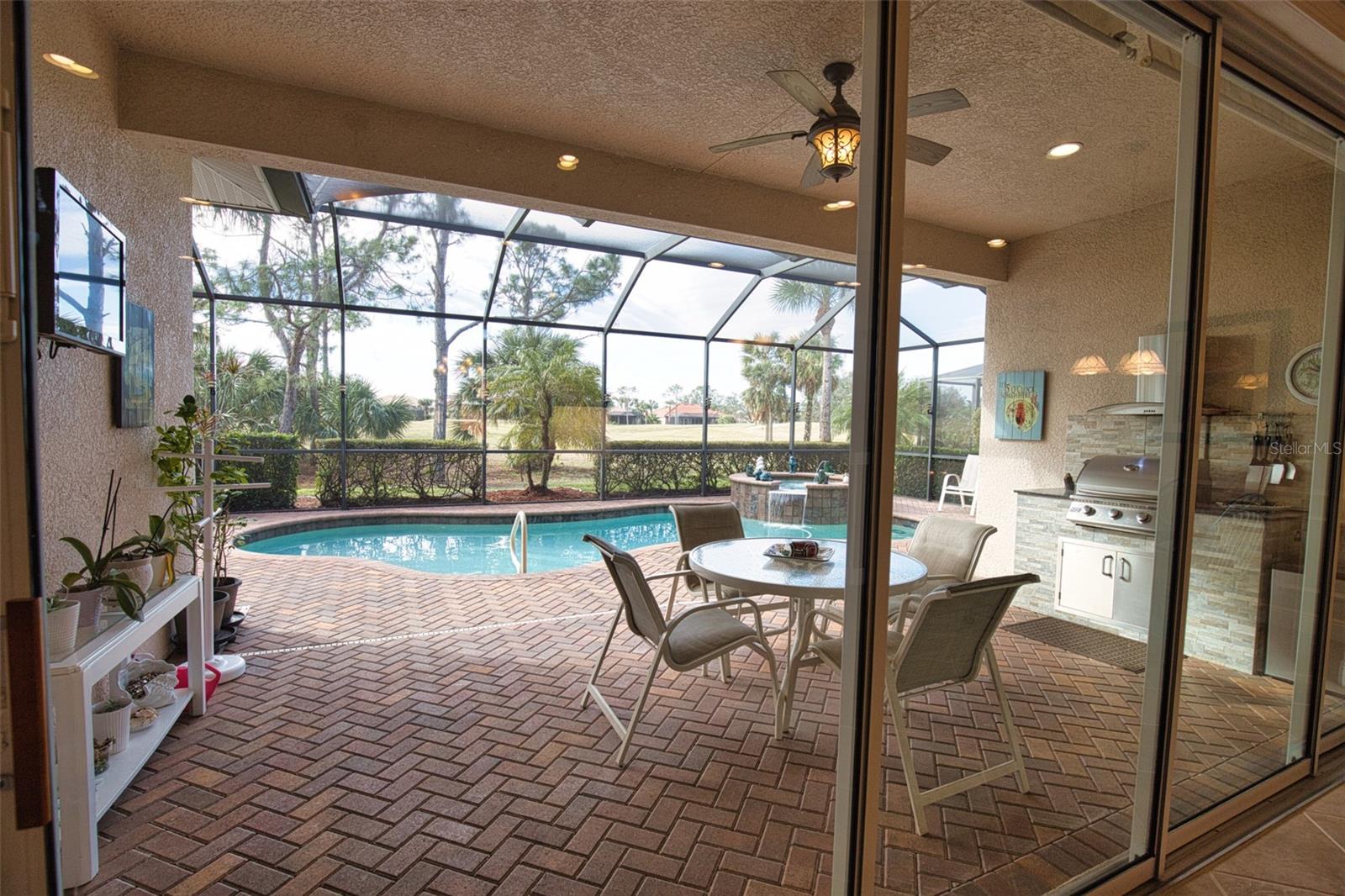 This sought after Boretto model built in 2012 has 2649 sq ft with a beautiful golf course view. It features 3 bedrooms, a den, 3 full baths, eating area, formal dining room, gourmet kitchen and more. It has a 2 car garage plus a golf cart garage.it has a large patio with a nice sized covered area, built in grill, free form pool, raised spa, automation, heat pump and solar heating. Beautiful arches throughout home, tray ceilings, recessed lighting, tile and lvp and so much more. Beyond the house, enjoy exceptional amenities at the River Club with fine dining, fitness and aerobics studios, lap and resort pools, tennis and pickleball courts and more situated on an 18 hole championship golf course. Just minutes from downtown Venice, world famous beaches and a new state of the art medical center.