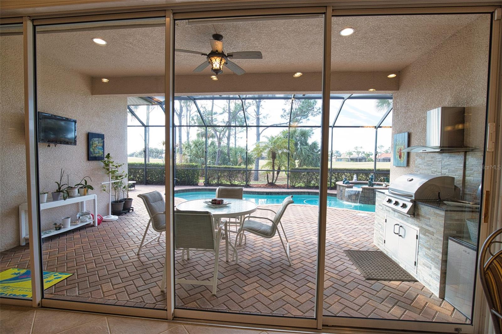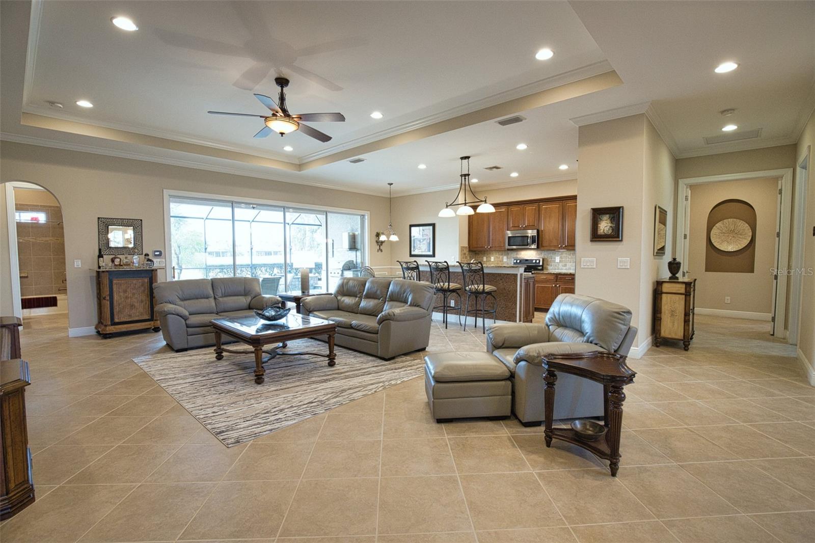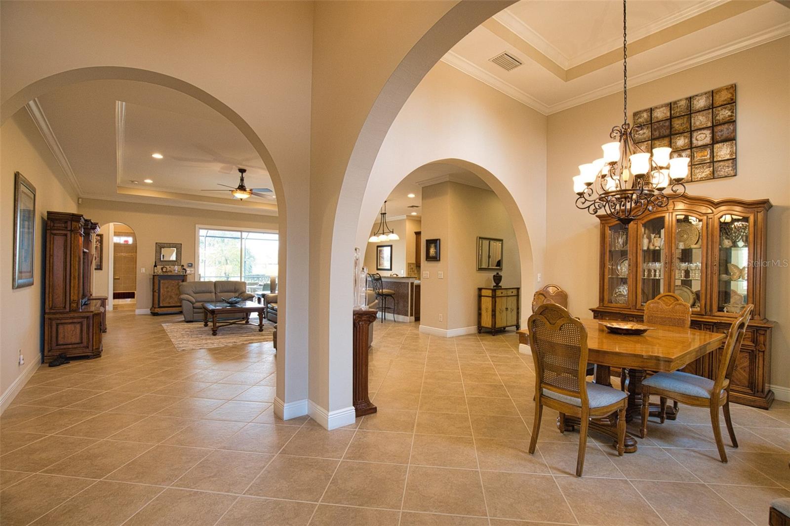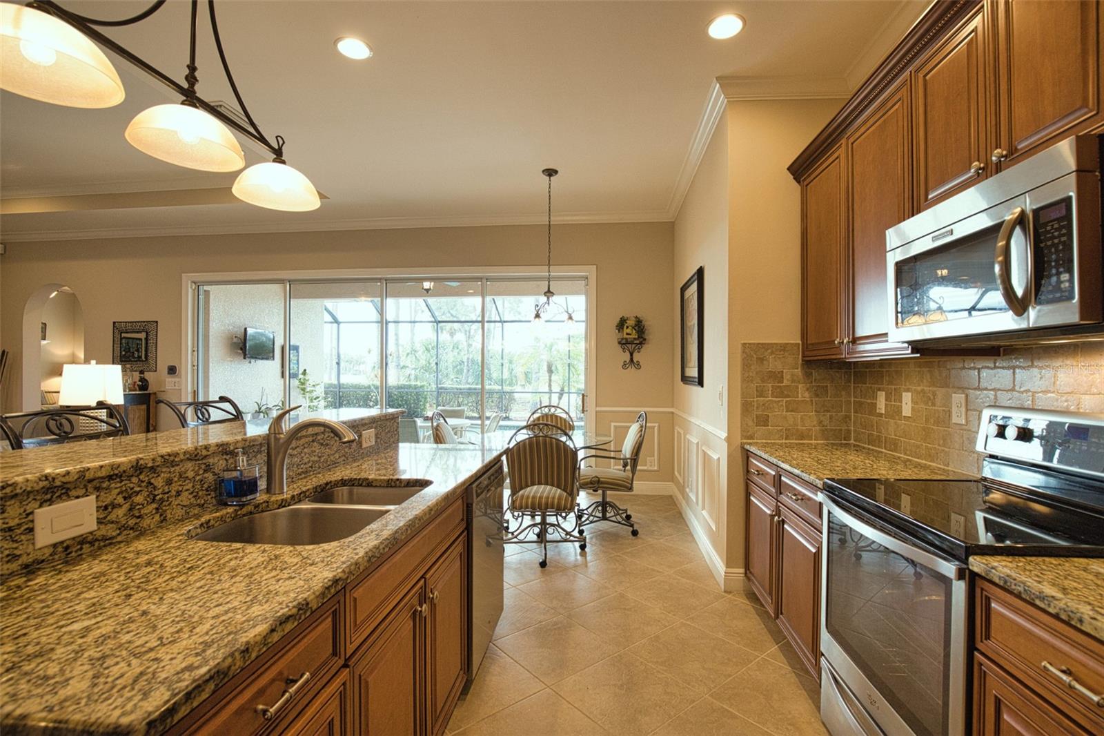This sought after Boretto model built in 2012 has 2649 sq ft with a beautiful golf course view. It features 3 bedrooms, a den, 3 full baths, eating area, formal dining room, gourmet kitchen and more. It has a 2 car garage plus a golf cart garage.it has a large patio with a nice sized covered area, built in grill, free form pool, raised spa, automation, heat pump and solar heating. Beautiful arches throughout home, tray ceilings, recessed lighting, tile and lvp and so much more. Beyond the house, enjoy exceptional amenities at the River Club with fine dining, fitness and aerobics studios, lap and resort pools, tennis and pickleball courts and more situated on an 18 hole championship golf course. Just minutes from downtown Venice, world famous beaches and a new state of the art medical center.