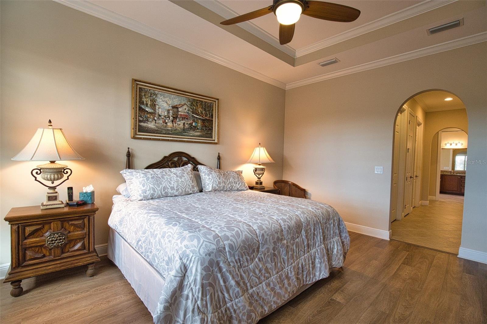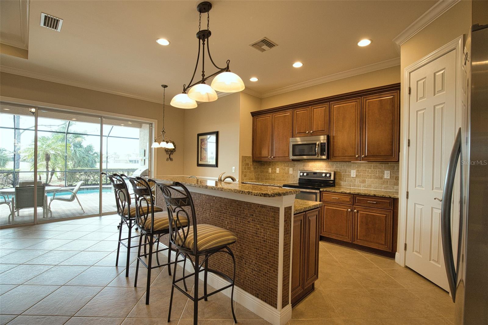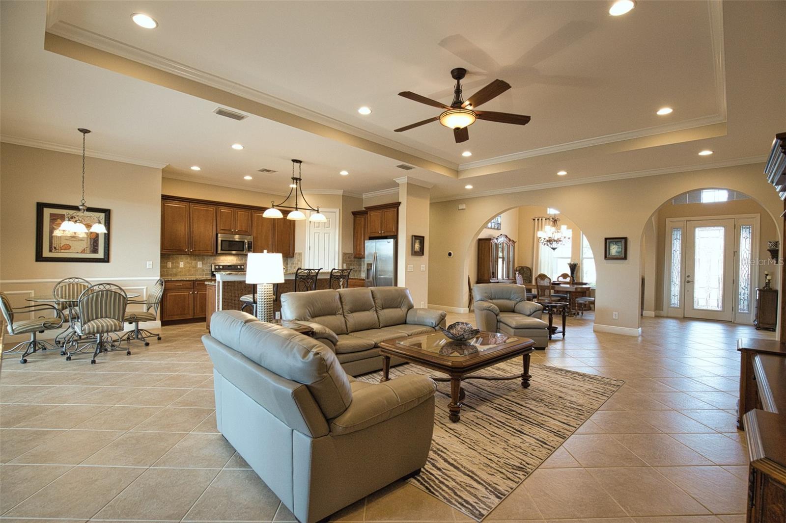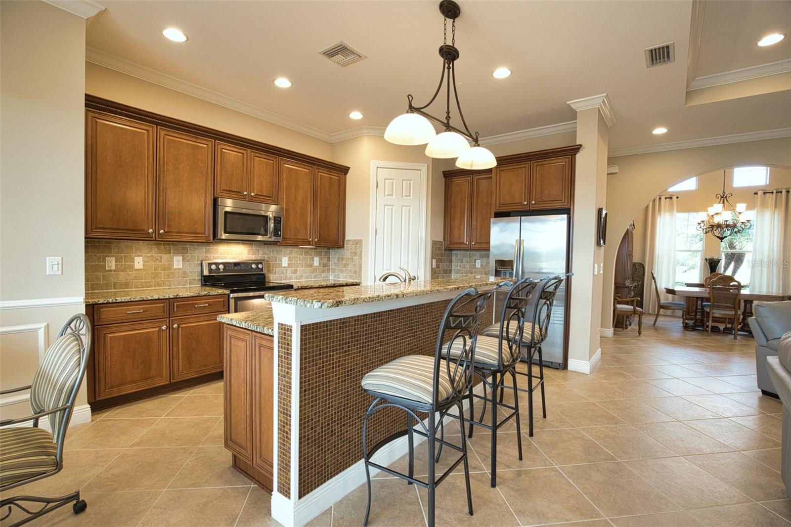 This sought after Boretto model built in 2012 has 2649 sq ft with a beautiful golf course view. It features 3 bedrooms, a den, 3 full baths, eating area, formal dining room, gourmet kitchen and more. It has a 2 car garage plus a golf cart garage.it has a large patio with a nice sized covered area, built in grill, free form pool, raised spa, automation, heat pump and solar heating. Beautiful arches throughout home, tray ceilings, recessed lighting, tile and lvp and so much more. Beyond the house, enjoy exceptional amenities at the River Club with fine dining, fitness and aerobics studios, lap and resort pools, tennis and pickleball courts and more situated on an 18 hole championship golf course. Just minutes from downtown Venice, world famous beaches and a new state of the art medical center.