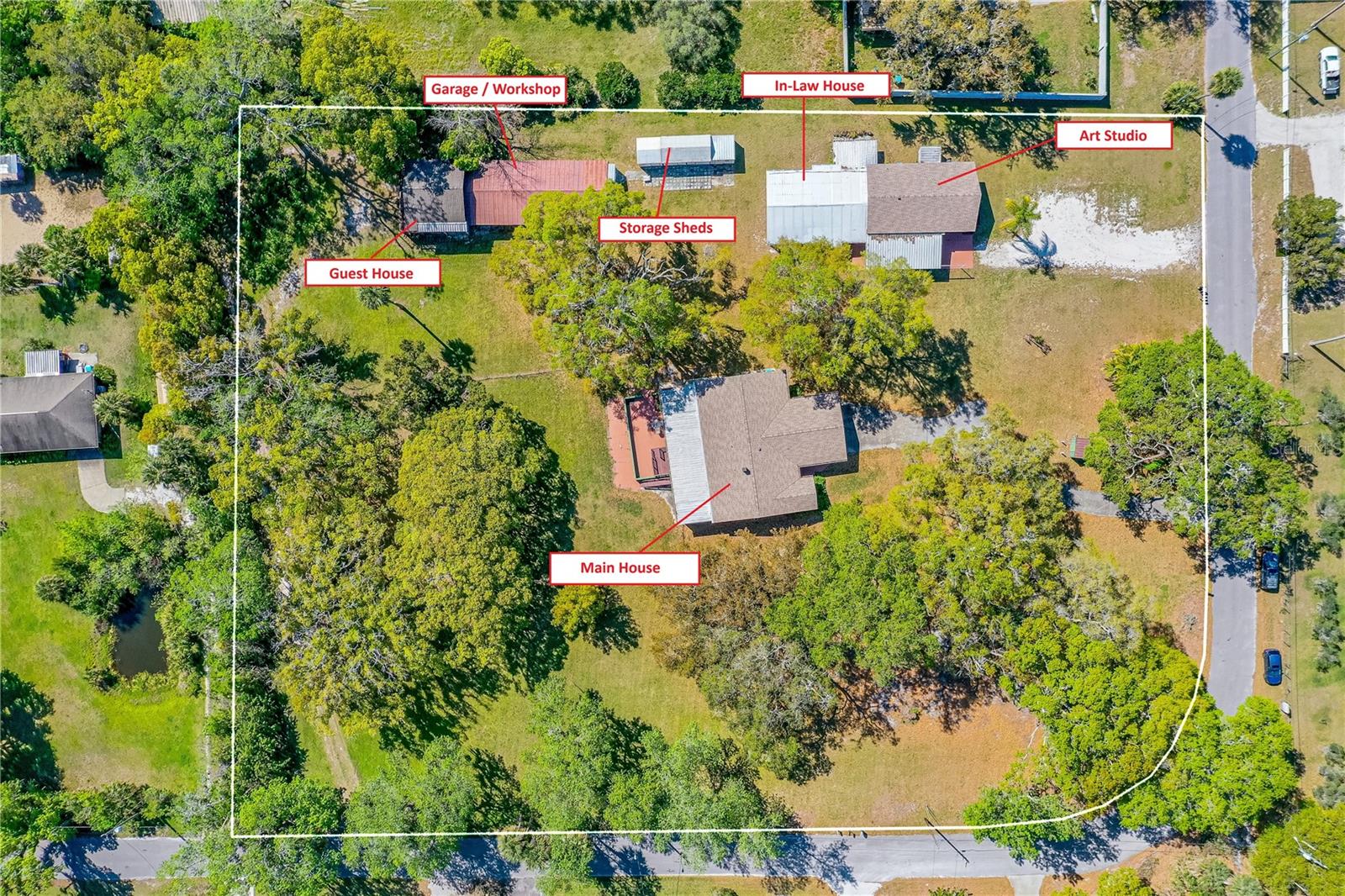 FAMILY COMPOUND OR RENTAL INCOME PROPERTY. DON’T MISS THIS OPPORTUNITY TO OWN A ONE-OF-A-KIND AWESOME PROPERTY. ONE PARCEL 4 LIVING QUARTERS. ALL LIVING QUARTERS HAVE THEIR OWN ADDRESS. ALL OF THIS STRATEGICALLY LAID OUT ON 2.9 BEAUTIFUL ACRES. MATURE LANDSCAPING AND NATIVE TREES MAKES THIS A PLACE OF BEAUTY. THE MAIN HOME IS 1800 SQ FT. THE OTHER HOMES ARE 1200 SQ FT, 1000 SQ FT, AND 480 SQ FT FOR A TOTAL OF 4480 SQ FT UNDER HEAT AND AIR. YOU COULD MAKE THE MAIN HOUSE THE CENTER OF FUN FOR THE OTHER LIVING QUARTERS OR LIVE IN THE MAIN HOME AND RENT OUT THE OTHER 3 LIVING QUARTERS OR MAKE A FLORIDA FAMILY COMPOUND FOR YOU AND YOUR ADULT FAMILY MEMBERS. MANY POSSIBILITIES. THE MAIN LIVING QUARTERS IS 1800 SW FT WITH AN ADDITIONAL 952 SQ FT FLORIDA ROOM. TWO BEDROOMS TWO BATHS AND 2 CAR CARPORT. CUSTOM KITCHEN WITH CHERRY CABINETS, GRANITE COUNTER TOPS AND PINE WOOD FLOORS. THERMAL DOUBLE PANE WINDOWS. ALL UPGRATED APPLIANCES AND MANY MORE FEATURES. THE 1200 SQ FT LIVING QUARTERS HAVE VAULTED CEILINGS, OPEN FLOOR PLAN, KITCHEN TILE AND WOOD FLOORS, LARGE BATHROOM. THE 1000 SQ FT SPACE HAS A KITCHEN, FULL BATH, PINE WOOD FLOORS, PECKY CYPRESS WALL WITH GAS FIREPLACE, DOUBLE CARPORT AND PORCH. THE 480 SQ FT LIVING SPACE HAS PINE WOOD FLOORING, KITCHEN AND FULL BATHROOM AND LOTS OF CABINETS. NO FLOODING AND NO FLOOD INSURANCE REQUIRED. GOT TO SEE THIS TO BELIEVE IT!. HUGE GARAGE WITH WORKSHOP AND 3 ADDITIONAL UTILITY/STORAGE BUILDINGS. ALL THIS WITHIN A 5 MINUTE WALK TO THE INTRACOSTAL WITH PUBLIC ACCESS. NO HOA, HORSES OK, GOLF CART FRIENDLY AREA.