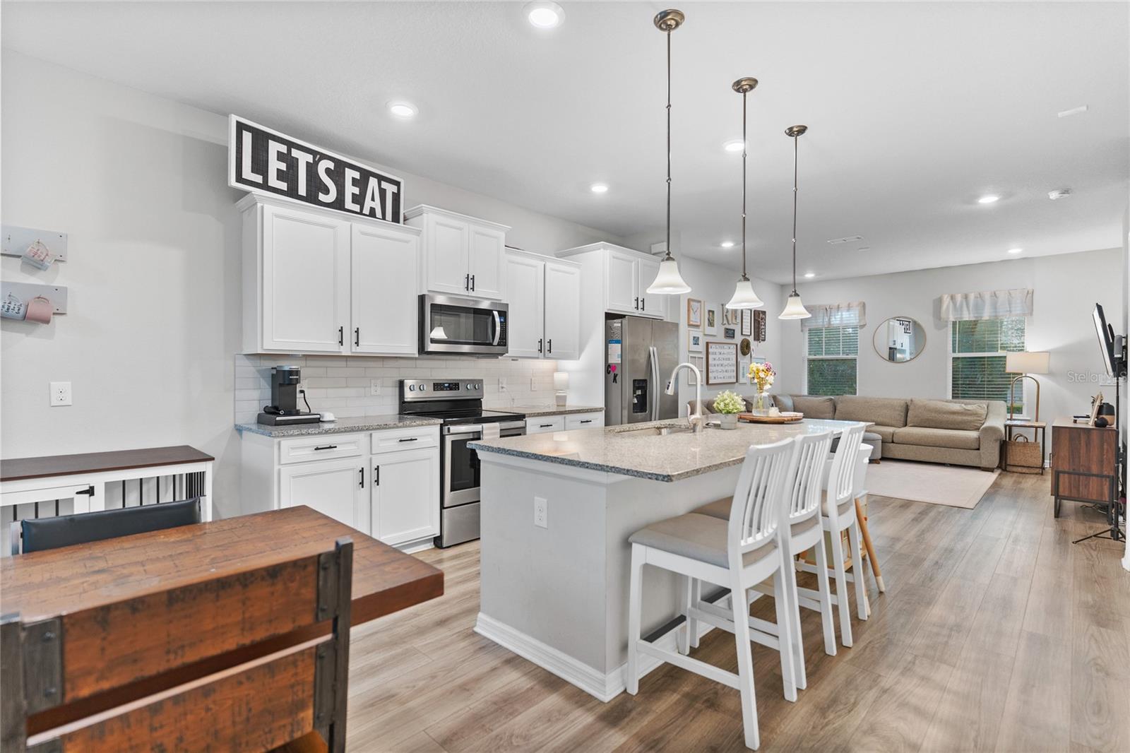 Built in 2019, this stunning townhouse in Oakland offers contemporary living with all the amenities you could desire. Perfectly positioned for convenience, you're just minutes from the highway, making trips to Orlando a breeze, and only a short drive from the vibrant downtown Winter Garden. The home features luxury vinyl planking throughout the main level, enhancing both the style and practicality of the space. The open floor plan creates a warm and inviting atmosphere, ideal for entertaining guests or enjoying quiet evenings at home. Upstairs, you’ll find the spacious primary bedroom, providing a peaceful retreat at the end of the day. The secondary bedroom is also located upstairs and boasts its own en-suite bathroom, offering comfort and privacy for family or guests. One of the standout features of this townhouse is the large patio out back, perfect for outdoor dining, gardening, or simply unwinding after a long day. The neighborhood itself offers a community pool, providing a refreshing retreat on warm days. This townhouse truly has it all: modern design, prime location, and fantastic amenities. Another amazing benefit of this location is that the community is right across the street from the scenic West Orange Trail—perfect for biking, jogging, or leisurely walks. Schedule your tour today and experience the best of Oakland living!