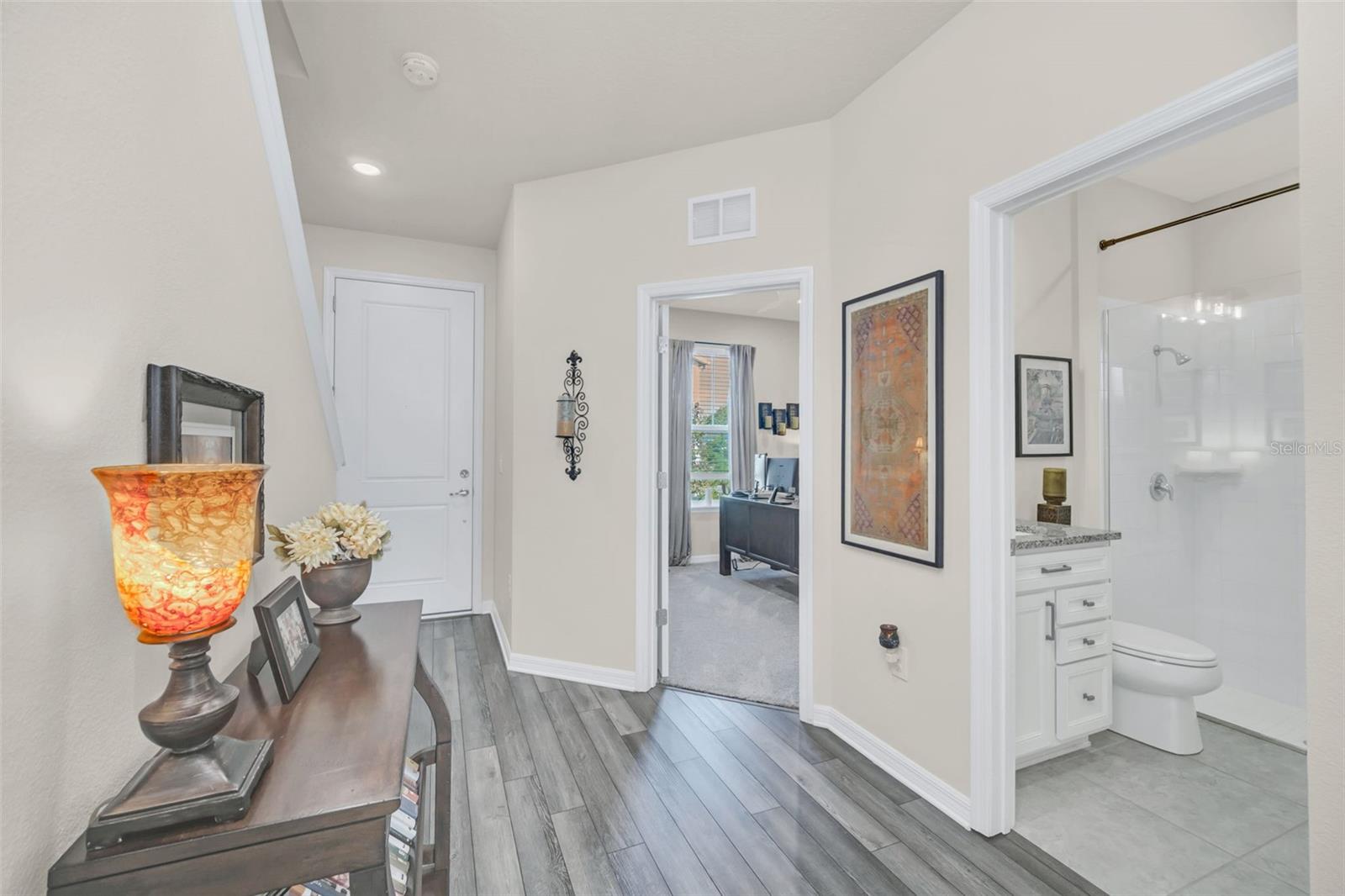 Welcome to 2102 Gopher Tortoise Terrace. This rare and stunning four-bedroom, three-bath townhome in the heart of Oakland offers a blend of modern living and convenience. Inside, discover a thoughtfully updated interior that exudes style and functionality. Ideal for entertaining guests or simply unwinding after a long day. Luxury vinyl floors flow seamlessly throughout the main level, creating an inviting atmosphere that's elegant and easy to maintain. The kitchen offers beautiful 42-inch cabinets, granite countertops, stainless steel appliances and a spacious custom pantry. Downstairs you also have a full bedroom and bath, ideal for guests or as an office. Upstairs, you'll find three generously sized bedrooms and two full baths. The luxurious primary suite offers the ideal place to unwind and rejuvenate, with a walk-in shower and custom-built closets. The upstairs laundry room also offers custom built-outs and a separate utility closet with plenty of storage. Outside, enjoy your privacy on the brick-paved patio, complete with sunshade and market lights. The oversized two-car garage offers built-in shelving sure to help keep your personal items organized. This home is just minutes from downtown Winter Garden, across from The West Orange Trail and Oakland Nature Preserve. Community features include a playground and community pool in short distance. The townhomes at Longleaf offer easy carefree living with grounds maintained by the association. Call to schedule your private showing today!