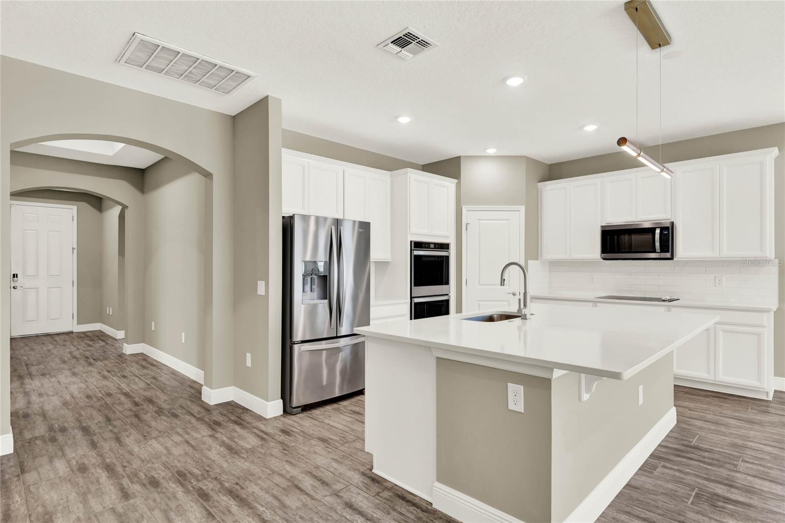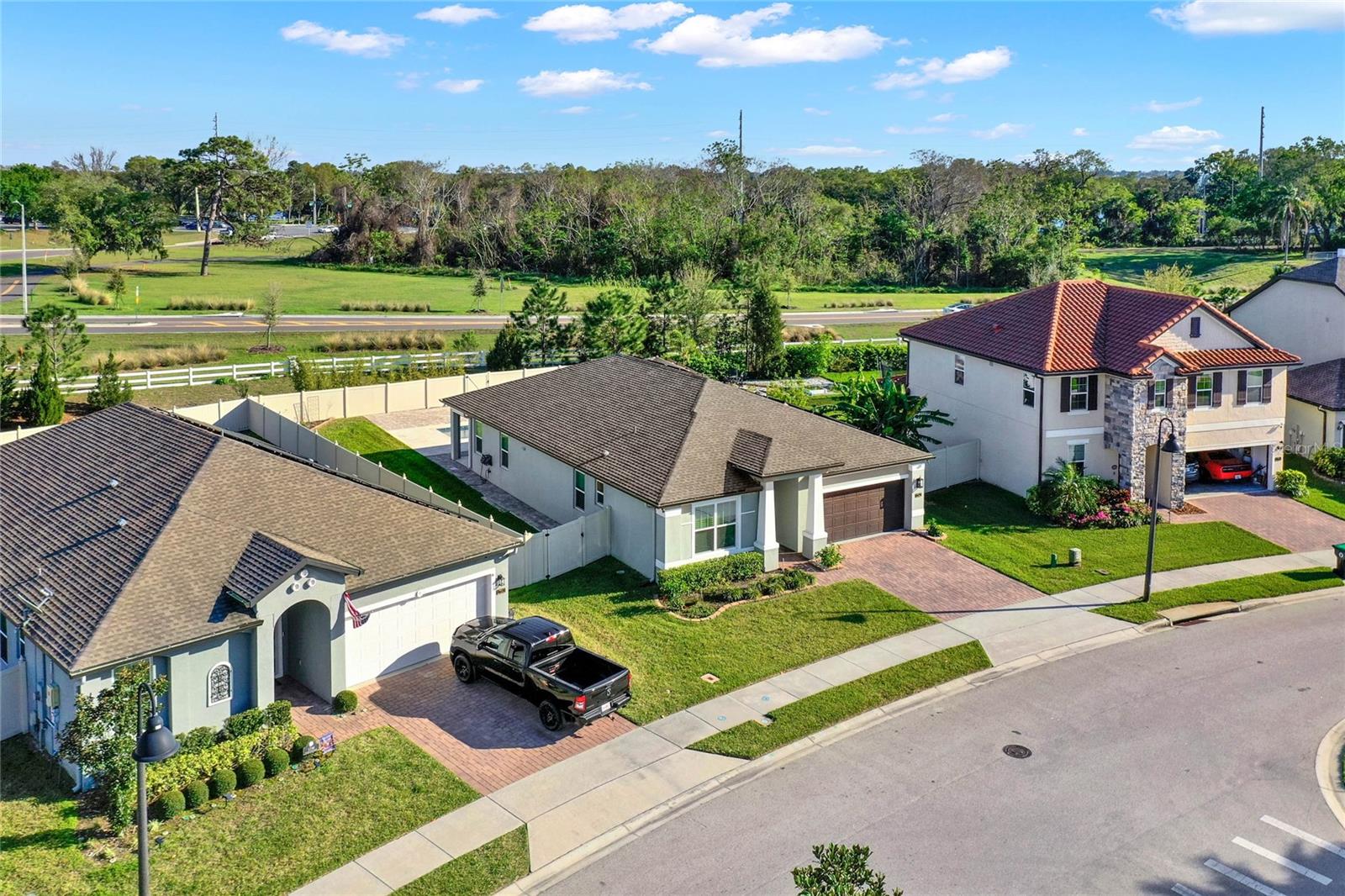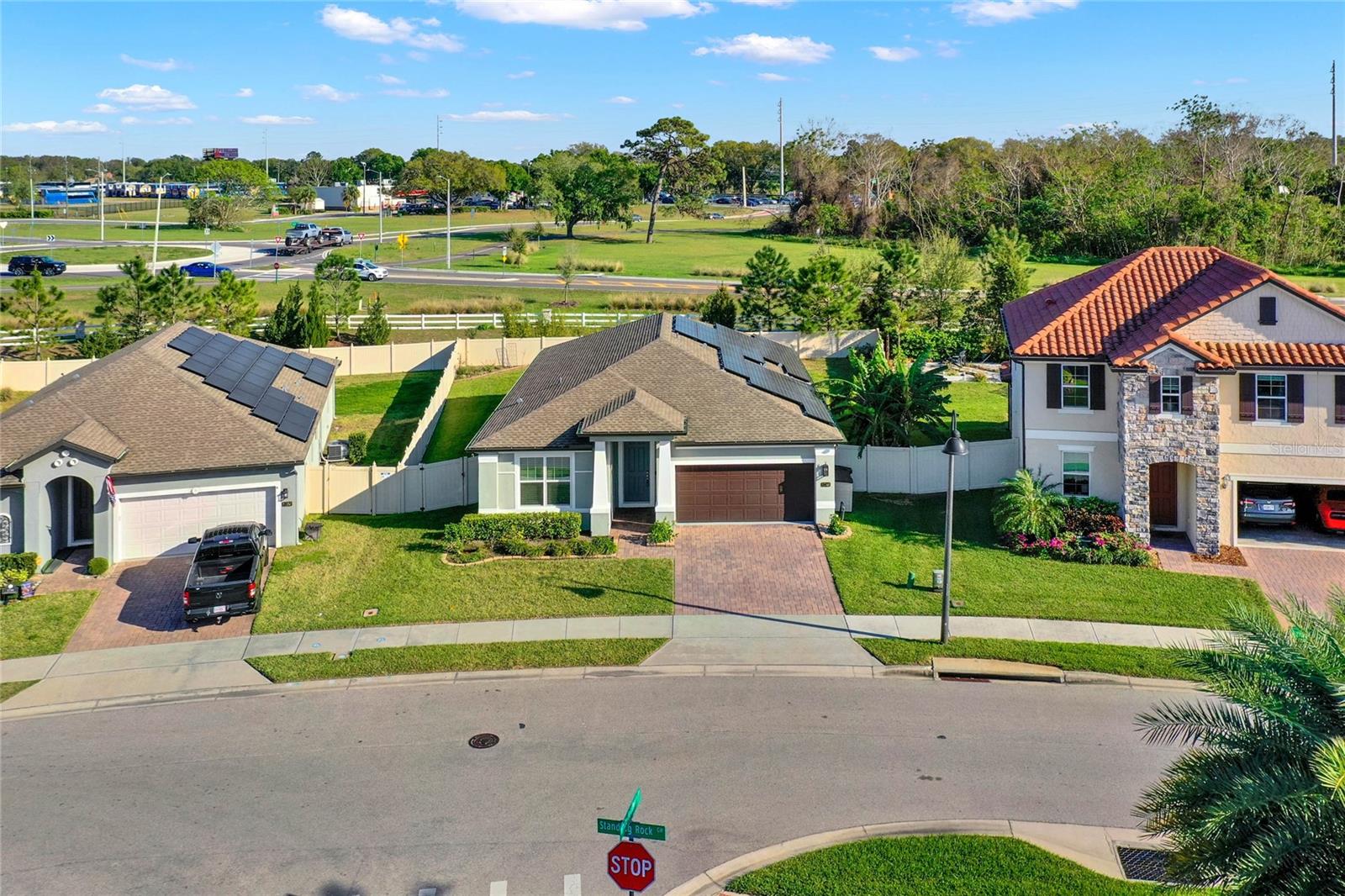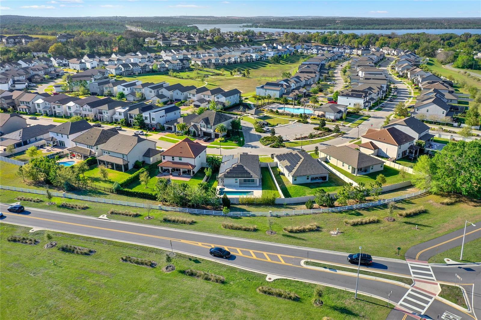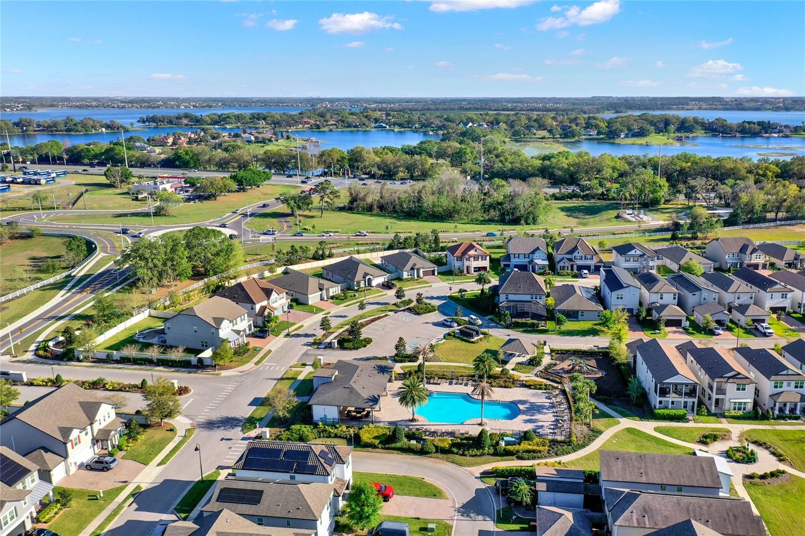 **Video Tour Available** Welcome to Oakland Trails which is situated on the West Orange Trail and in-between the popular downtowns of both Winter Garden and Clermont! This is a Meritage home that was built with beauty and energy efficiencies in-mind. The owners took it a step further by placing Tesla solar panels on the roof to easily support the whole-home and pool energy needs each month. There are 2 Tesla walls in the garage as well. The location of this home is ideal as it’s across the street from the community pool and mailboxes. Enter to find beautiful tile plank flooring, tray ceilings, and upgraded lighting fixtures. The gourmet kitchen has double ovens, a steam dishwasher, quartz countertops, tile backsplash and walk-in pantry. Entertaining is easy with the dedicated dining room which is spacious and still open to the kitchen and family rooms. Fill the home with sound as Sonos speakers were installed in the dining room and kitchen. Relaxation awaits in the primary suite with a luxurious garden tub, frameless shower with upgraded tile, dual vanities, dual walk-in closets and dedicated AC unit. The secondary bedrooms share a bathroom with a quartz countertop. The set of triple sliding glass doors extends the living space to the covered patio with automatic screens, heated and salt water lap pool, spa and spacious backyard. The French travertine tile is stunning and you’ll even find a fruiting Blue Banana tree! The garage has a dedicated AC unit as well, epoxy flooring and overhead storage. Additional upgrades include custom shelving in the laundry room, Ring doorbell, ADT security system and gutters. Oakland Trails is near the Turnpike and 429 so it’s easy to move around town. Don’t miss your chance to see this beautiful home!