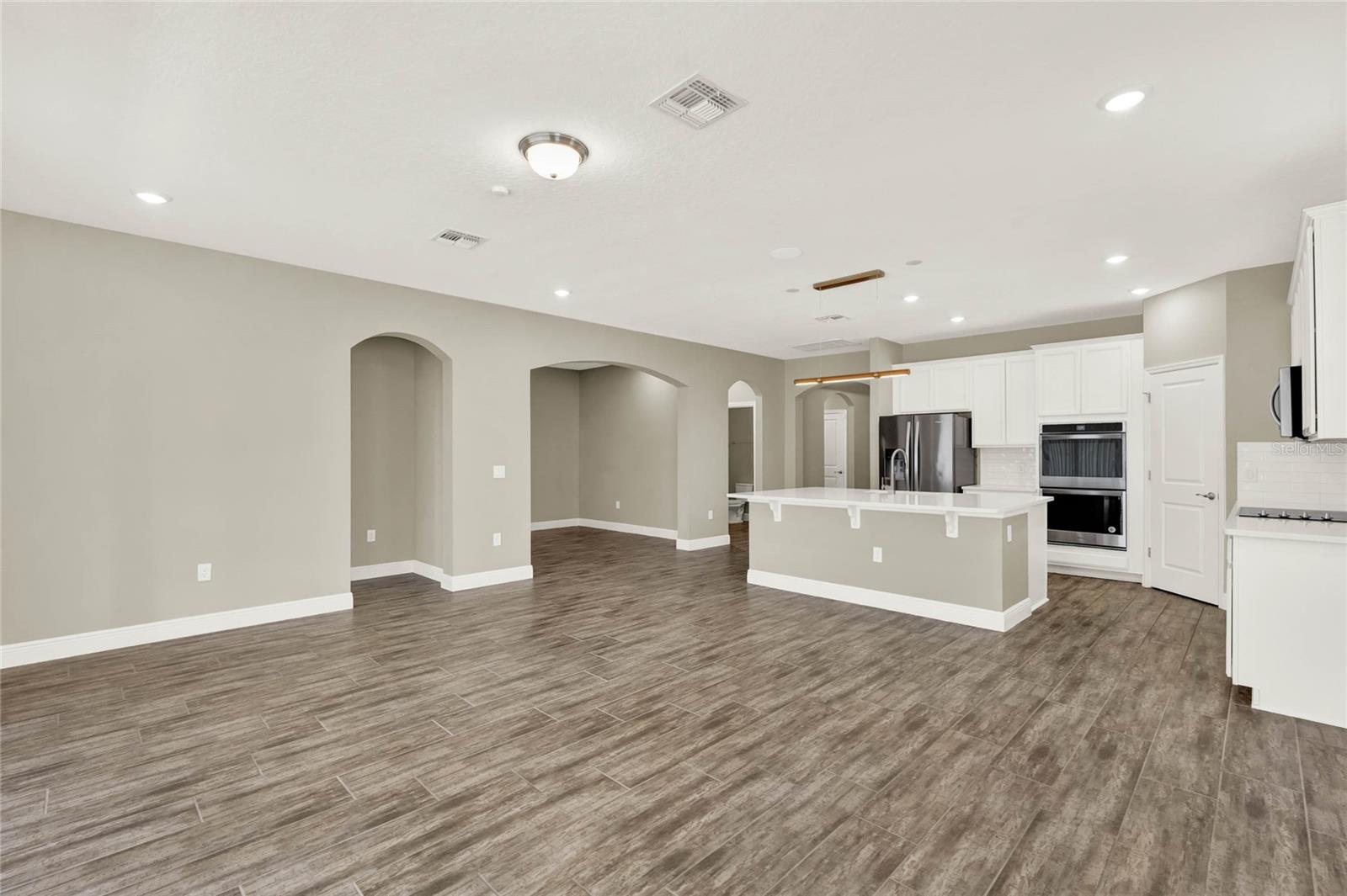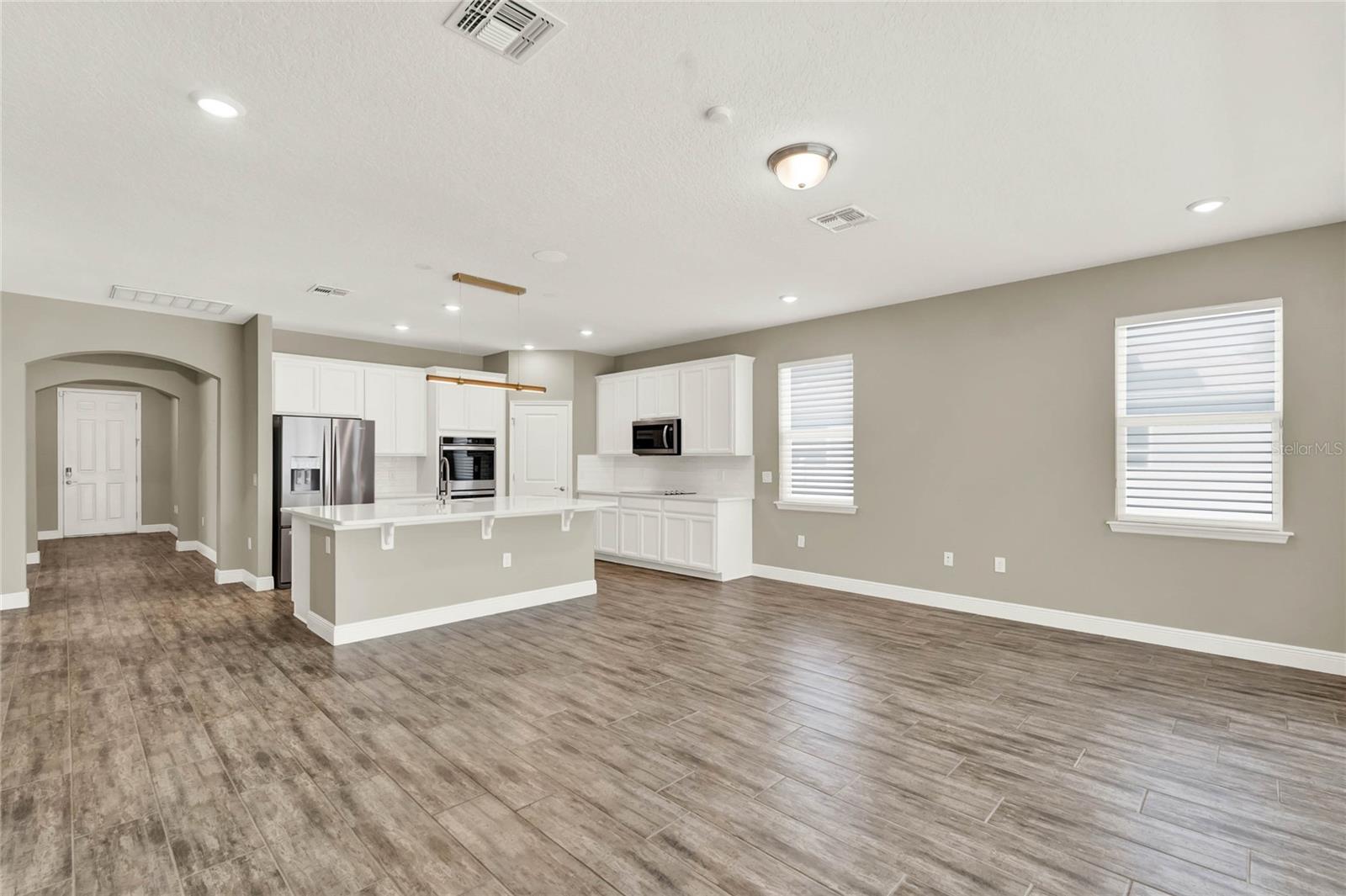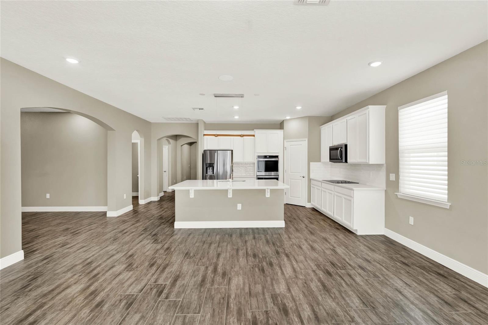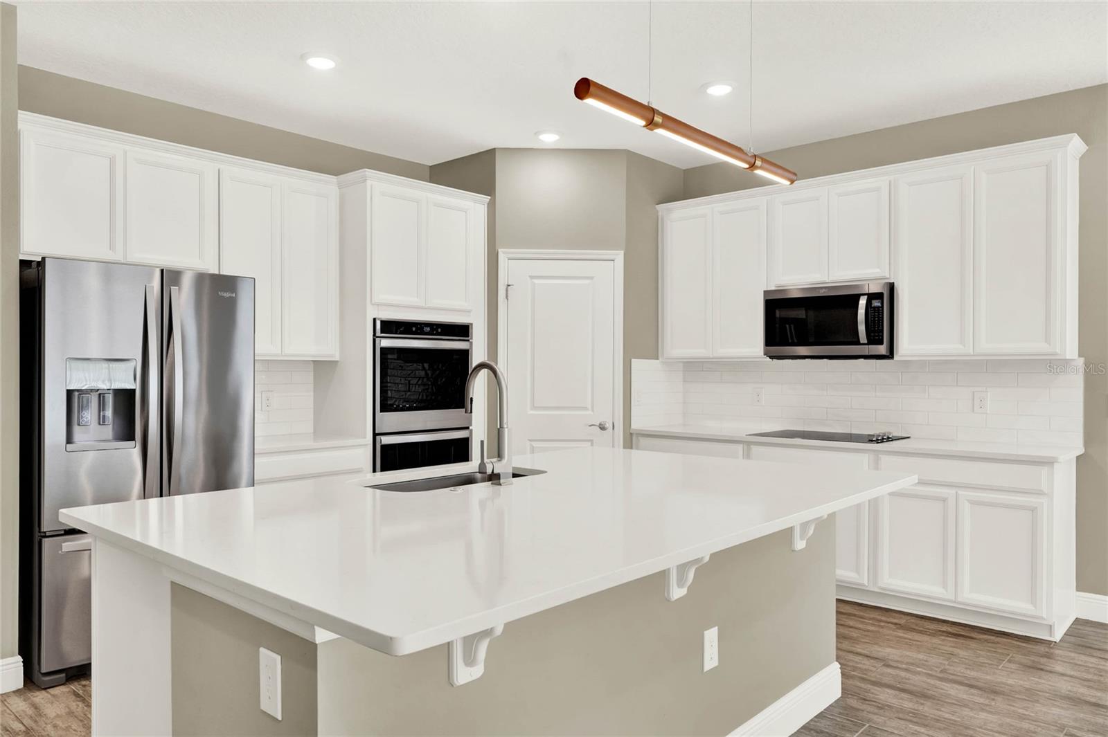 **Video Tour Available** Welcome to Oakland Trails which is situated on the West Orange Trail and in-between the popular downtowns of both Winter Garden and Clermont! This is a Meritage home that was built with beauty and energy efficiencies in-mind. The owners took it a step further by placing Tesla solar panels on the roof to easily support the whole-home and pool energy needs each month. There are 2 Tesla walls in the garage as well. The location of this home is ideal as it’s across the street from the community pool and mailboxes. Enter to find beautiful tile plank flooring, tray ceilings, and upgraded lighting fixtures. The gourmet kitchen has double ovens, a steam dishwasher, quartz countertops, tile backsplash and walk-in pantry. Entertaining is easy with the dedicated dining room which is spacious and still open to the kitchen and family rooms. Fill the home with sound as Sonos speakers were installed in the dining room and kitchen. Relaxation awaits in the primary suite with a luxurious garden tub, frameless shower with upgraded tile, dual vanities, dual walk-in closets and dedicated AC unit. The secondary bedrooms share a bathroom with a quartz countertop. The set of triple sliding glass doors extends the living space to the covered patio with automatic screens, heated and salt water lap pool, spa and spacious backyard. The French travertine tile is stunning and you’ll even find a fruiting Blue Banana tree! The garage has a dedicated AC unit as well, epoxy flooring and overhead storage. Additional upgrades include custom shelving in the laundry room, Ring doorbell, ADT security system and gutters. Oakland Trails is near the Turnpike and 429 so it’s easy to move around town. Don’t miss your chance to see this beautiful home!
