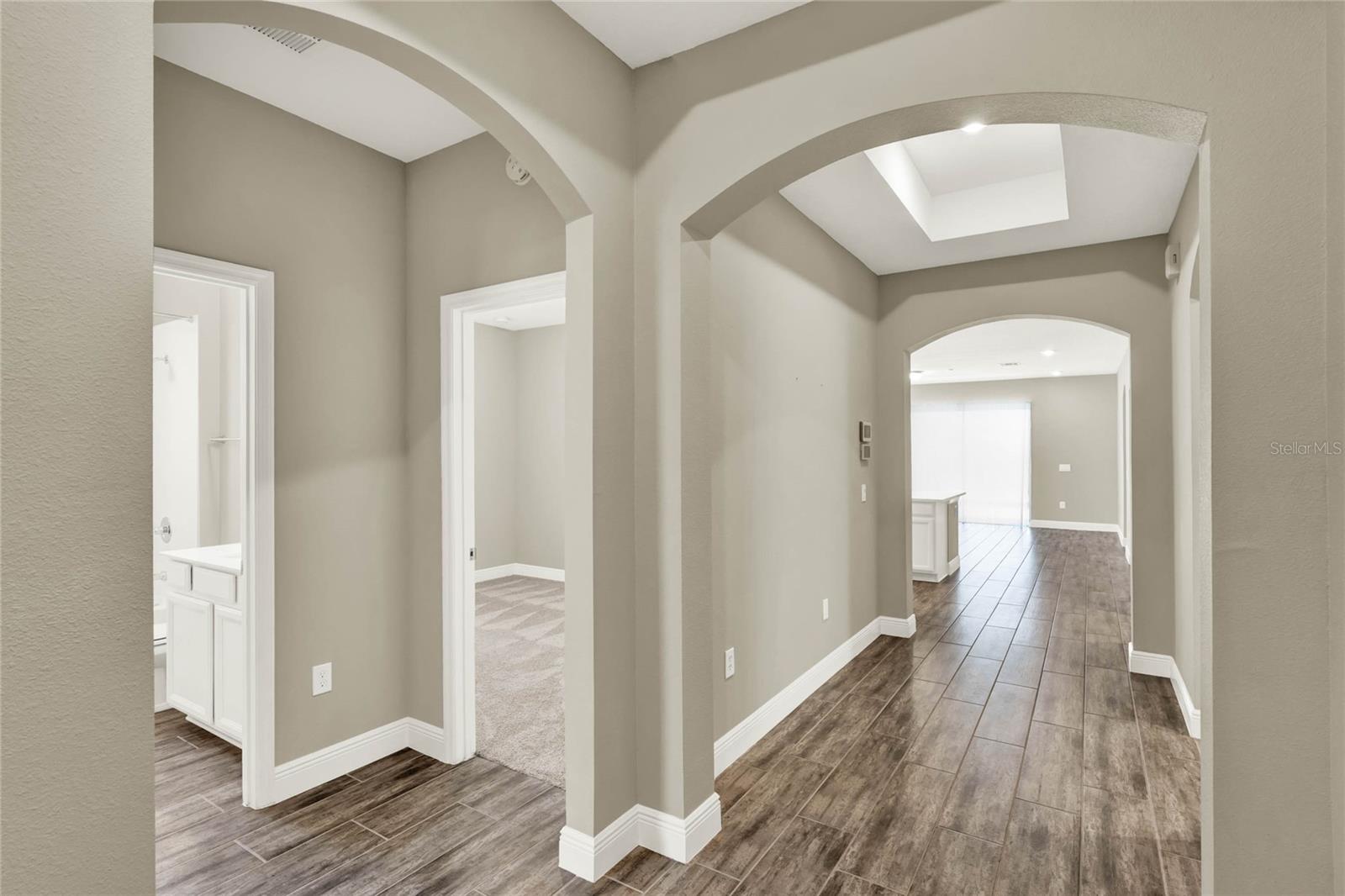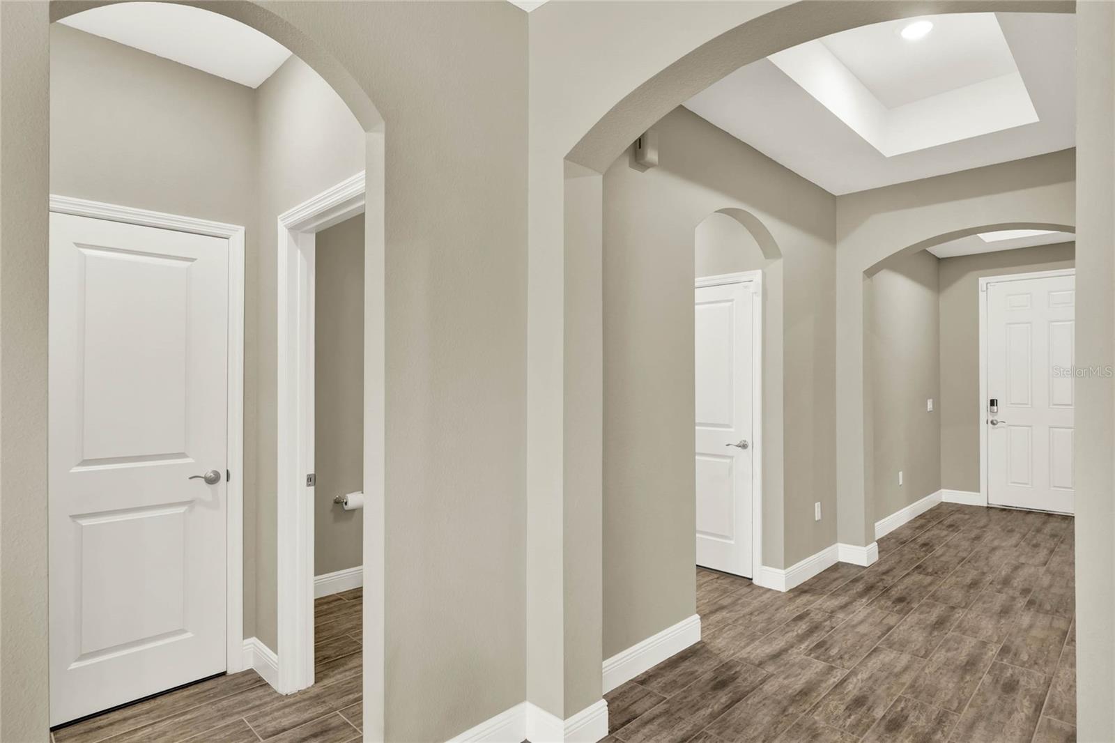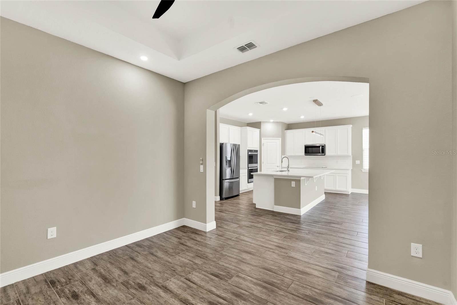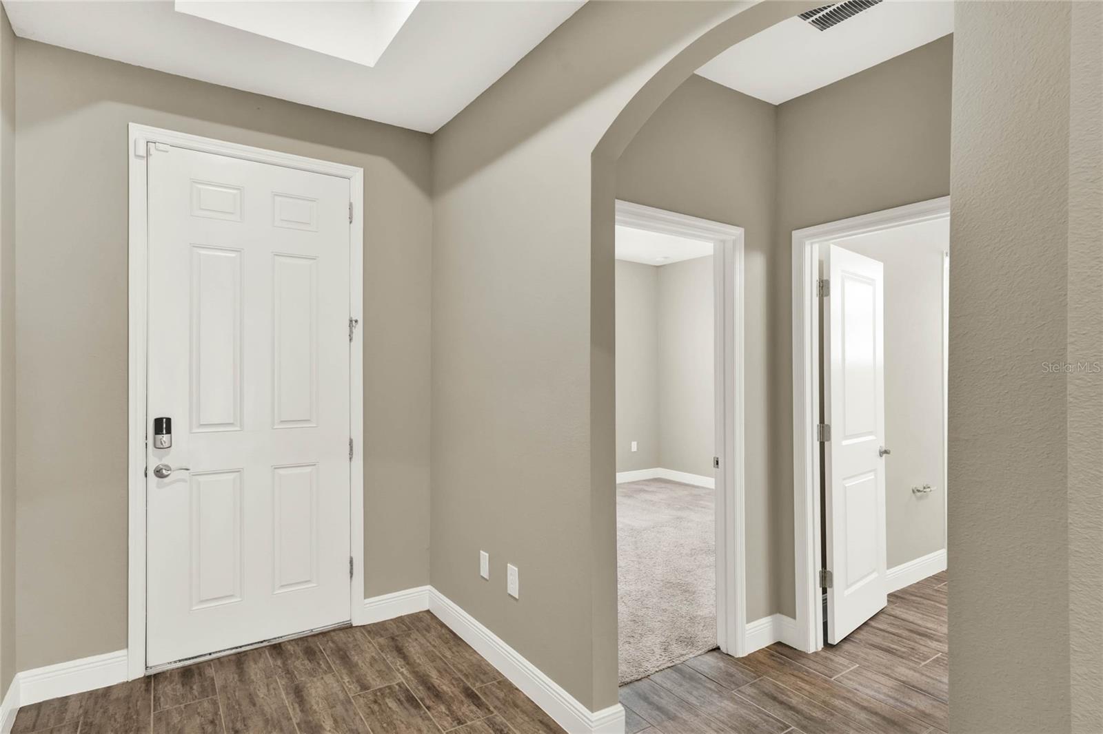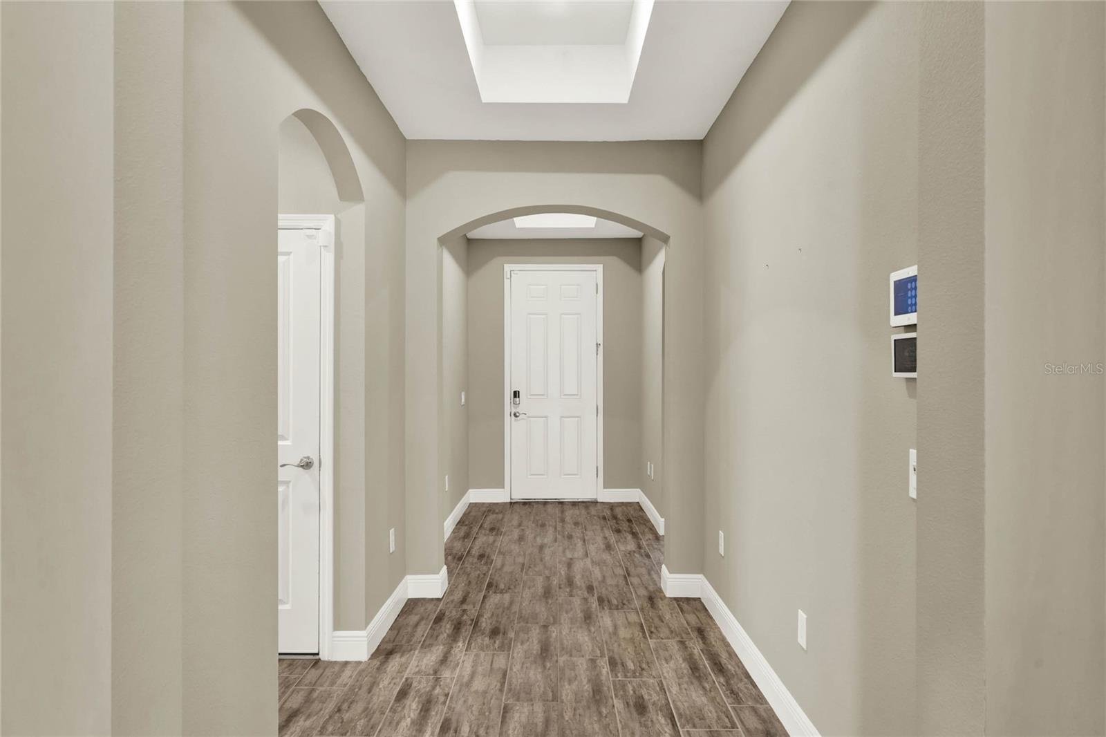 **Video Tour Available** Welcome to Oakland Trails which is situated on the West Orange Trail and in-between the popular downtowns of both Winter Garden and Clermont! This is a Meritage home that was built with beauty and energy efficiencies in-mind. The owners took it a step further by placing Tesla solar panels on the roof to easily support the whole-home and pool energy needs each month. There are 2 Tesla walls in the garage as well. The location of this home is ideal as it’s across the street from the community pool and mailboxes. Enter to find beautiful tile plank flooring, tray ceilings, and upgraded lighting fixtures. The gourmet kitchen has double ovens, a steam dishwasher, quartz countertops, tile backsplash and walk-in pantry. Entertaining is easy with the dedicated dining room which is spacious and still open to the kitchen and family rooms. Fill the home with sound as Sonos speakers were installed in the dining room and kitchen. Relaxation awaits in the primary suite with a luxurious garden tub, frameless shower with upgraded tile, dual vanities, dual walk-in closets and dedicated AC unit. The secondary bedrooms share a bathroom with a quartz countertop. The set of triple sliding glass doors extends the living space to the covered patio with automatic screens, heated and salt water lap pool, spa and spacious backyard. The French travertine tile is stunning and you’ll even find a fruiting Blue Banana tree! The garage has a dedicated AC unit as well, epoxy flooring and overhead storage. Additional upgrades include custom shelving in the laundry room, Ring doorbell, ADT security system and gutters. Oakland Trails is near the Turnpike and 429 so it’s easy to move around town. Don’t miss your chance to see this beautiful home!