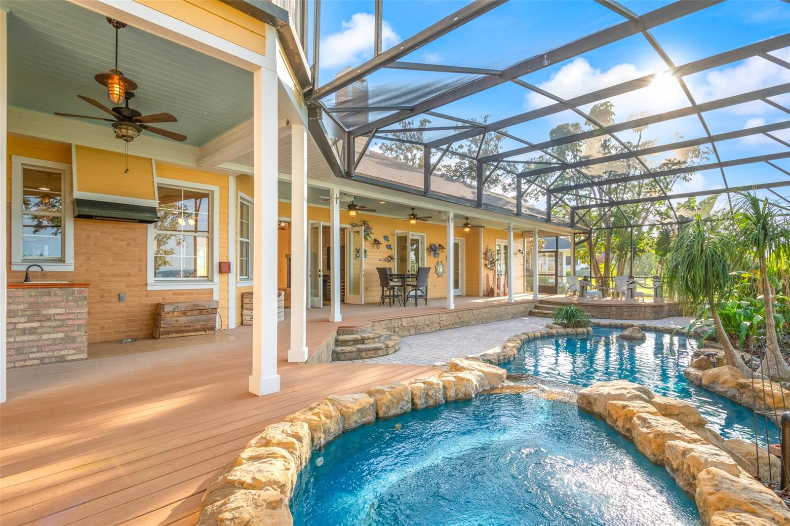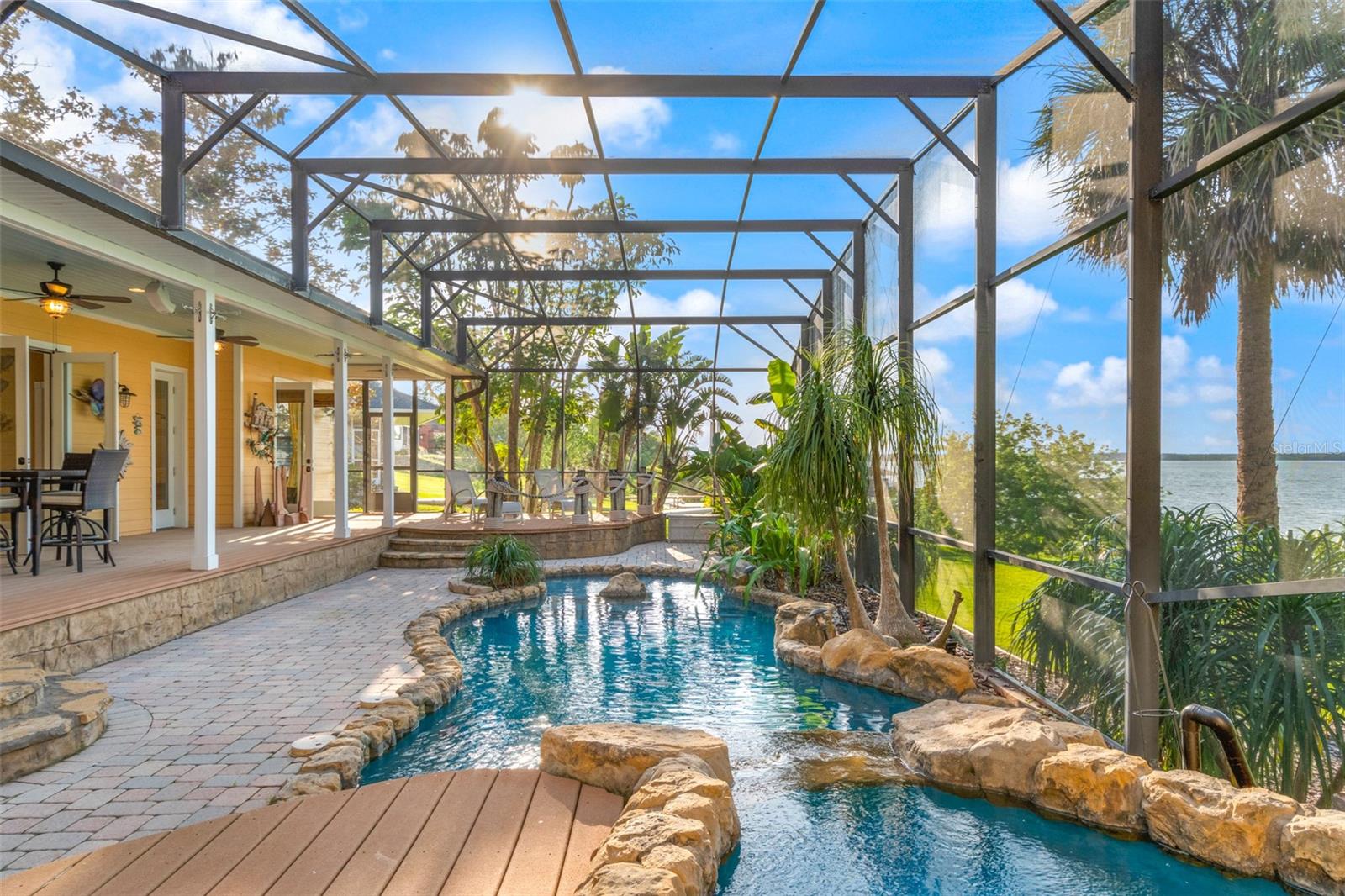 Live the "Lake Life" in a Tropical Paradise – Key West Vibes in Oakland, Florida! Welcome to your own slice of paradise in the heart of The Town of Oakland – one of Central Florida’s most desirable and fastest-growing communities. Situated on a sprawling 1.12-acre lot along the shores of Lake Apopka – Florida’s 4th largest lake – this gorgeous custom home spans nearly 4,000 square feet of beautifully designed space that embraces the outdoors at every turn. With 8-mile panoramic lake views that stretch across the water, you’ll wake up to breathtaking sunrises and unwind to the sounds of nature and incredible sunsets every evening. Just a short walk, bike or golf cart ride from the vibrant charm of Downtown Winter Garden, this Key West-style lakefront retreat blends luxury, nature, and laid-back living like no other. Step outside and into your own resort-style backyard, complete with a heated tropical pool oasis, cascading waterfall, spa, and hidden grotto, all surrounded by lush, vibrant landscaping that makes every day feel like a tropical getaway. Entertain guests, relax in the sun, or enjoy evenings by the lake under the stars – this backyard is pure magic! Inside, every inch of this home is built for comfort and peace of mind – including a whole-home Generac generator so you're always prepared. Whether you’re looking for a private retreat, love hosting unforgettable gatherings, or simply craving the serenity of a lakefront lifestyle, this home delivers. Best of all? You’re located within the golf cart district, just minutes from Plant Street Market, Crooked Can Brewery, charming restaurants, boutique shops, and everything downtown Winter Garden has to offer. You’re also just steps from the West Orange Trail – a 22-mile scenic mixed-use path that connects Oakland to Winter Garden and all the way to Apopka - perfect for biking, walking, skating, or just soaking up the Florida sun. This isn’t just a home – it’s a lifestyle. Come see it for yourself – paradise is waiting. Don’t miss the chance to make it yours!