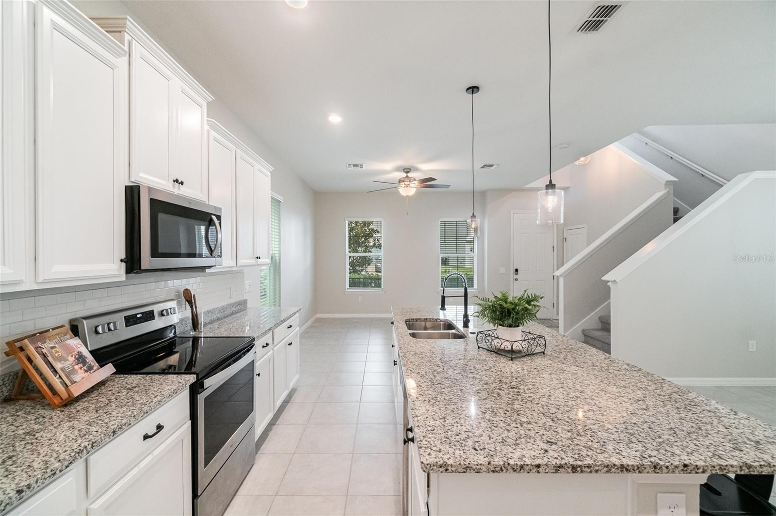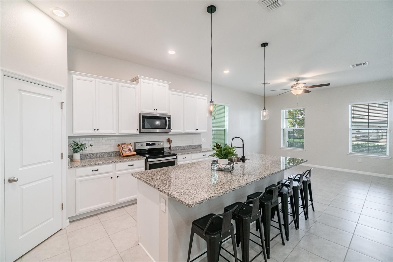 One or more photo(s) has been virtually staged. **MOTIVATED SELLER - Buyer can qualify for up to $4,000 in closing cost credit through Seller's preferred lender.** Welcome home! Step into this beautiful bungalow featuring an open-concept floor plan designed for modern living. The gourmet kitchen boasts an oversized island, upgraded granite countertops, and stainless steel appliances perfect for entertaining or everyday meals. The spacious owner's suite offers a luxurious retreat with a spa-like bathroom, including a large walk-in shower, dual vanities, and two expansive walk-in closets. This home features fresh interior and exterior paint, along with brand new carpet throughout. The cute community clubhouse offers a swimming pool, playground, and walking trail with a separate dog park. Conveniently located just minutes from downtown Winter Garden, Clermont, and the Turnpike. Schedule a visit today!