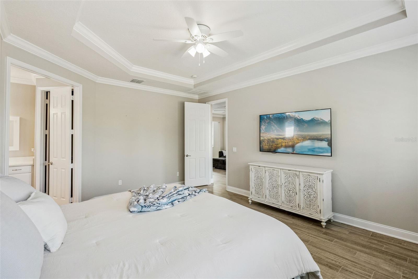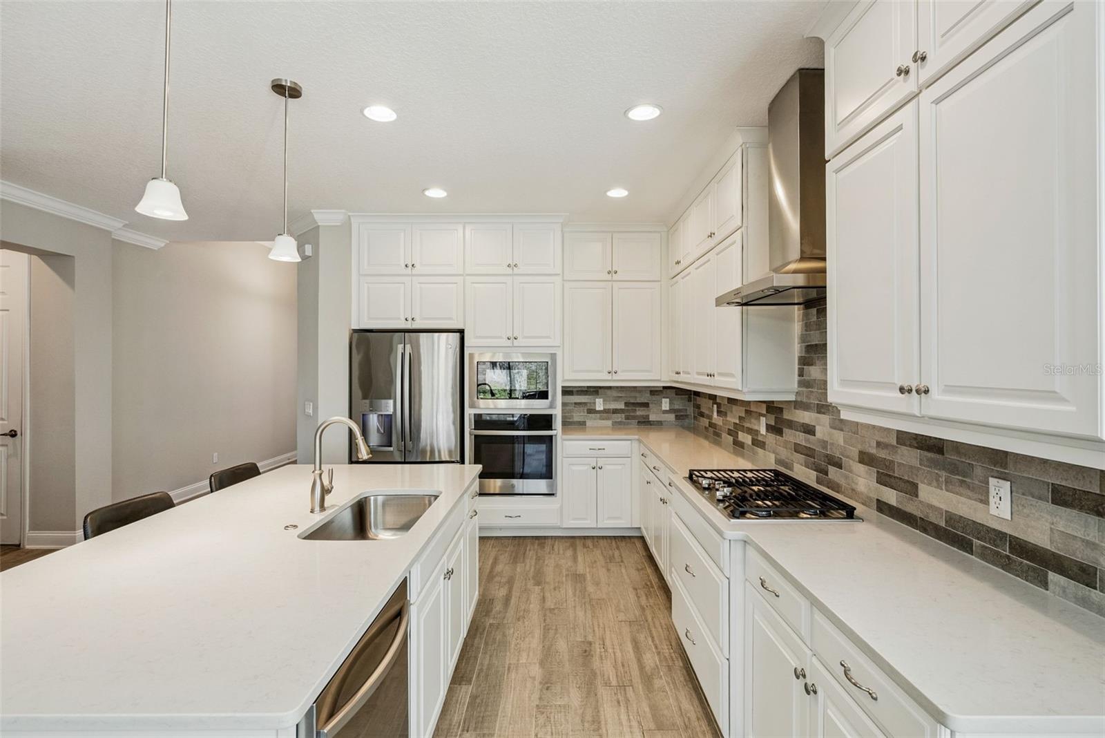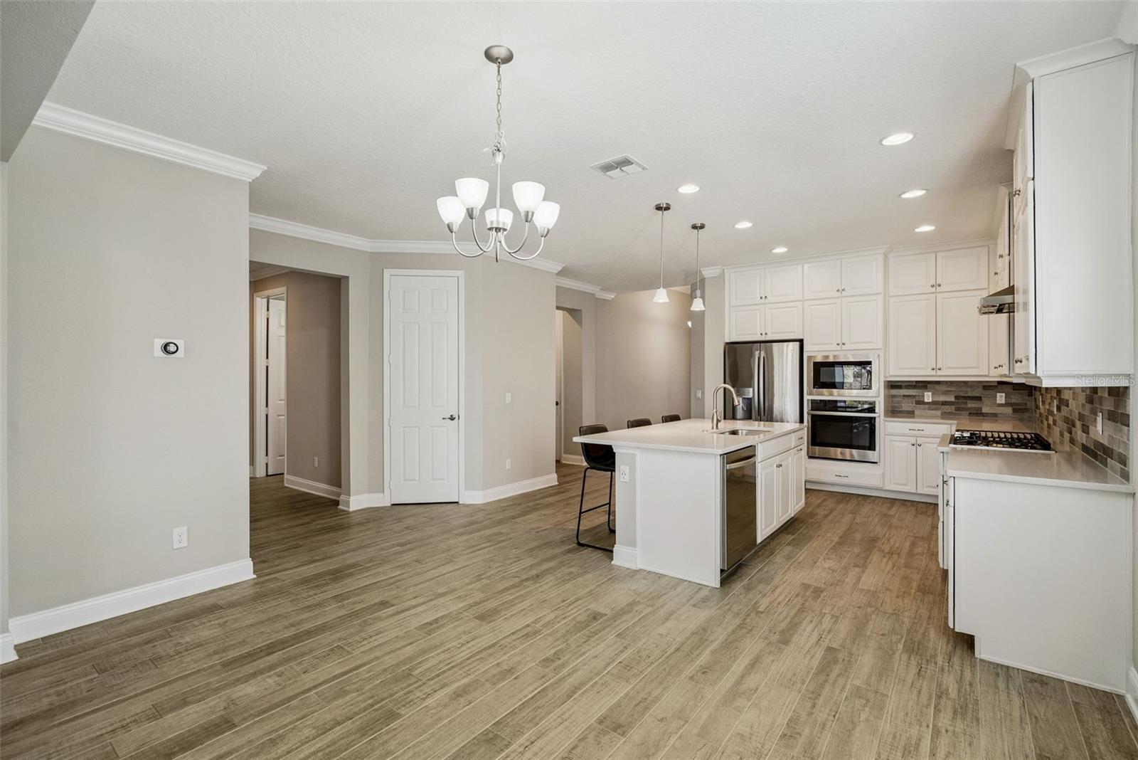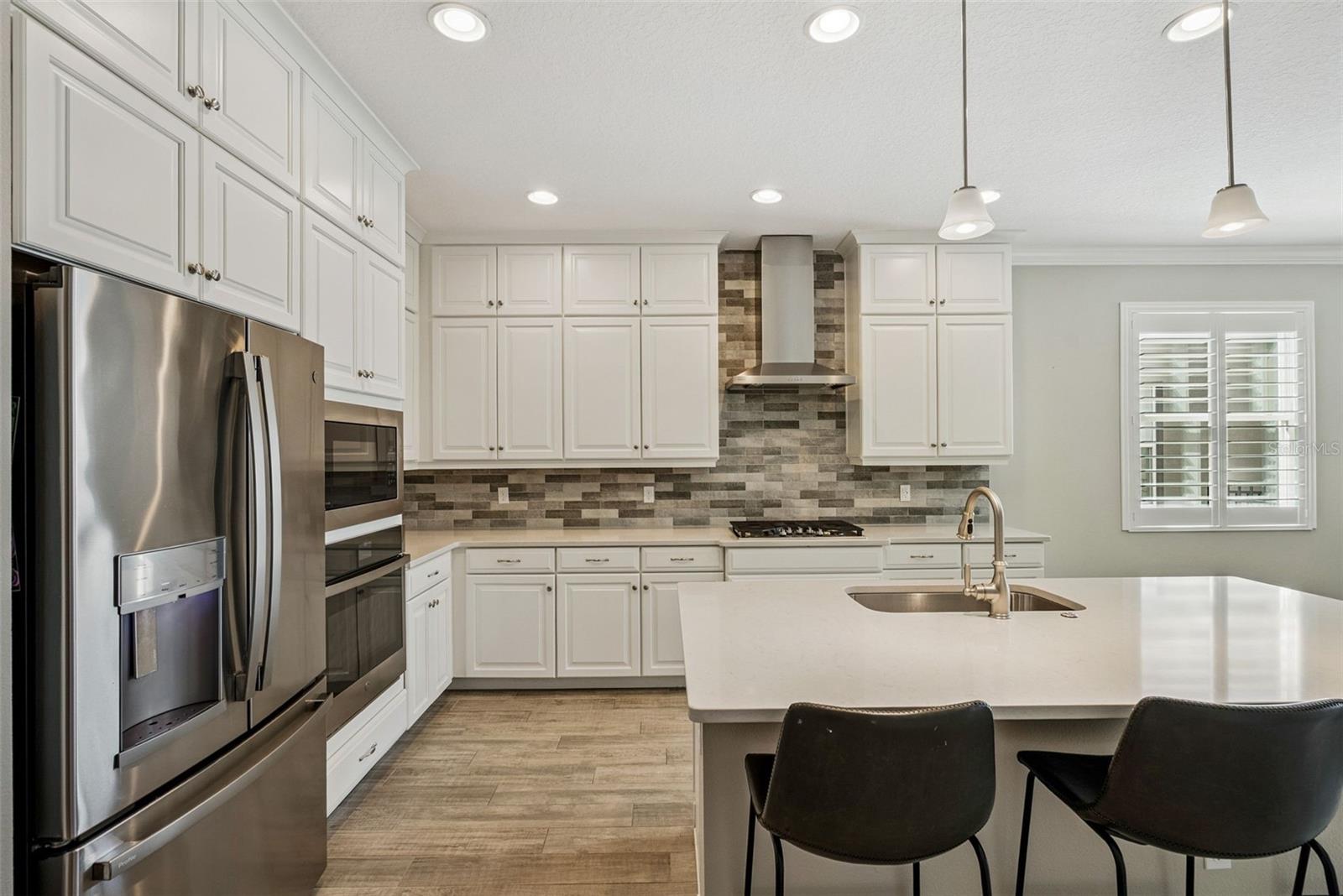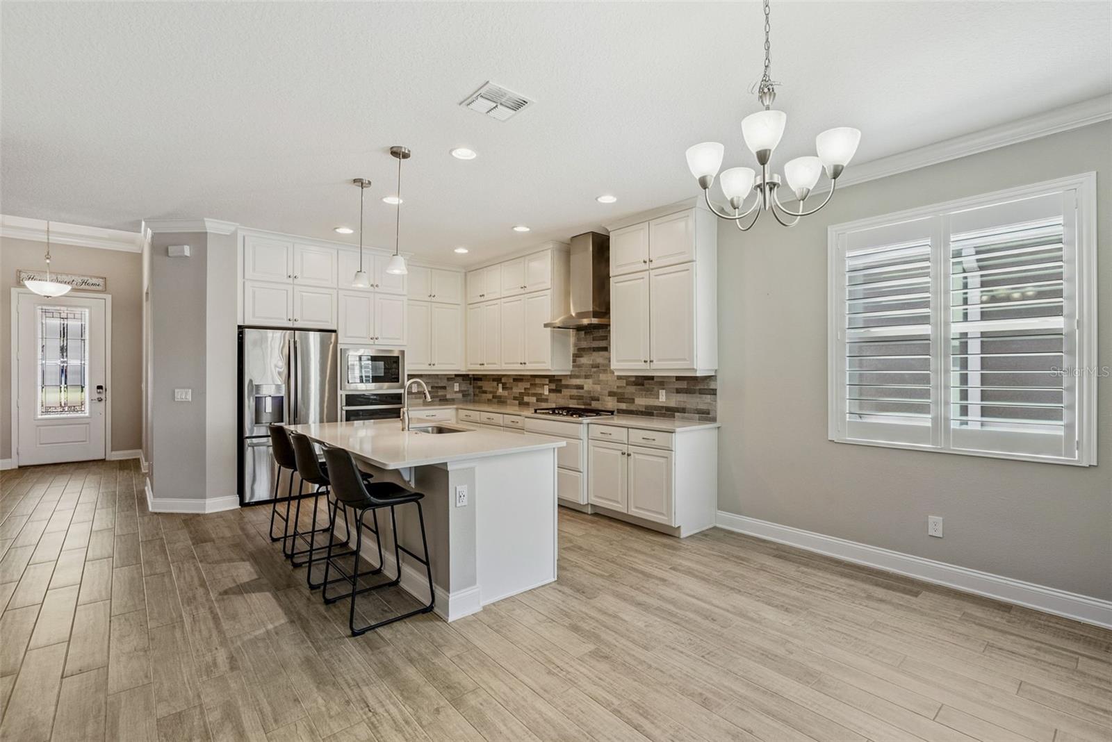 Welcome home to Hull Island, where refined design meets serene Florida living. This impeccably maintained 4-bedroom, 3-bath home offers the rare combination of conservation privacy, thoughtful upgrades, and resort-style community amenities—truly better than new. Backing to a protected nature preserve with no rear neighbors, the home provides a peaceful retreat while still being moments from everything. Inside, you’ll find wood-look tile flooring throughout (no carpet), plantation shutters, high ceilings, and abundant natural light that enhances the open, airy feel. Electric shades on the sliding glass doors add both convenience and a polished, modern touch. Smart-home features include a NEST thermostat and Ring doorbell, offering comfort, efficiency, and peace of mind. The heart of the home is the spacious open-concept kitchen, living, and dining area—ideal for both everyday living and entertaining. The kitchen features stainless steel appliances, a modern backsplash, generous counter space, and a large center island with seating. This home also offers gas service and is fully equipped with a whole-house generator, providing comfort and reliability year-round.An EV charger in the garage adds a valuable, future-ready convenience. A standout feature rarely found: custom built-in shelving in the pantry and all bedroom closets, offering exceptional storage and organization. The primary suite is a true sanctuary, easily accommodating large furniture and featuring a spa-inspired en-suite bath. One of the secondary bedrooms includes its own private en-suite bathroom, making it ideal for guests, visitors, or multi-generational living. Two additional bedrooms and a full bath provide flexibility for family, home office space, or hobbies. Enjoy Florida living at its best with both an inviting front porch and a screened, extended lanai with brick-paver patio, overlooking tranquil conservation views—perfect for morning coffee, evening gatherings, or simply unwinding in nature. Located in a lakefront community on Lake Apopka, residents enjoy exceptional amenities including a community pool, fishing pier, dock, dog park, and park spaces, creating a lifestyle that feels like a year-round vacation. Situated in the charming Town of Oakland, you’re just minutes from Downtown Winter Garden, the West Orange Trail, weekly farmers markets, Winter Garden Village, and the lakefront dining of Clermont—plus easy access to Orlando, major roadways, and Central Florida attractions. This is a move-in-ready, low-maintenance home offering privacy, quality, and an unbeatable location. A rare opportunity-don't miss it.