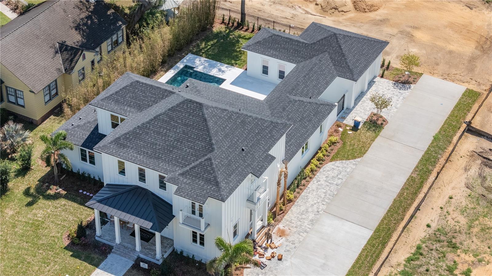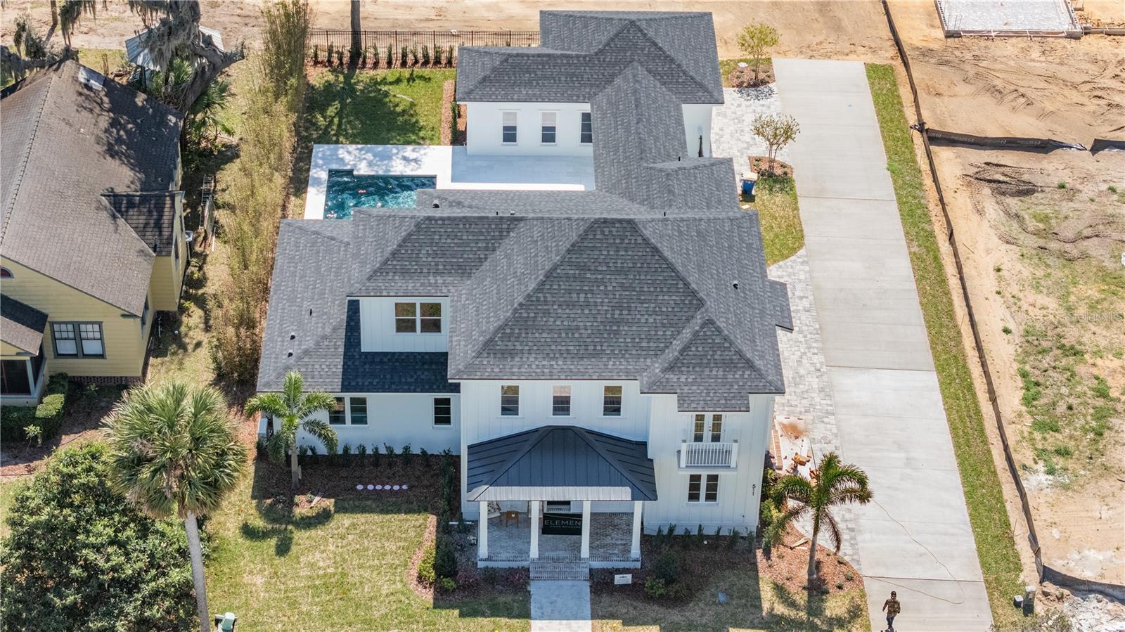Welcome to this stunning custom residence by Element Home Builders, located in the highly sought-after community of Briley Farm. Thoughtfully designed with both elegance and functionality in mind, this expansive 5-bedroom, 4.5-bathroom home offers approximately 3,862 square feet of refined living space. Step inside to a dramatic two-story foyer that sets the tone for the home’s open and airy layout. The main living areas seamlessly blend together, creating the perfect setting for entertaining, with a spacious great room flowing into a designer kitchen complete with a large island, walk-in pantry, and premium finishes. The primary suite, conveniently located on the main level, offers a private retreat with a spa-inspired bathroom and generous walk-in closet. Upstairs, you’ll find additional bedrooms along with a versatile loft space ideal for a media room, office, or play area. Designed for the Florida lifestyle, the outdoor living space is truly exceptional. Enjoy a resort-style pool and spa, expansive lanai, and dedicated firepit area—perfect for relaxing or hosting gatherings year-round. Additional highlights include a two-car garage with a separate golf cart bay, high ceilings, and thoughtful architectural details throughout. This is a rare opportunity to own a beautifully crafted home in one of the area’s most desirable communities.