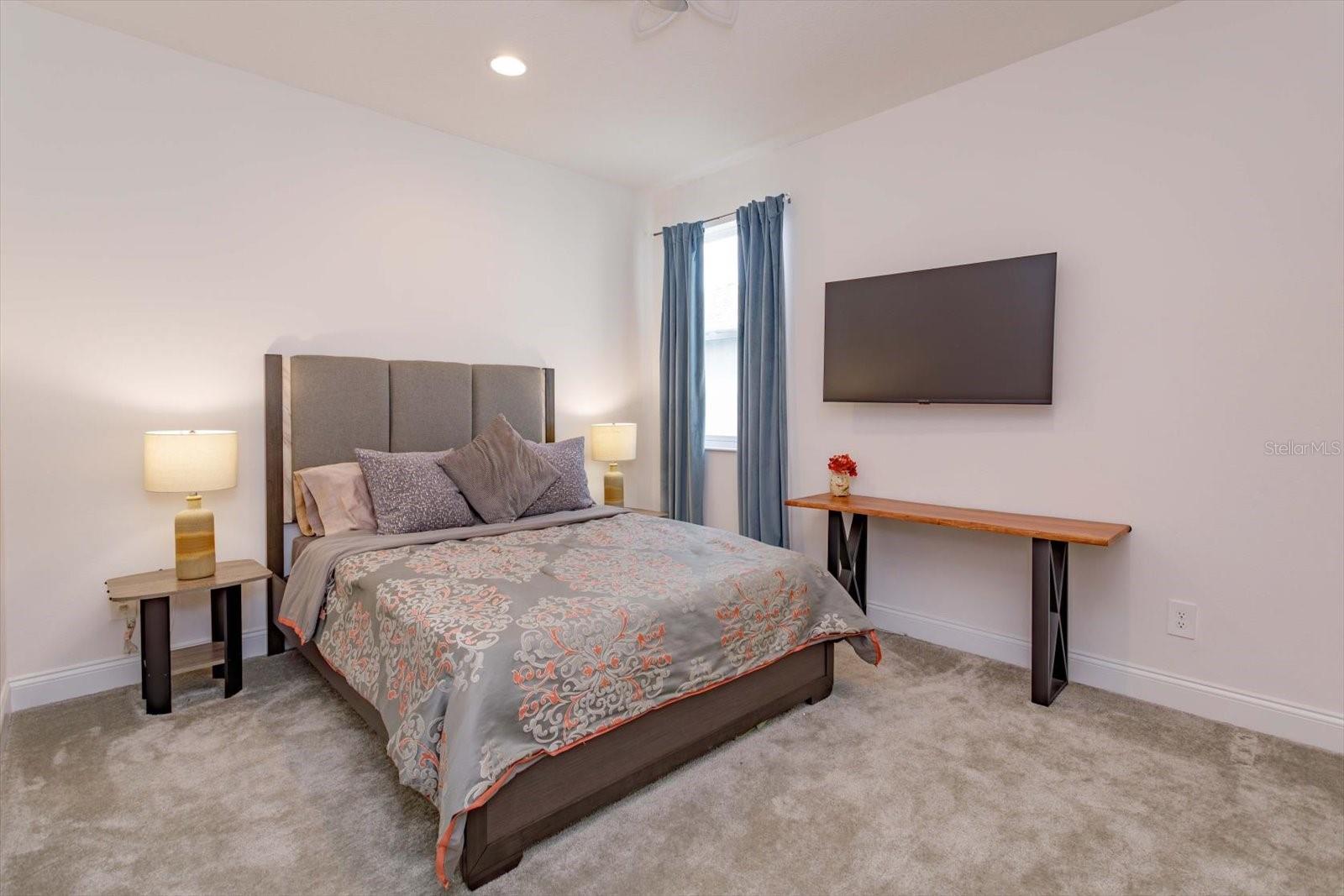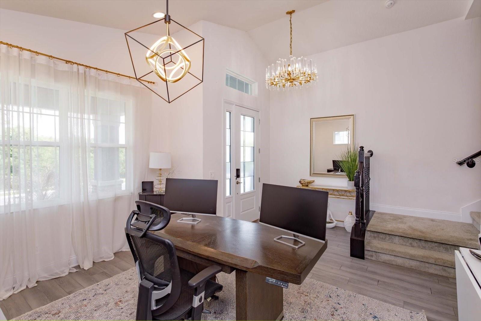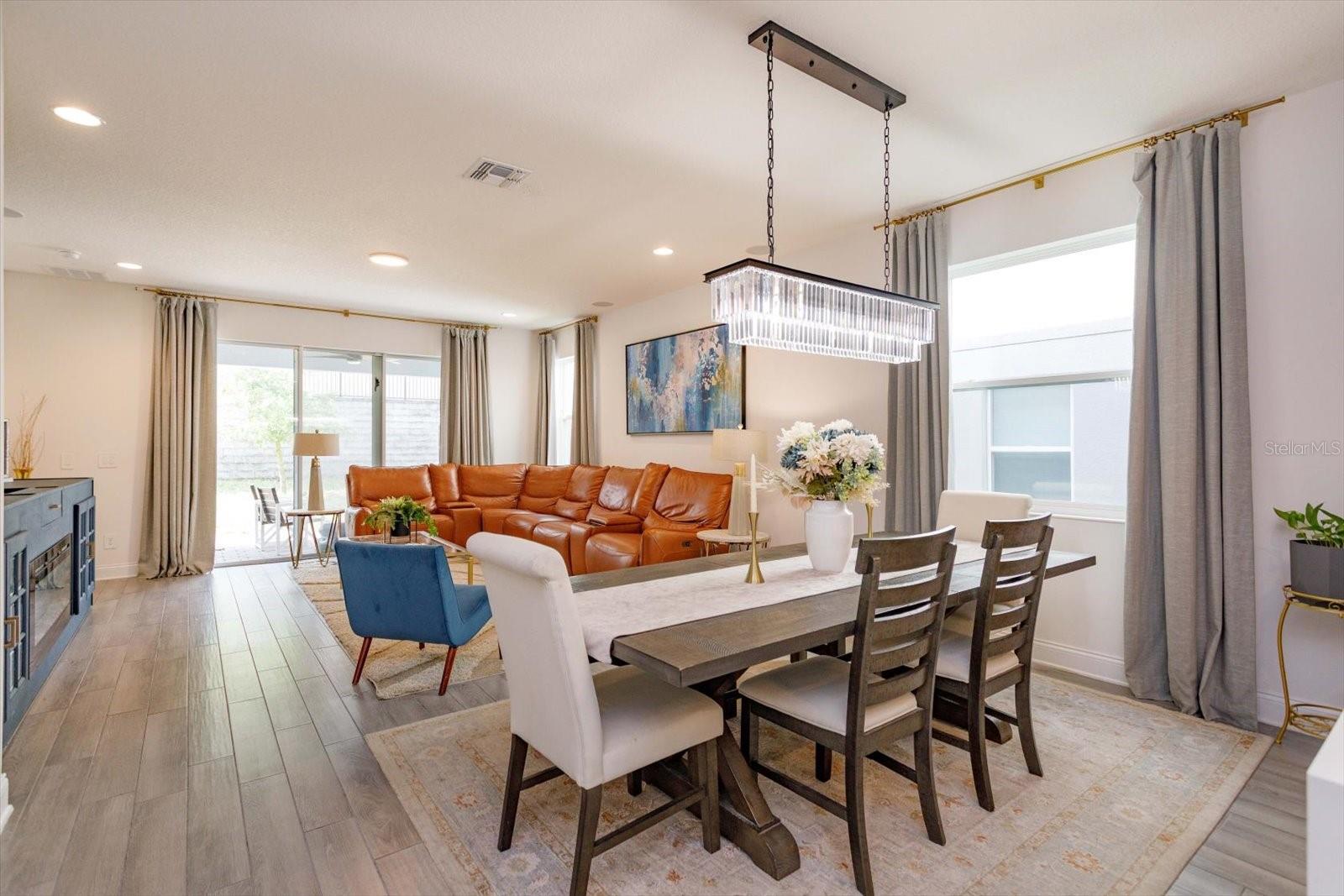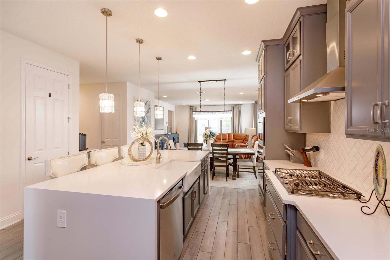 Nestled in the serene, lakefront community of Hull Island this meticulously maintained home located on a corner lot features 4 bedrooms, 4.5 bathrooms, and large bonus/game room. The Dorchester floor plan offers a modern layout with space and functionality for all. As you enter the beautiful foyer you are greeted by a formal dining room/flex space which precedes a large open concept living area. The upgraded gourmet kitchen features stainless steel GE Profile appliances, gas cooktop, quartz countertops, upgraded ceiling height cabinetry, and an oversized island w/ seating that overlooks the breakfast nook and family room. This space is perfect for entertaining and is flooded with natural light from the three large sliding doors that open up to a covered lanai and private backyard setting, featuring a full outdoor bathroom. The primary suite located on the first floor provides a relaxing retreat with a spa-like bathroom featuring two separate vanities, a sizable shower, garden tub and generous walk-in closet. Upstairs are three additional bedrooms and two baths. One of the secondary bedrooms includes its own private en-suite bathroom, making it ideal for guests, visitors, or multi-generational living. The large upstairs bonus room/game room is the ideal entertainment hub. This space can be transformed into a home theatre, bar, gaming lounge, gym or playroom. This home boasts wood-look tile on the first floor, surround sound in the family room, primary bedroom and lanai, upgraded lighting and ceiling fans, decorator touches and lots of storage. Smart-home features include Echobee thermostats, Ring doorbell, and garage EV charger. Additional upgrades include 8' raised panel doors, tankless gas water heater, interior laundry room with utility sink and gas washer/dryer hook up, outdoor kitchen prewire, pool prewire, and whole house water softener. Hull Island amenities include a resort style pool and clubhouse, playground, dog park, dock and fishing pier. Whether you want to access the West Orange Trail or enjoy historic downtown Winter Garden’s quaint shopping and restaurant district, perhaps you prefer lakefront dining in Clermont or enjoy perusing the area's weekly farmers markets, this location has it all! This home is not just a place to live; it’s a retreat that offers tranquil comfort while being in close proximity to major roadways, and Central Florida attractions.